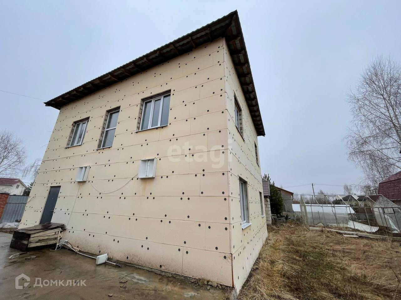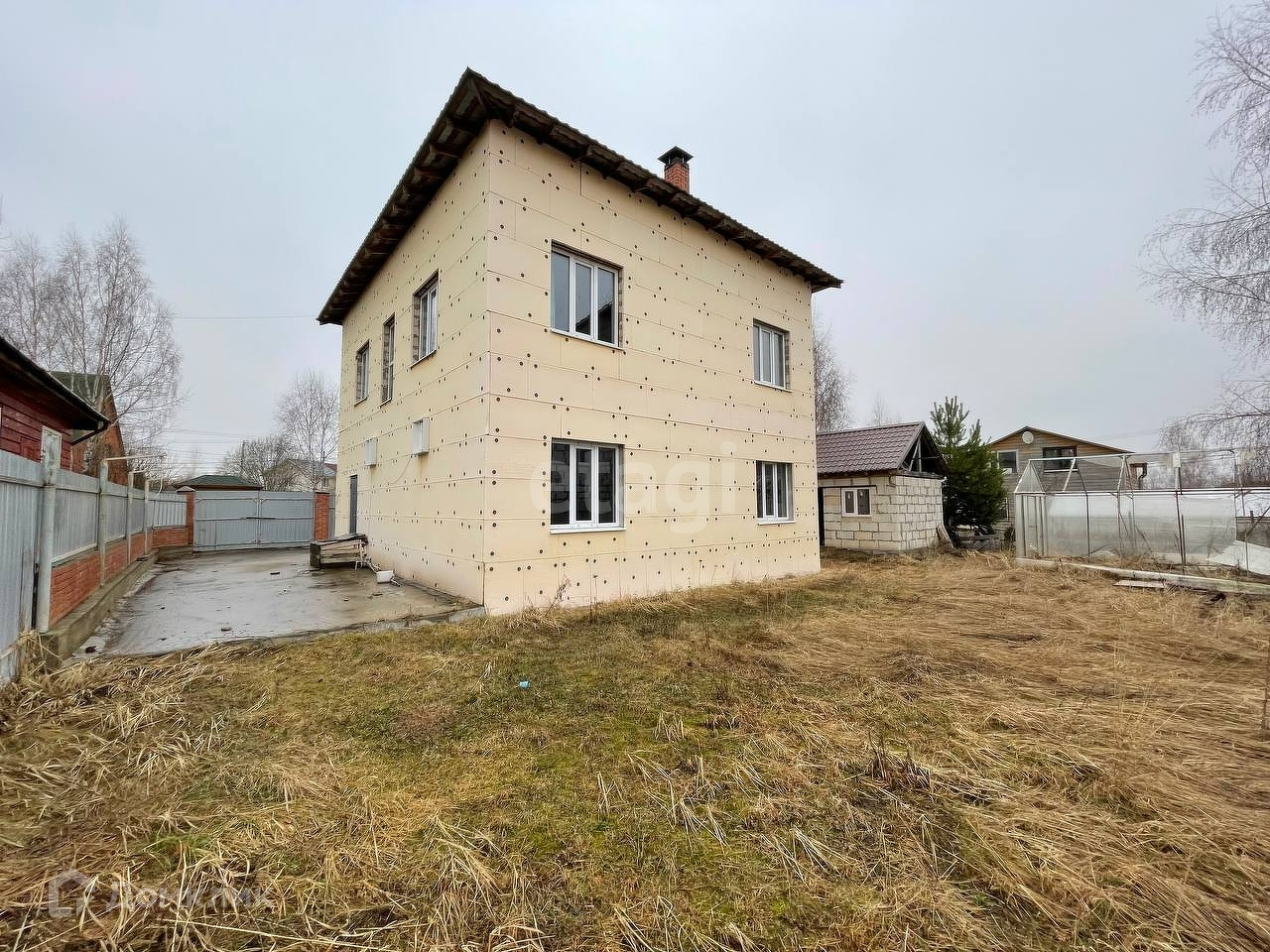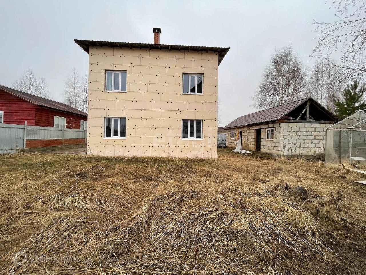 На участке есть недостроенная баня и хоз. блок. Осталось сделать внутри помещения, постройка полностью из блоков, крыша есть, окна вставлены. Необходимо установить двери, они в наличии. Септик двойной, переливной с системой фильтрации. Так же на территории участка имеется теплица, установлена на фундаментных блоках, прочная (необходимо перестелить ее, за зиму поликарбонат сломался). Заезд под машину залит бетонной стяжкой, въезд оборудован воротами. Удобный настил под зону отдыха, красиво располагается под березой, идеально место для отдыха семьей.