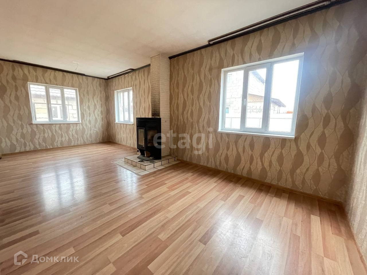 Просторные комнаты за счет больших светлых окон. Большой зал 29.6м2, ванна 11.6м2, 4 комнаты на втором этаже 11.7м2, 14.3м2,15.4м2,17.5м2. В доме установлен настоящий камин, который полностью отапливает и согревает дом, помимо тепла дает атмосферу уюта и живого огня. В Доме полностью все коммуникации: свет, вода.