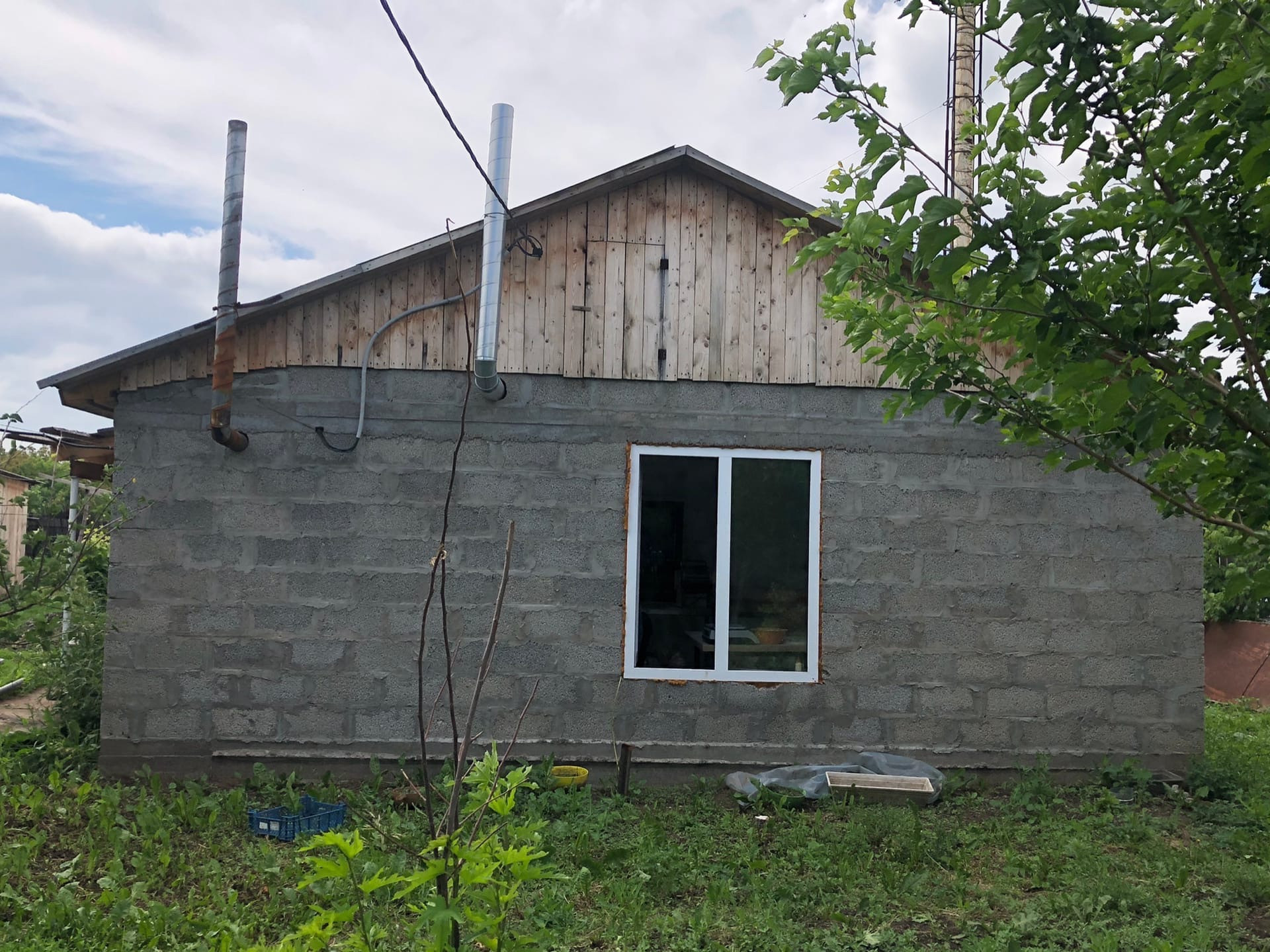 - Теплица: 400 м2+ подсобное помещение (котельная). Фундамент опущен на 60 см по периметру. Всесезонная (отопление дрова (котел Троян на 1000 кв.м). Ферма - метал, обшивка пленка + дерево. Вытяжки сделаны. Сажали: Лето - огурцы, помидоры, перец (доход сезонный). Зима - лук зеленый, тюльпаны (доход сезонный)