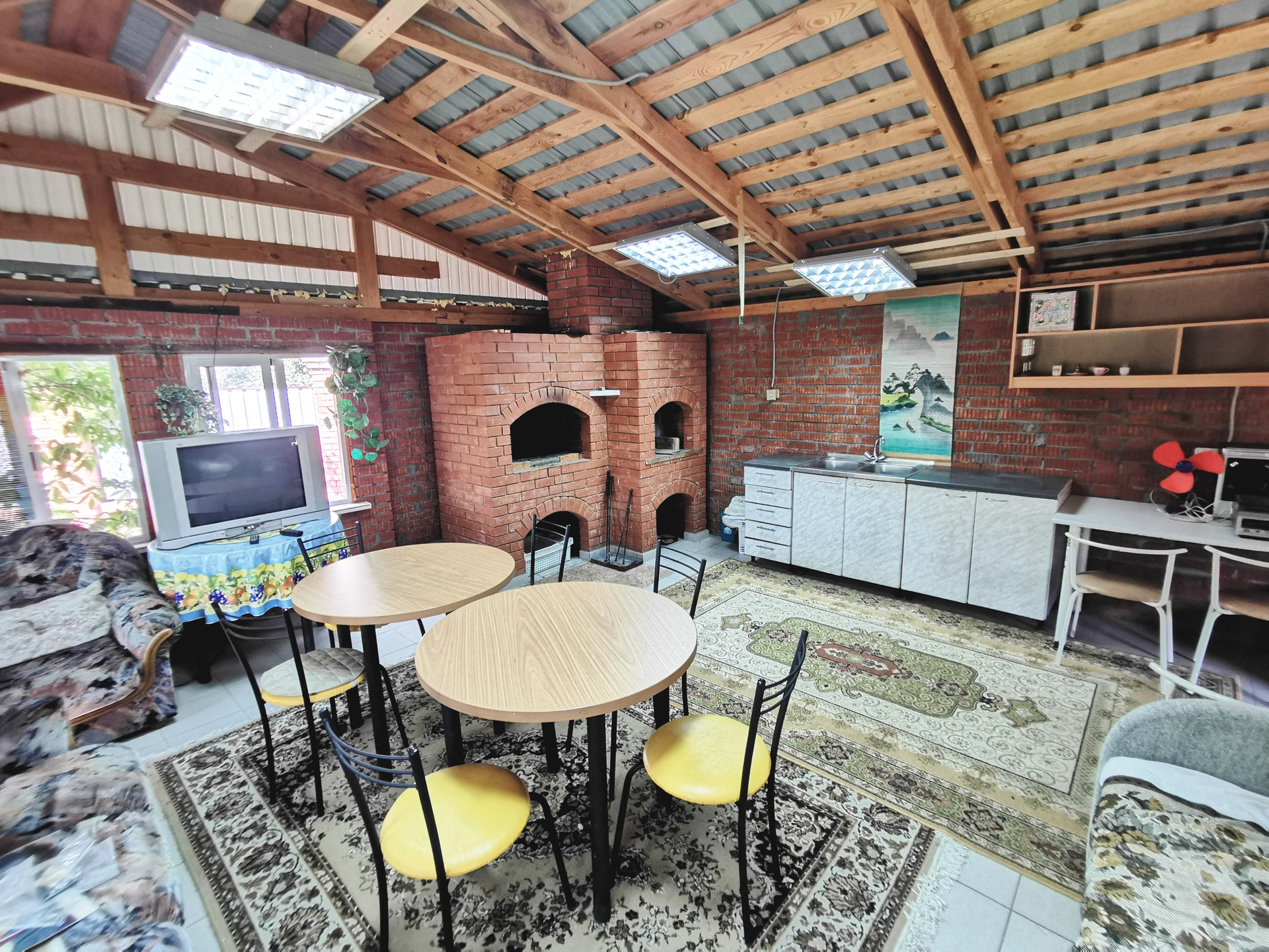- Летний дом с мангальной зоной + гараж 220 м2 ( расчитан на 3-4 машины + снегоход + квадроцикл + мастерская)