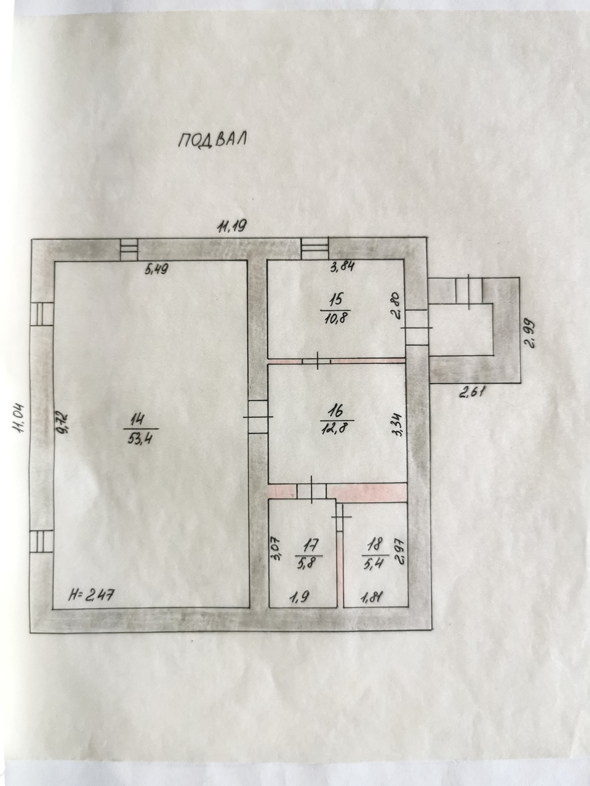 - Много подсобных помещений + подвал с высокими потолками.