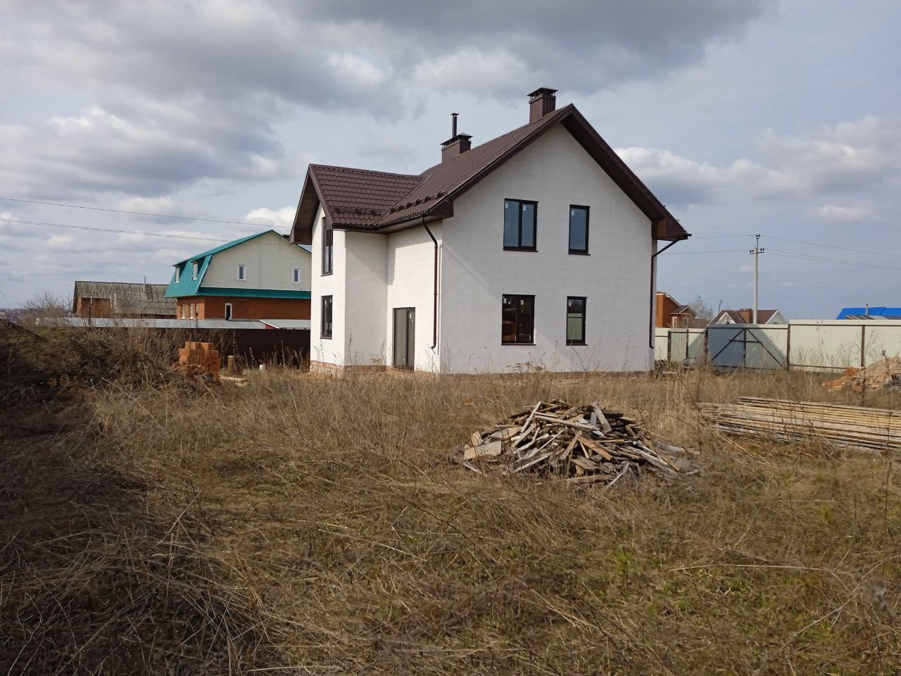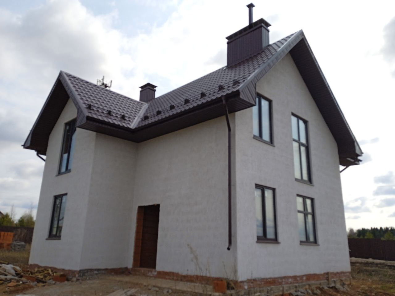 -крыша дома покрыта металлочерепицей