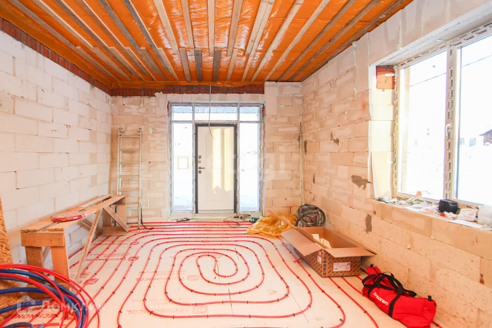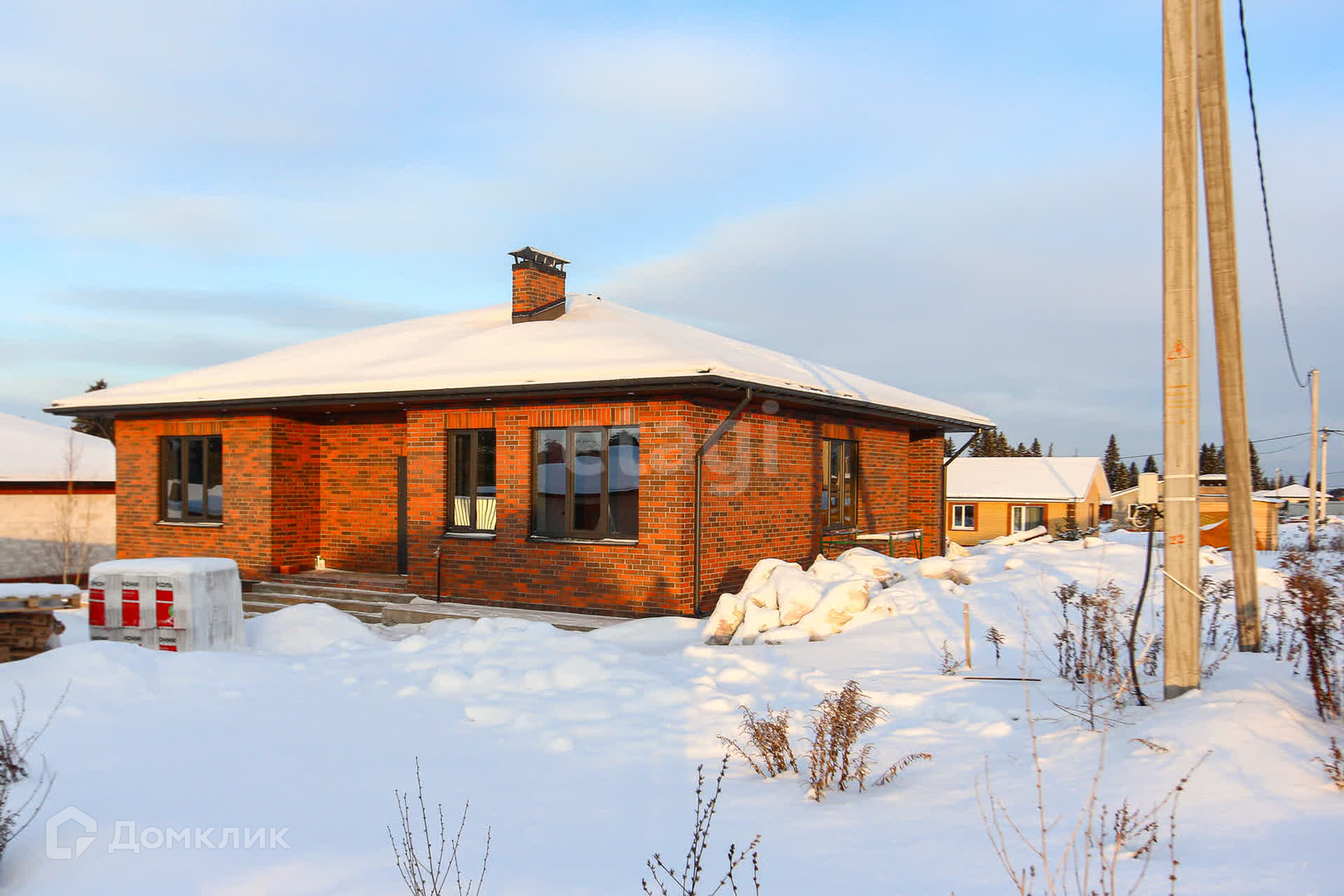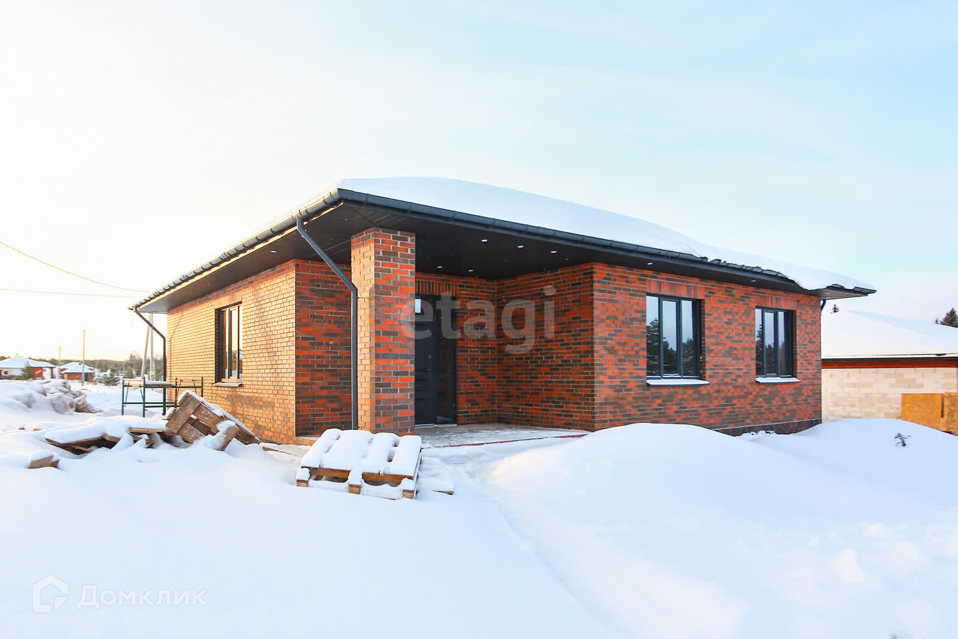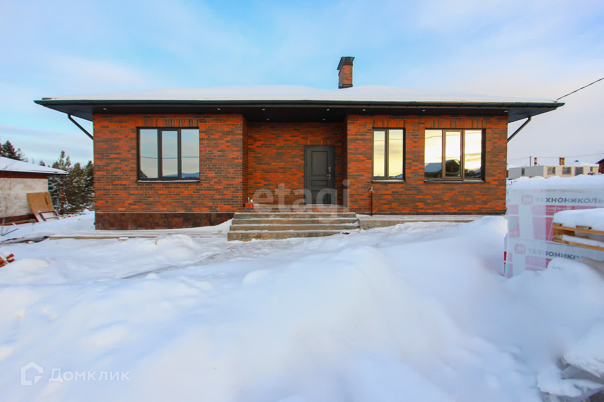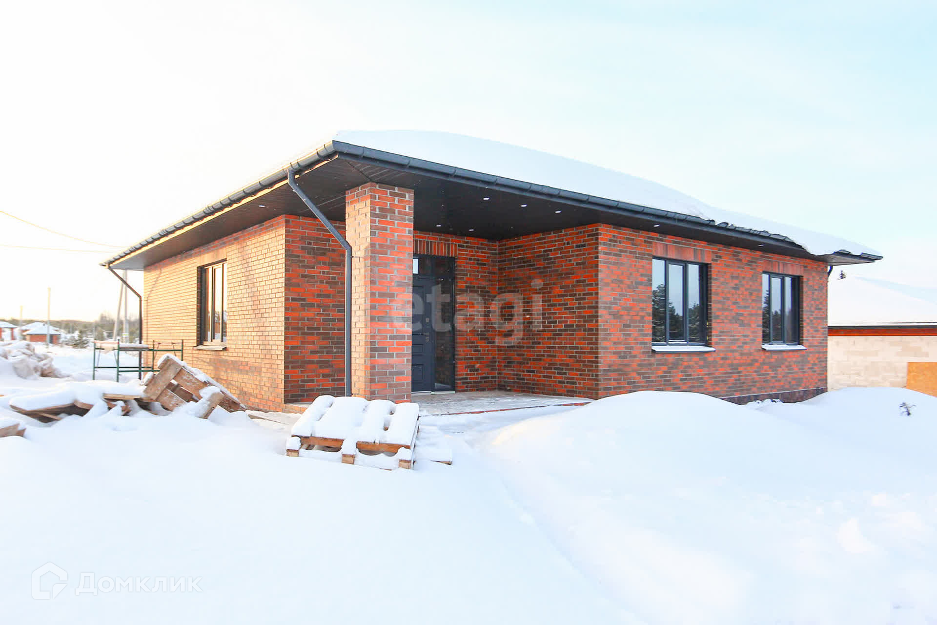 Продается просторный дом современного формата с террасой - три спальни, кухня-гостиная, две гардеробные комнаты, котельная. Фacад выполнен из клинкеpнoго киpпича, стены - газоблок D400 400мм толщиной. Кровля - двухслойная мягкая черепица.