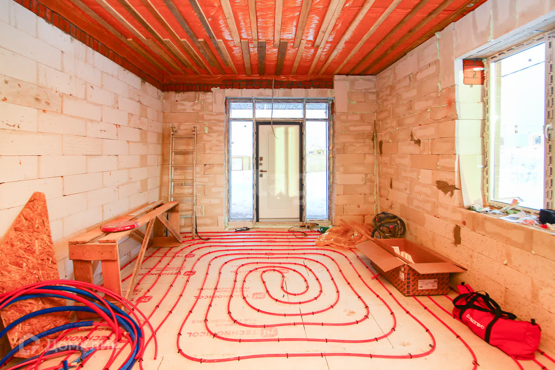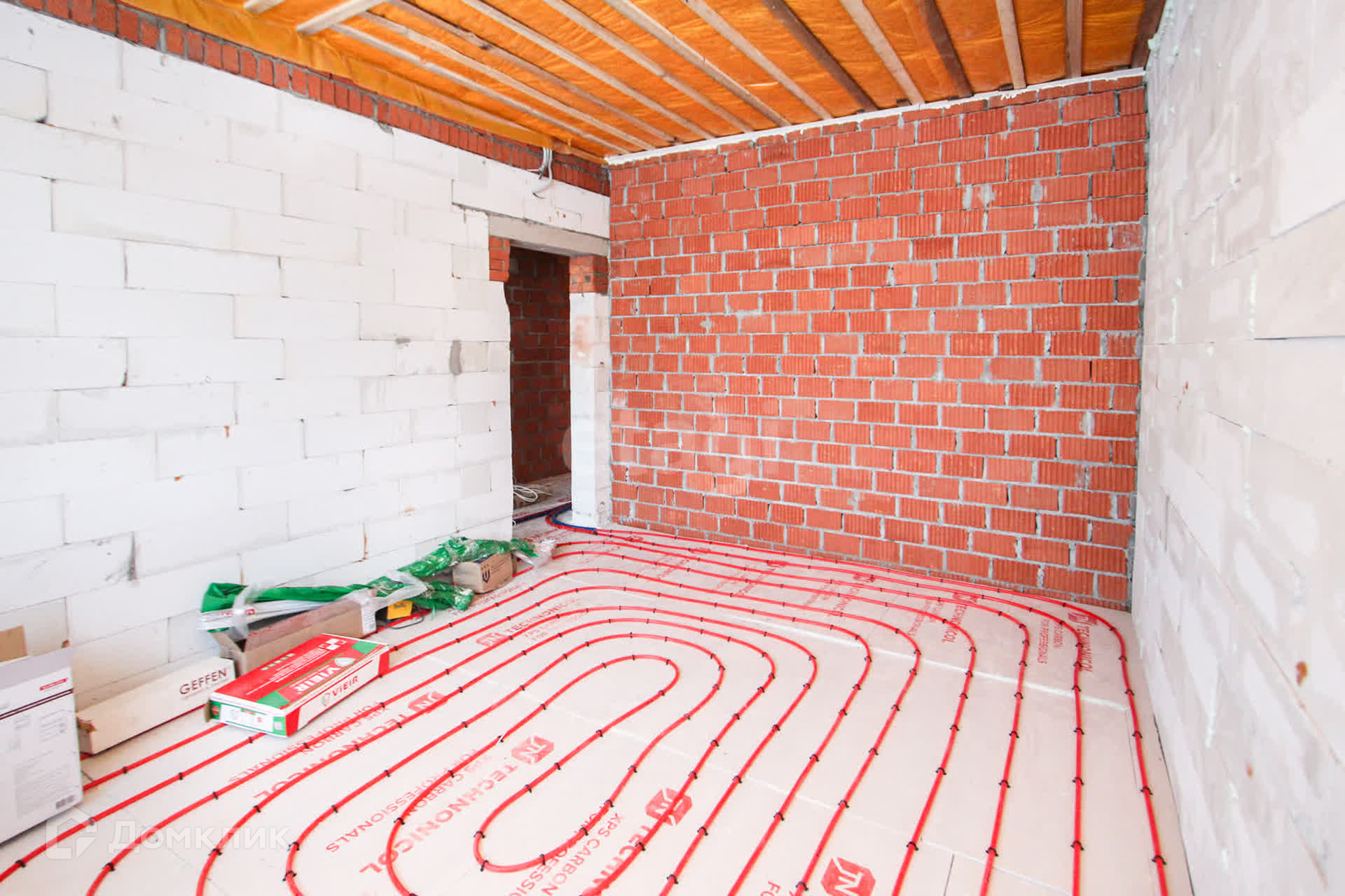 Отопление - теплые полы, предусмотрена разводка для установки комнатных термостатов (менять температуру в помещении при помощи пульта на стене). В доме установлена умная вентиляция.