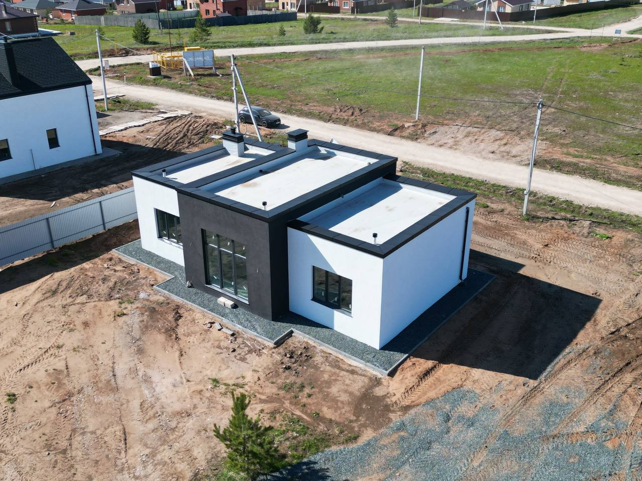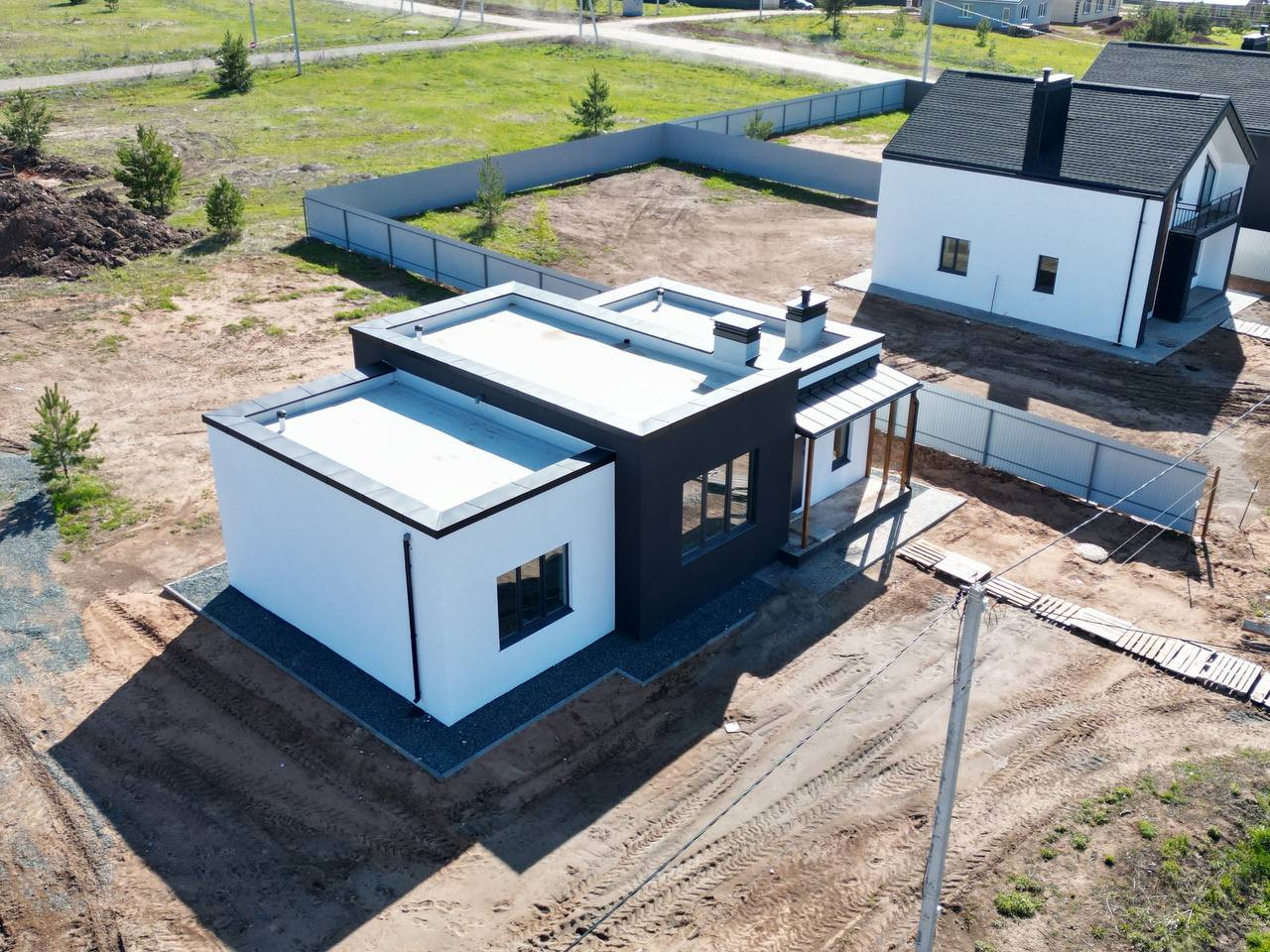- кровля плоская мембрана по плитам(самая надежная и стильная), на которой вы можете обустроить террасу, водосточная система пластиковая
