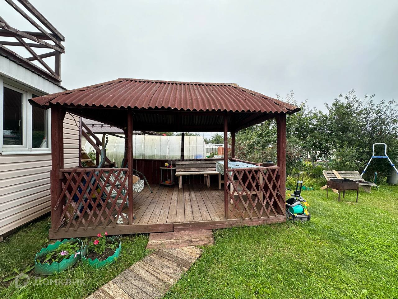 В продаже садоогород с отличным месторасположением в 10 минутах от города.Дом расположен на большом участке 7.4 сотокПостройки на участке: баня с отдельной моечной и парилкой, с комнатой отдыха на 2 этаже, 2 теплицы, хоз блок, туалет.Рядом с домом расположена беседка.Дом из бревна с каркасным пристроем, обшит снаружи сайдингом, кровля профнастил, пластиковые окна.При входе большая кухня гостиная 30м, остается кухонный гарнитур и вся мебель.В доме печное отопление.Второй мансардный этаж с выходом на балкон.Покажем в любое удобное для вас время.