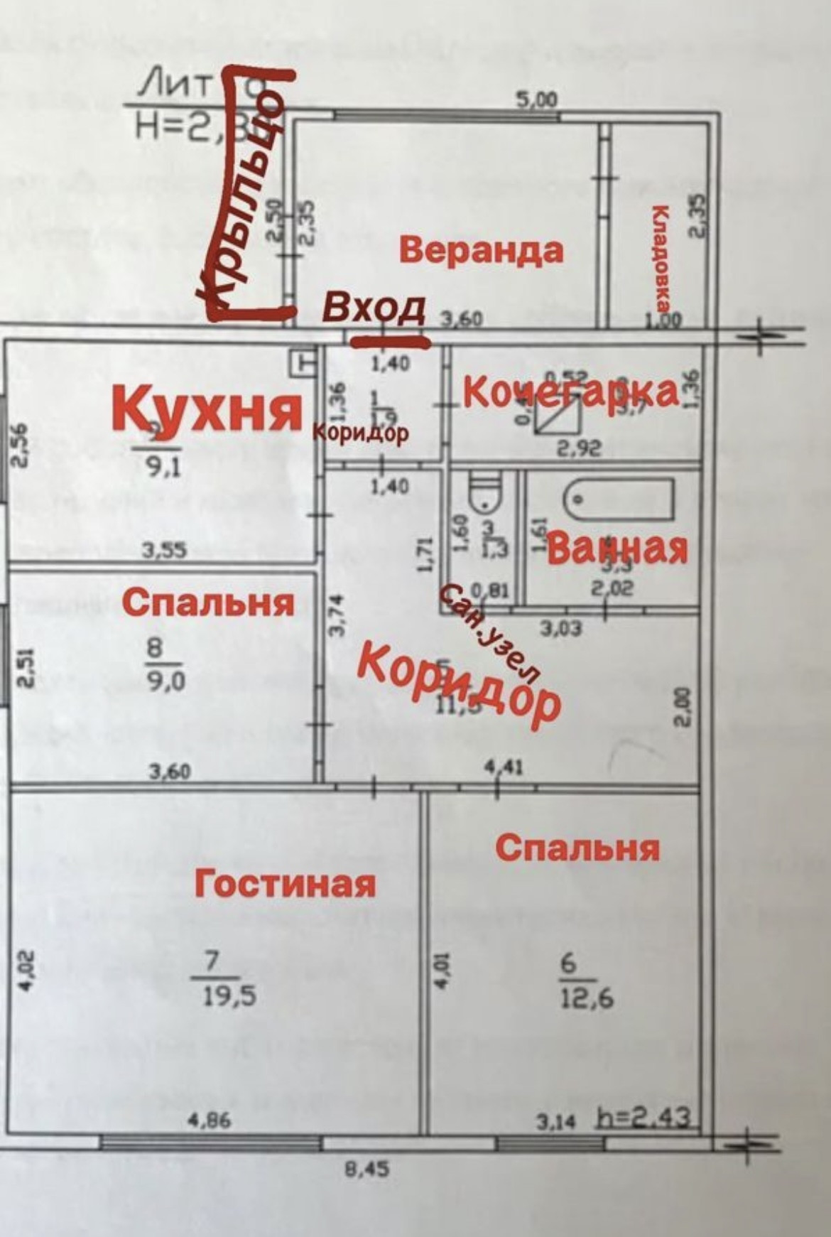 Площадь квартиры 71кв.м без холодного помещения(веранды+кладовки)
