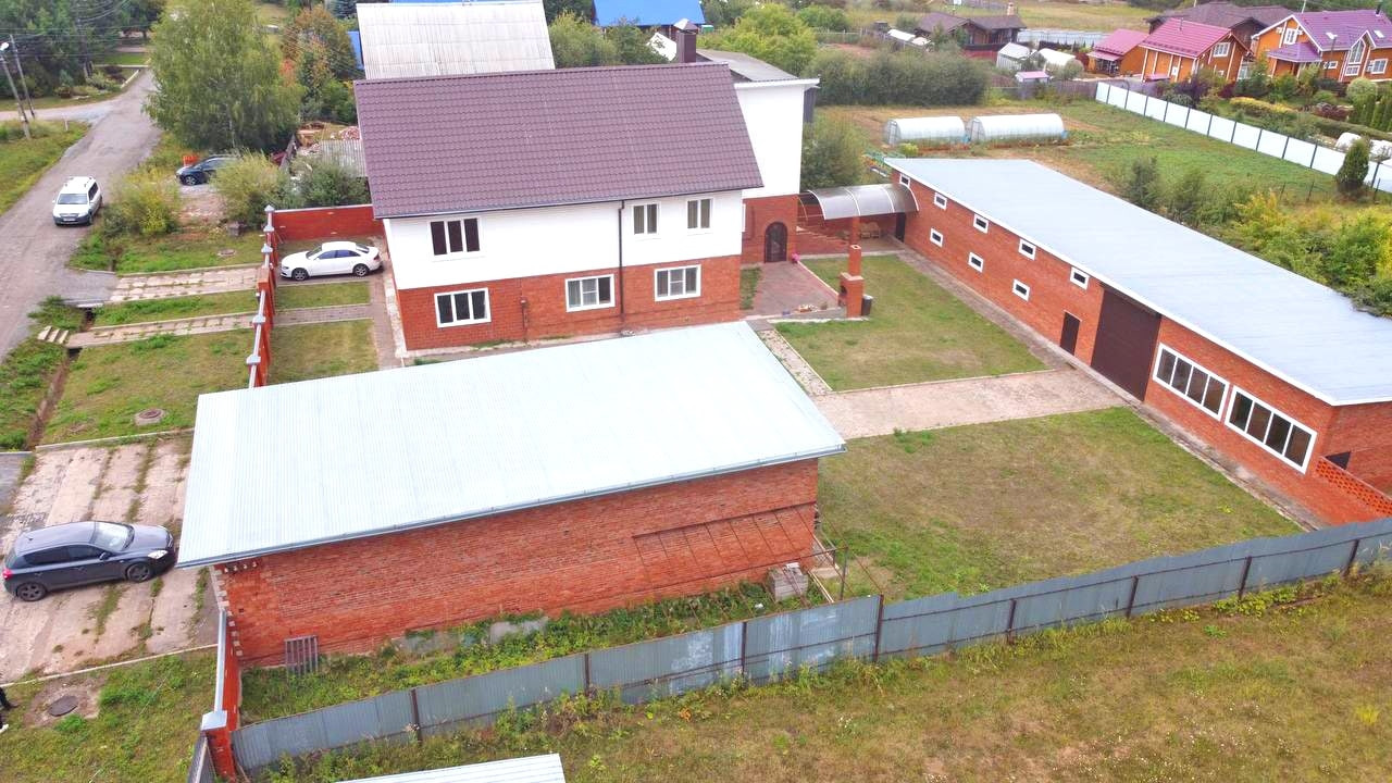 Есть отдельная хоз. постройка примерно 250 кв. м из кирпича. 2 этажа.