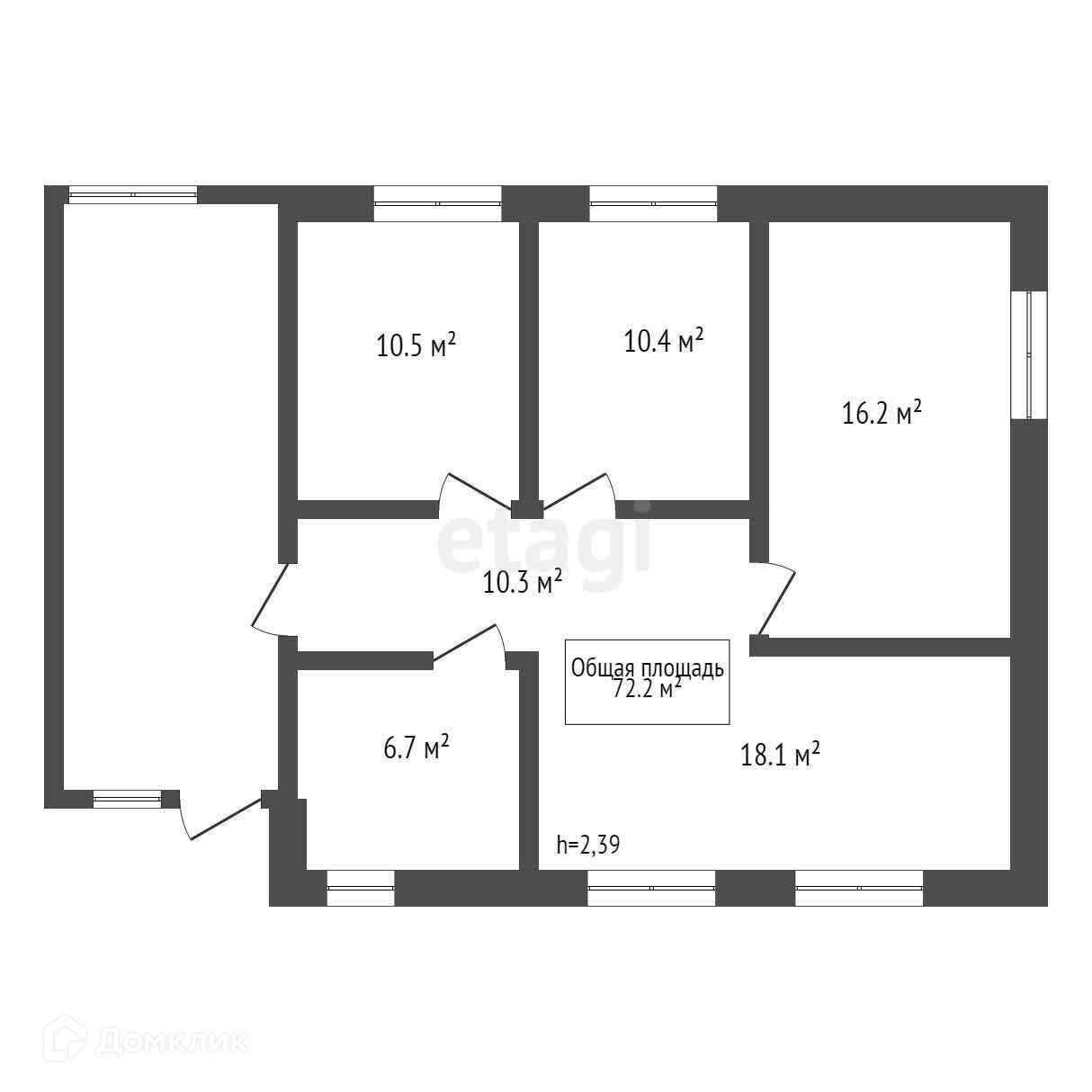 Общая площадь 72.2 м2