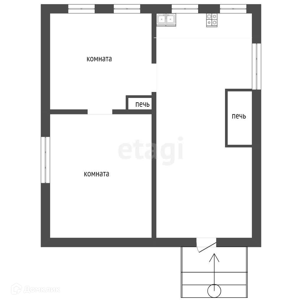 Сам дом просторный, две комнаты, кухня. Заведено центральное водоснабжение, вода хорошего качества. Отопление печное, удобства во дворе!