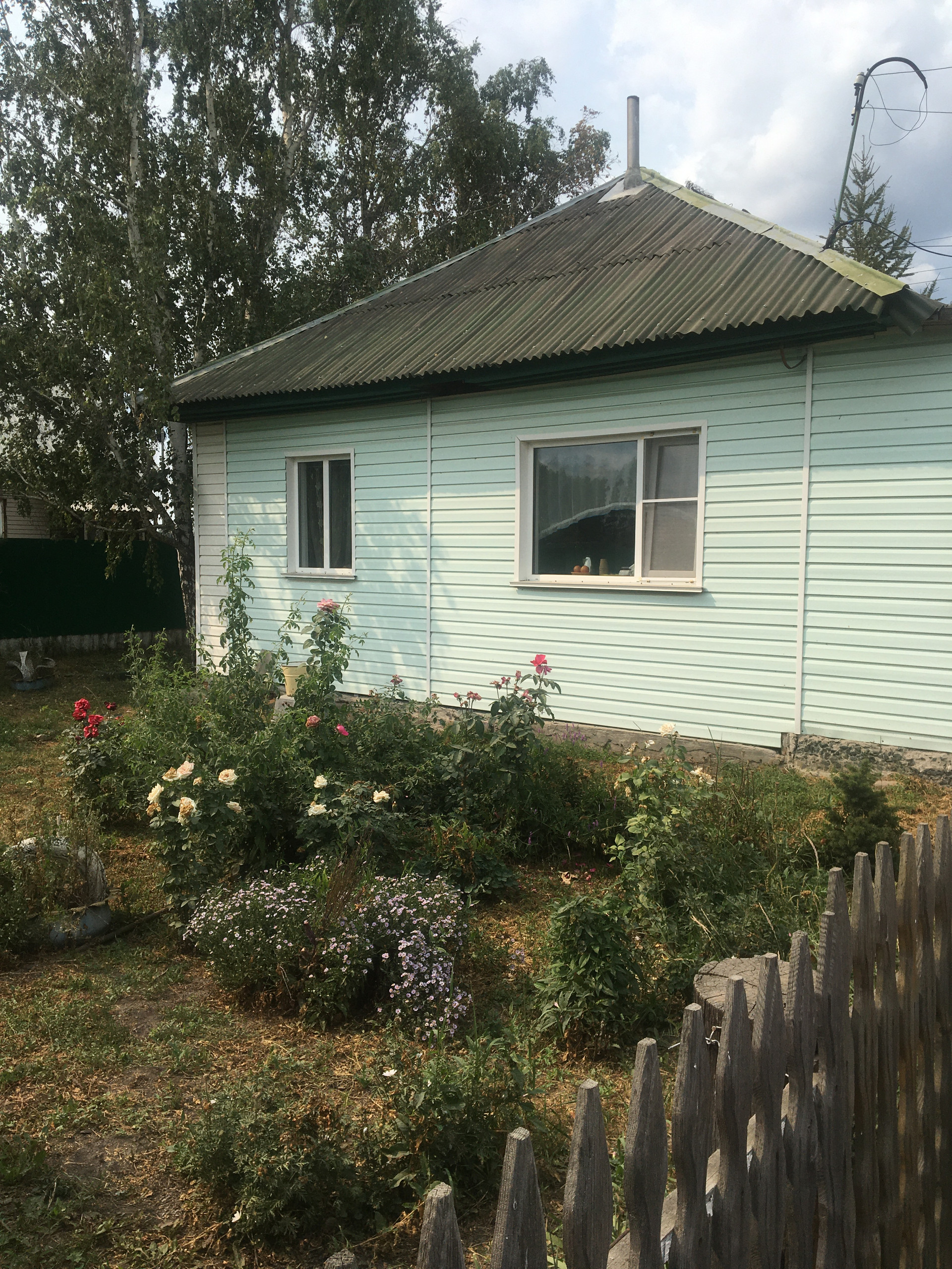 Очень теплый дом, расположен на очень высоком месте села. Дом построен из бруса лиственницы вперемешку со шпалами ( под окнами и фундамент). Фундамент на тумбах  (т.е.дом высокий), пол и потолок лиственница. Через дорогу река, три жилые комнаты, по желанию можно прихожую переоборудовать в еще одну жилую комнату. Электроснабжение осуществляется от двух счетчиков, один из которых трёхфазный, выгребная яма на шесть кубов из бетонного колодца. Отопление печное, но установлен электрокотел. Гараж из бревен красного леса, сарай построен три года назад. Баня из бруса красного леса. Две теплицы, участок огорожен забором из профиля с забетонированными столбами. Есть сад с яблонями и иными плодово-ягодными кустарниками. В доме и на веранде есть погреб, плюс отдельно в саду подвал