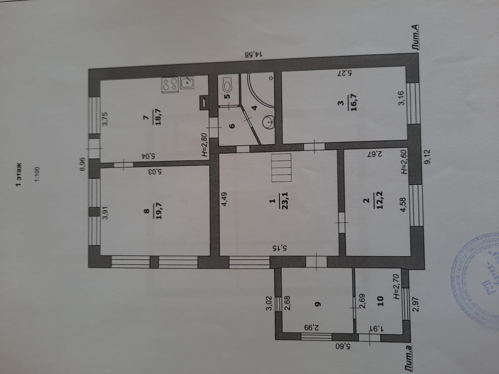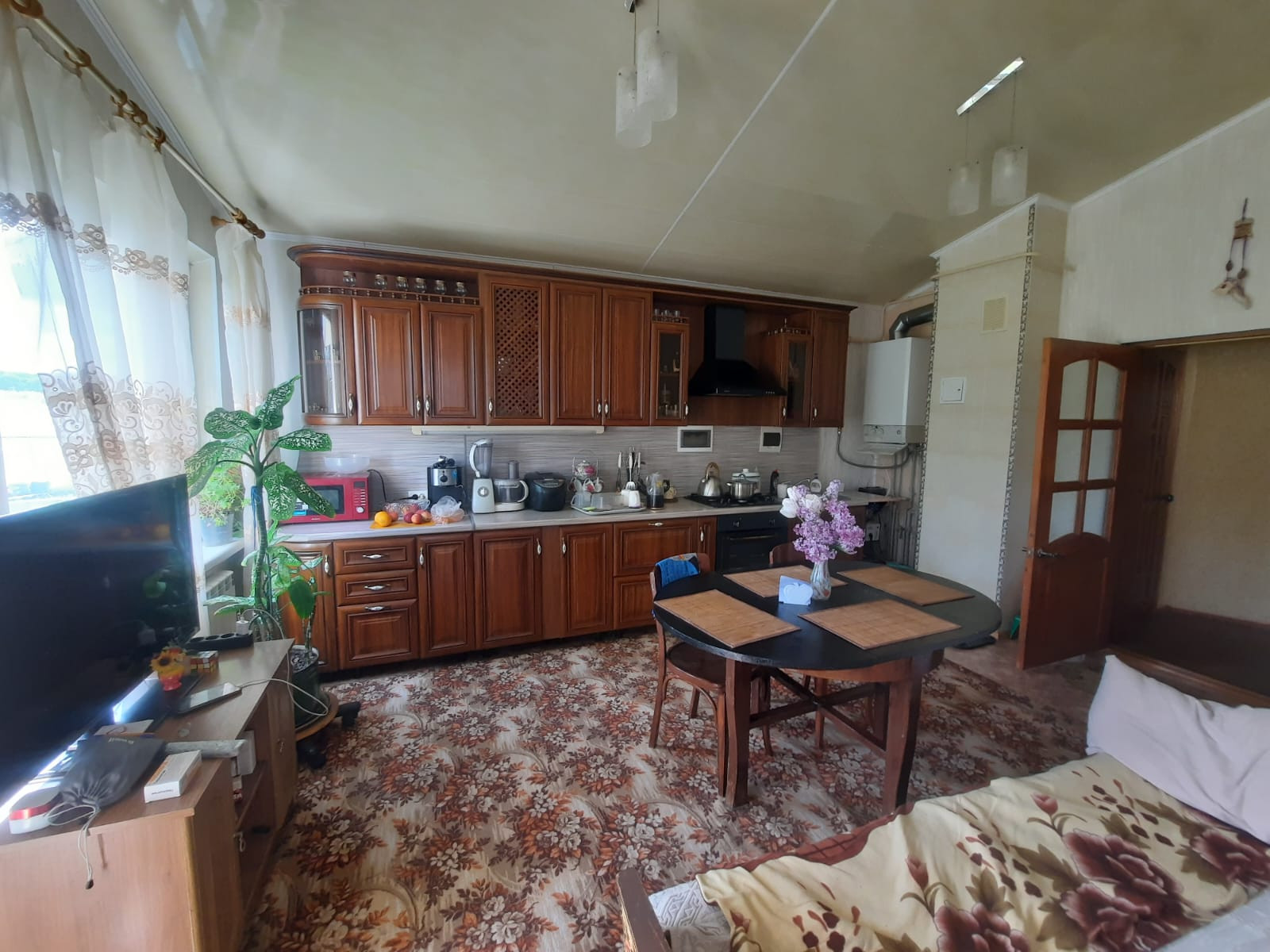 На первом этаже зал, две спальни, ванная комната ,туалет, кухня и зимний сад. Высота потолков 2,80 м.. На втором этаже спальня, туалет и кладовая. Санузлы в кафеле, на кухне установлен кухонный гарнитур.