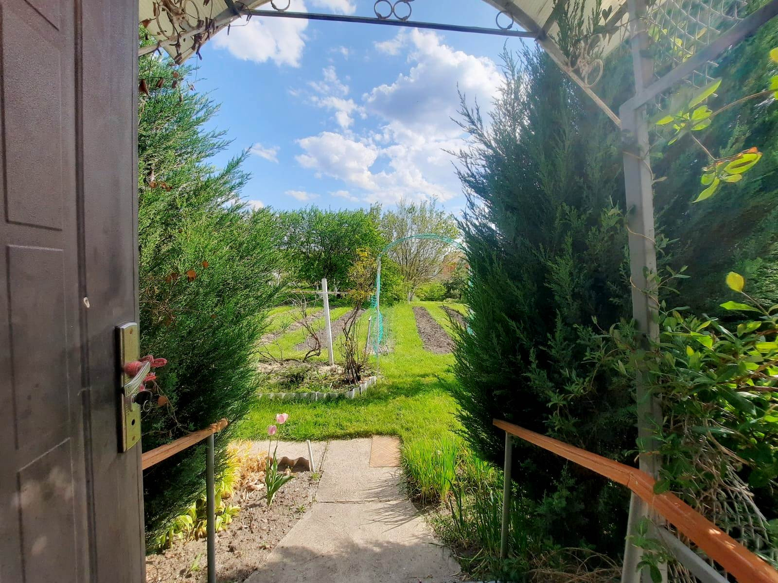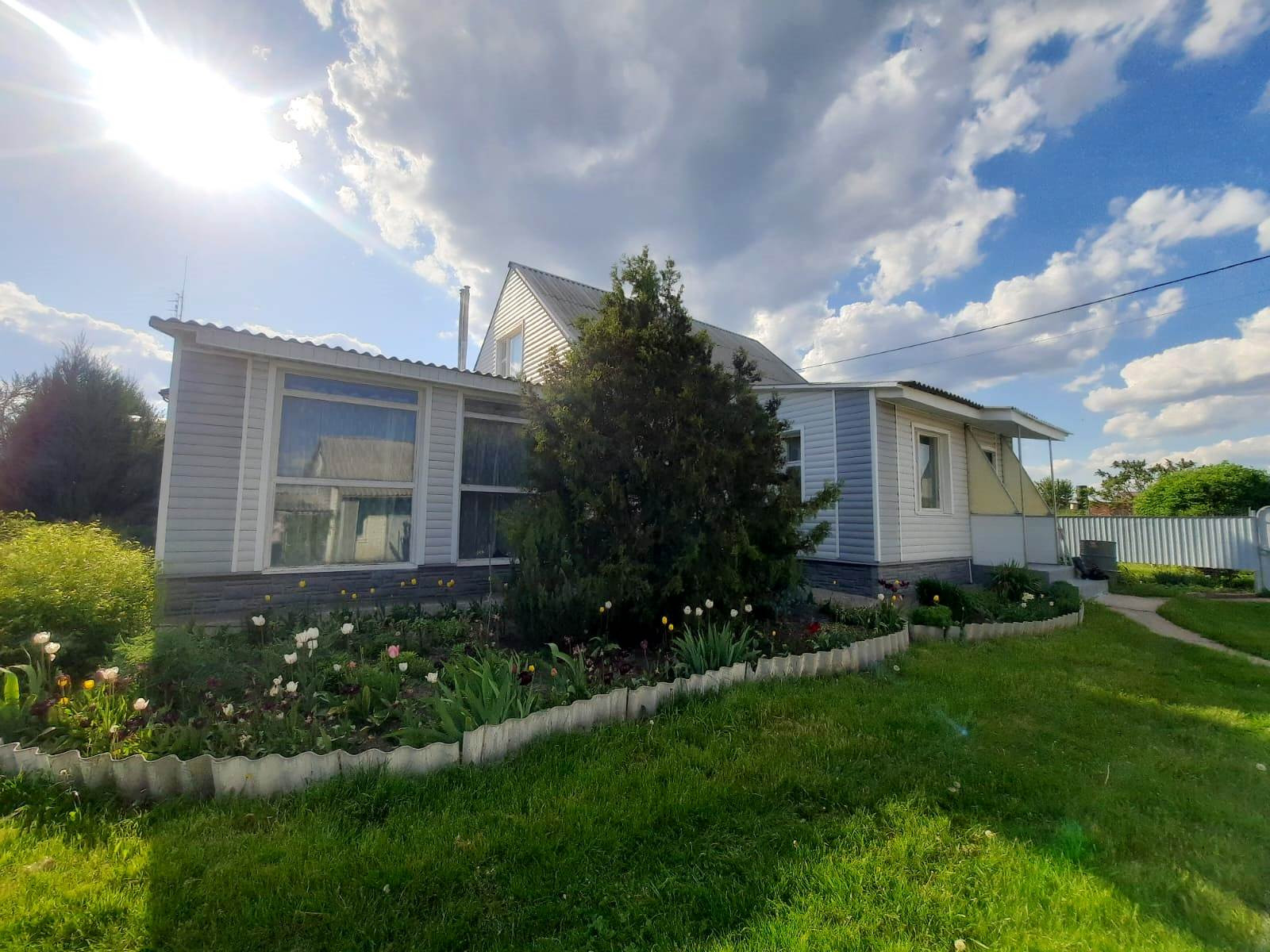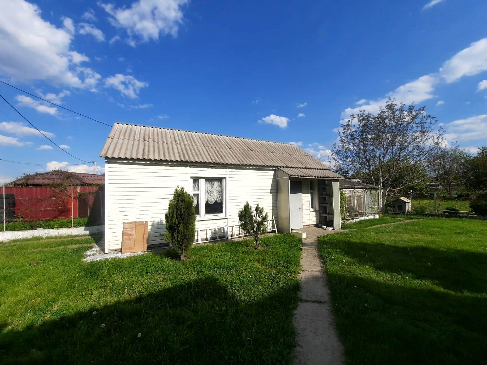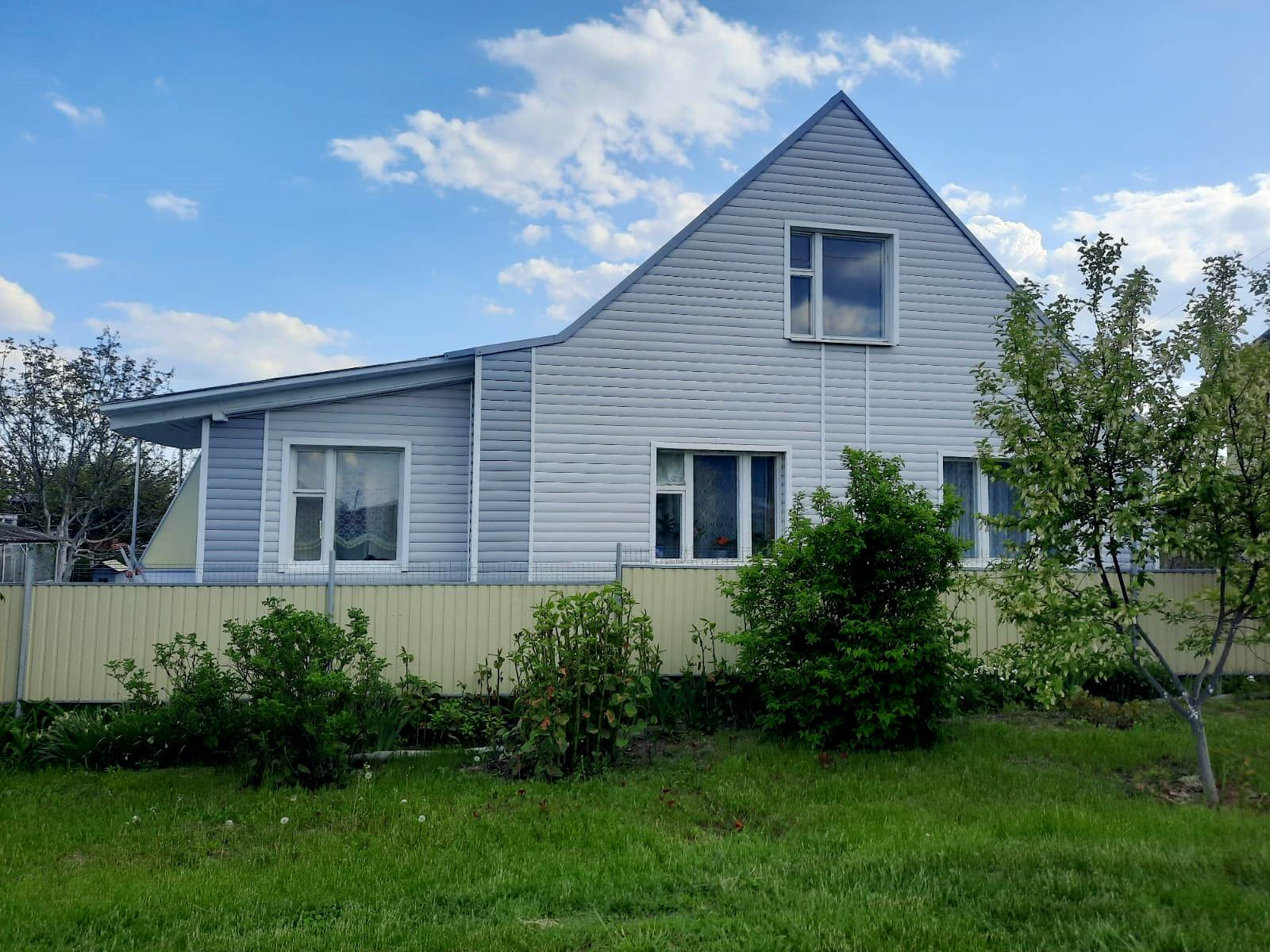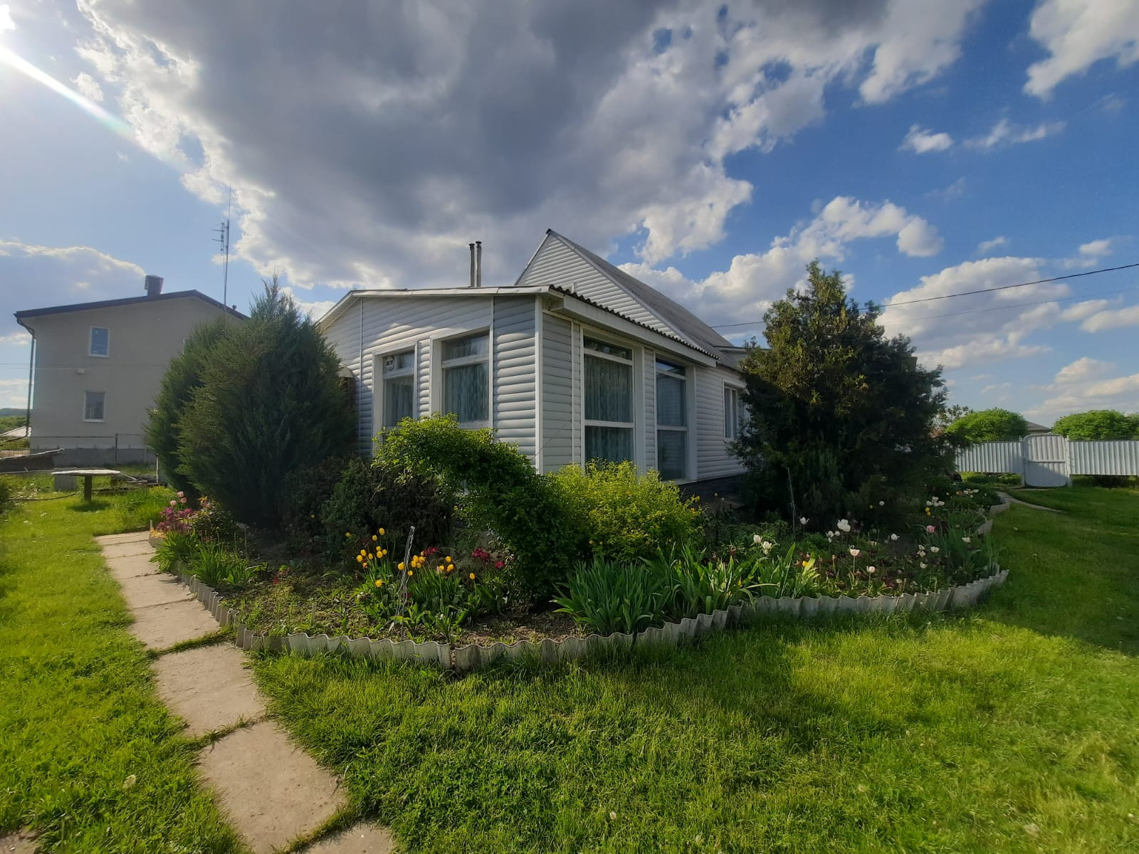 На участке также имеется гараж со смотровой ямой и подвалом, есть кладовка для инвентаря. Участок разработан, во дворе газонная трава, декоративные растения и цветы. Имеется забор с калиткой. Улица асфальтирована, соседи хорошие.