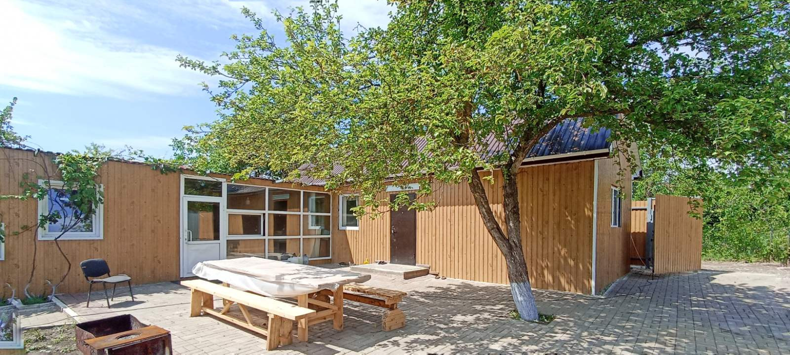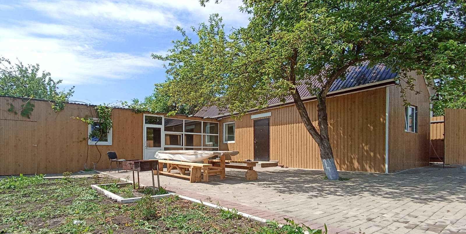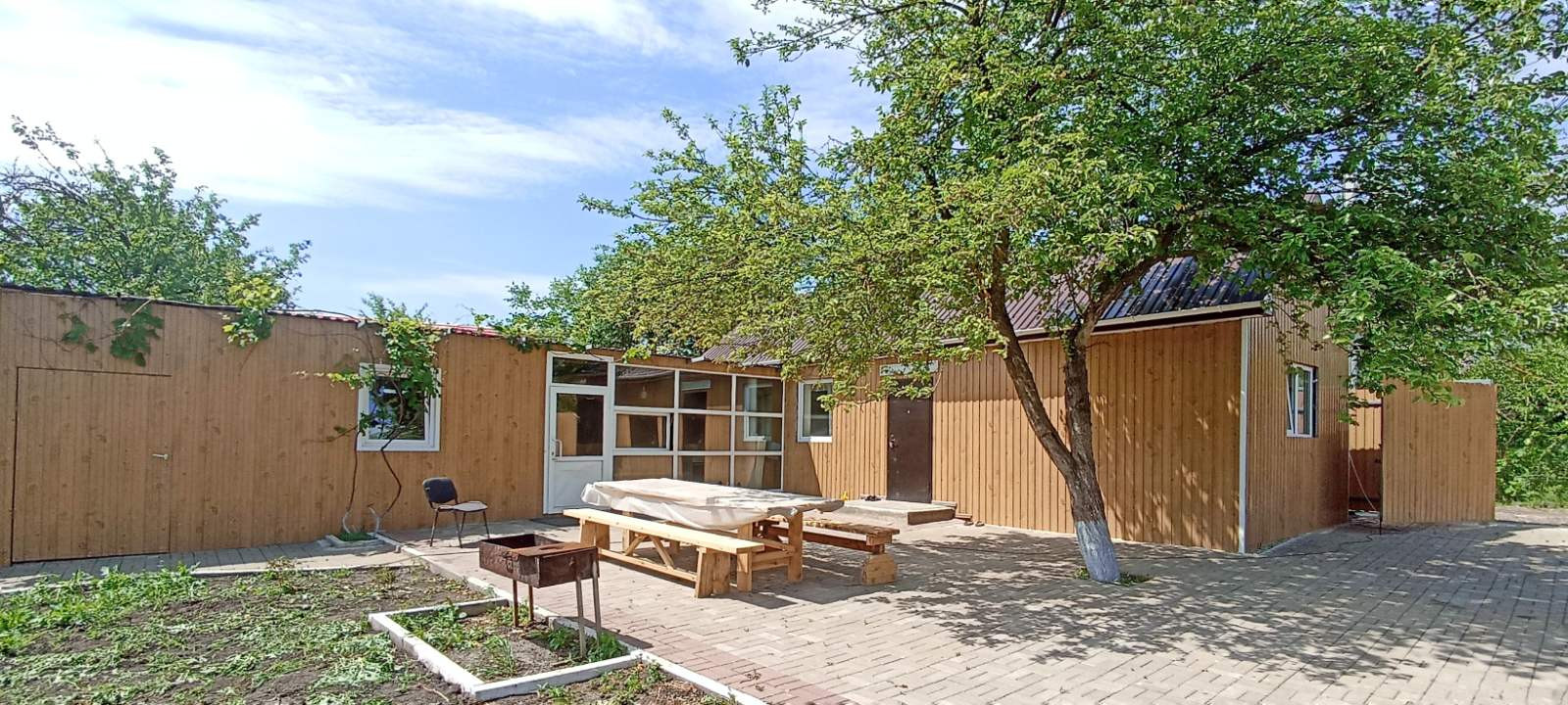 Рядом с гостевым домом расположены хозяйственные помещения: кладовая для садового инвентаря.