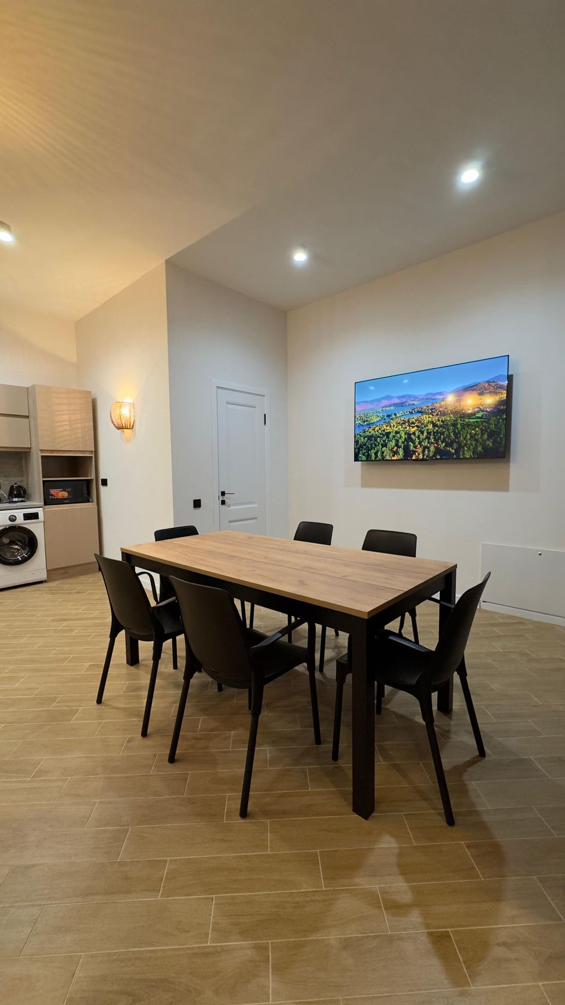 Для вашего удобства в доме есть вся кухонная утварь, постельное белье и полотенца, средства гигиены. Из техники имеется стиральная машина, микроволновка, чайник, плита, фен, утюг с гладильной доской, телевизор и кондиционеры в каждой комнате.