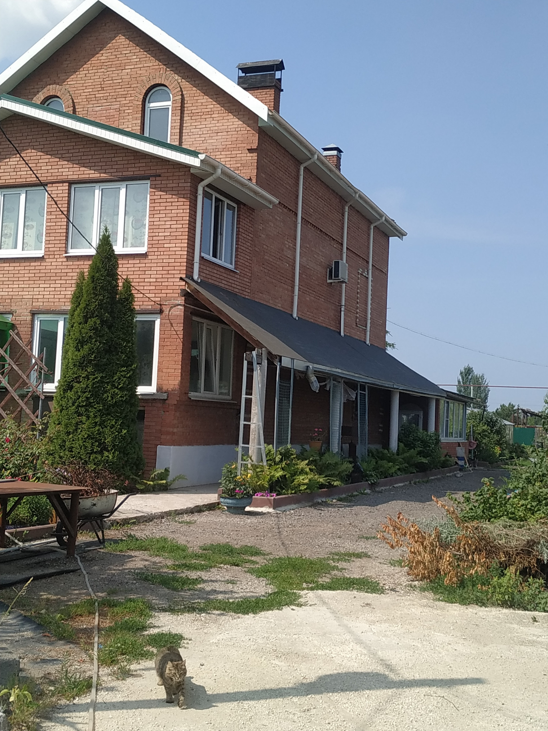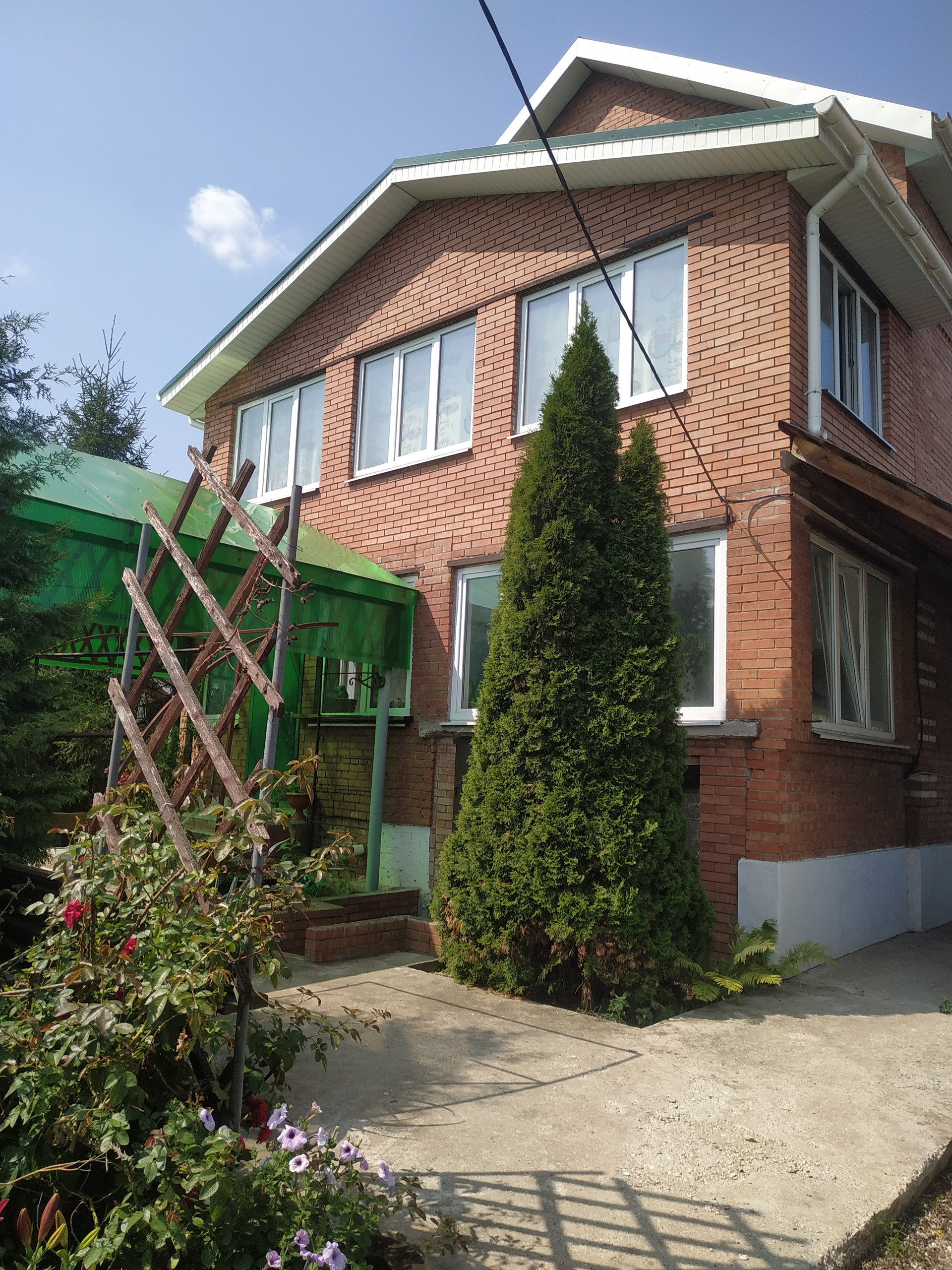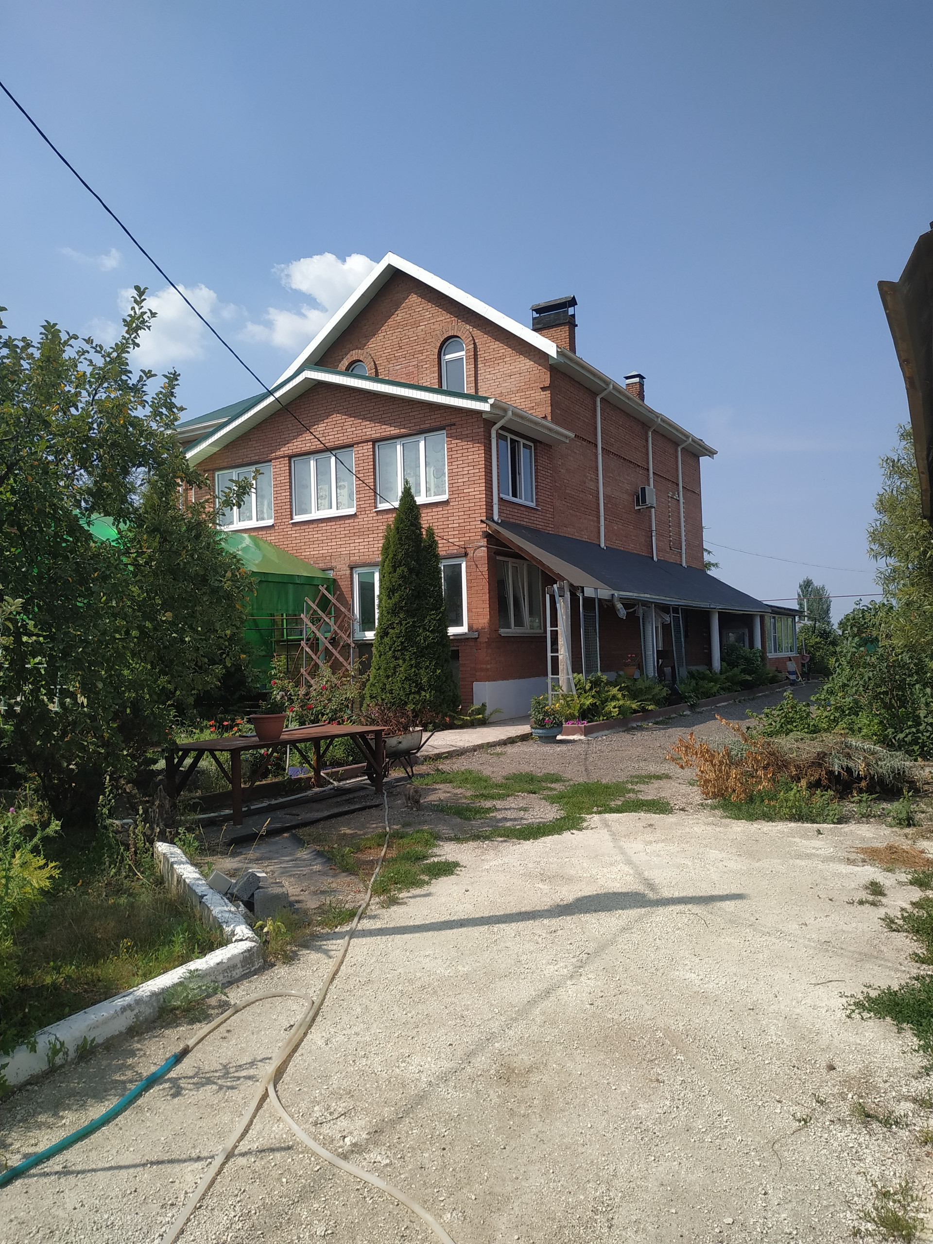 Дом построен полностью из красного кирпича, крыша профлист, все окна стеклопакеты,кондиционеры. 2 погреба в доме. Дом состоит из 2-х этажей и полноценного нижнего цоколя, а также имеет два входа-парадный и со стороны внутреннего двора. В доме большая терраса, комната где размещен -зимний сад. На территории участка расположен гараж на 3 авто, Баня - сауна расположена в доме, русская печь ,котельная в цоколе ,камин на 1 этаже, 3 санузла на каждом этаже и в цоколе и на участке.На участке отдельно стоящий домик,Участок разделен забором-под сад и огород с теплицами , все насаждения плодоносят, на участке хвойные , декоративные растения, Вторая часть под фермерское хозяйство-коровники,свинарники, птичники, помещения под корма, сено,луг для выгула скота.....В этом доме есть все и даже больше. А какой вид из окна, с одной стороны на лес, с другой на церковь.