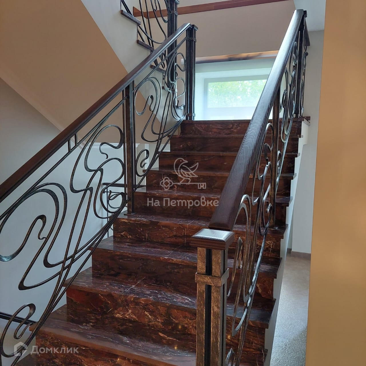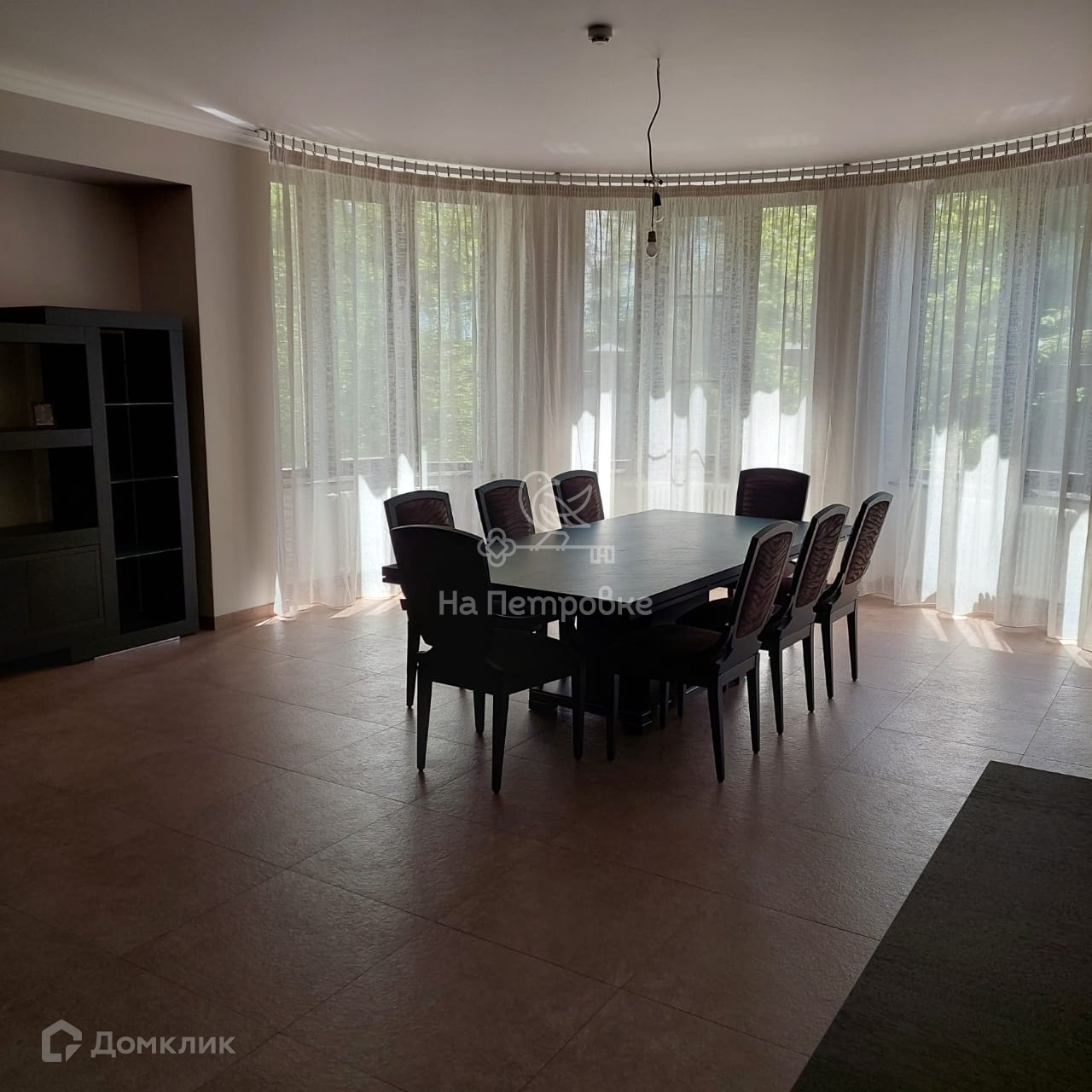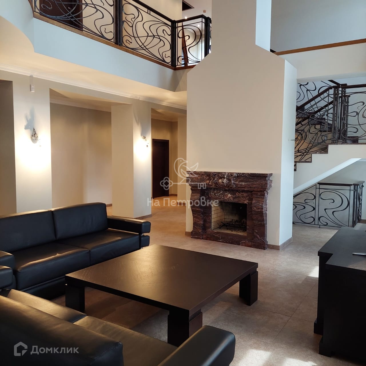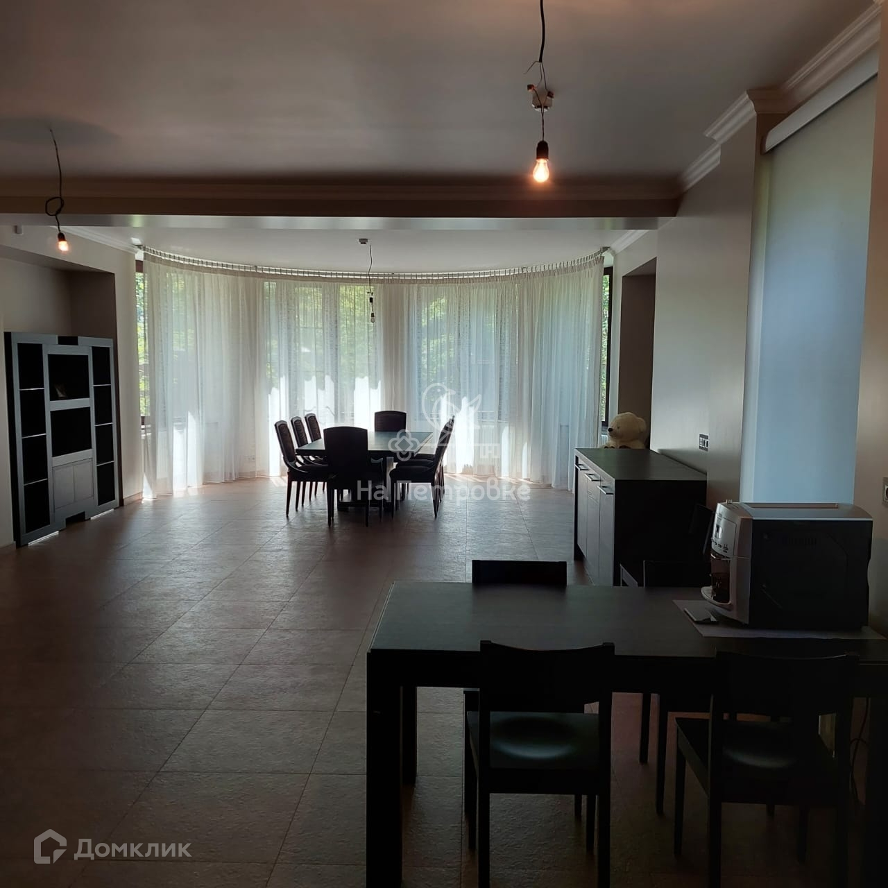 Два этажа площадью 524 кв. м. На первом этаже находятся: уютная гостиная с камином, с зоной второго света, кухня, большая солнечная столовая, две гостевые комнаты, санузел, сауна, бойлерная, щитовая, гараж. На втором этаже расположены: кабинет, библиотека, зимний сад, две комнаты, большая комната свободного назначения, спальня хозяев и два санузла, постирочная. Со второго этажа выход на отделанную деревом большую красивую мансарду 170 м2 свободной планировки. Дом частично меблирован (спальня хозяев, гостиная, кухня, столовая и прихожая, санузлы). Мебель дорогих итальянских фабрик.