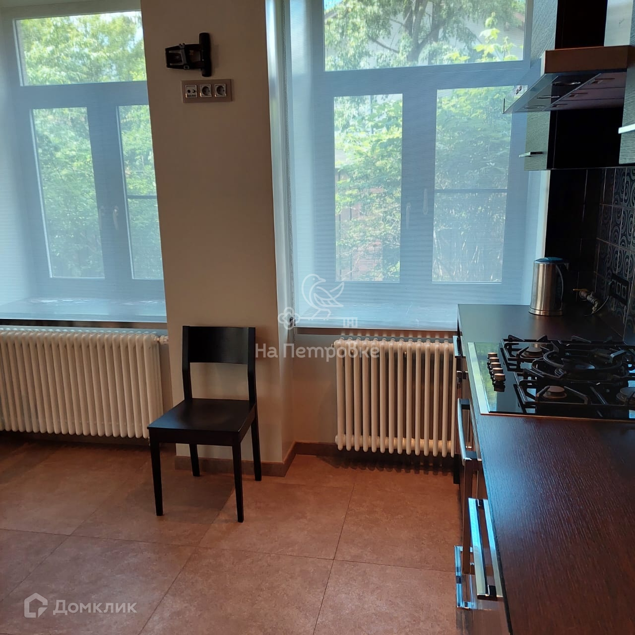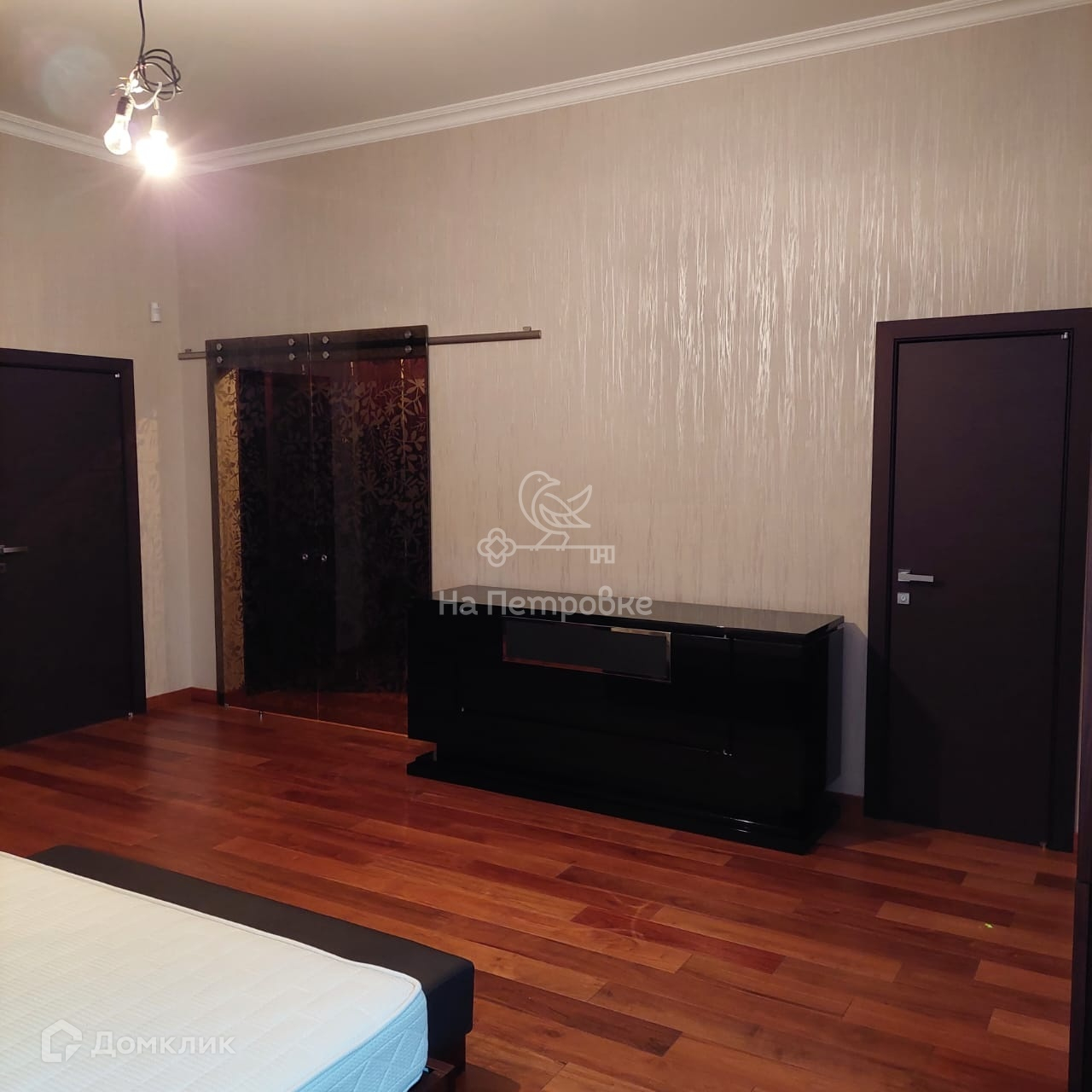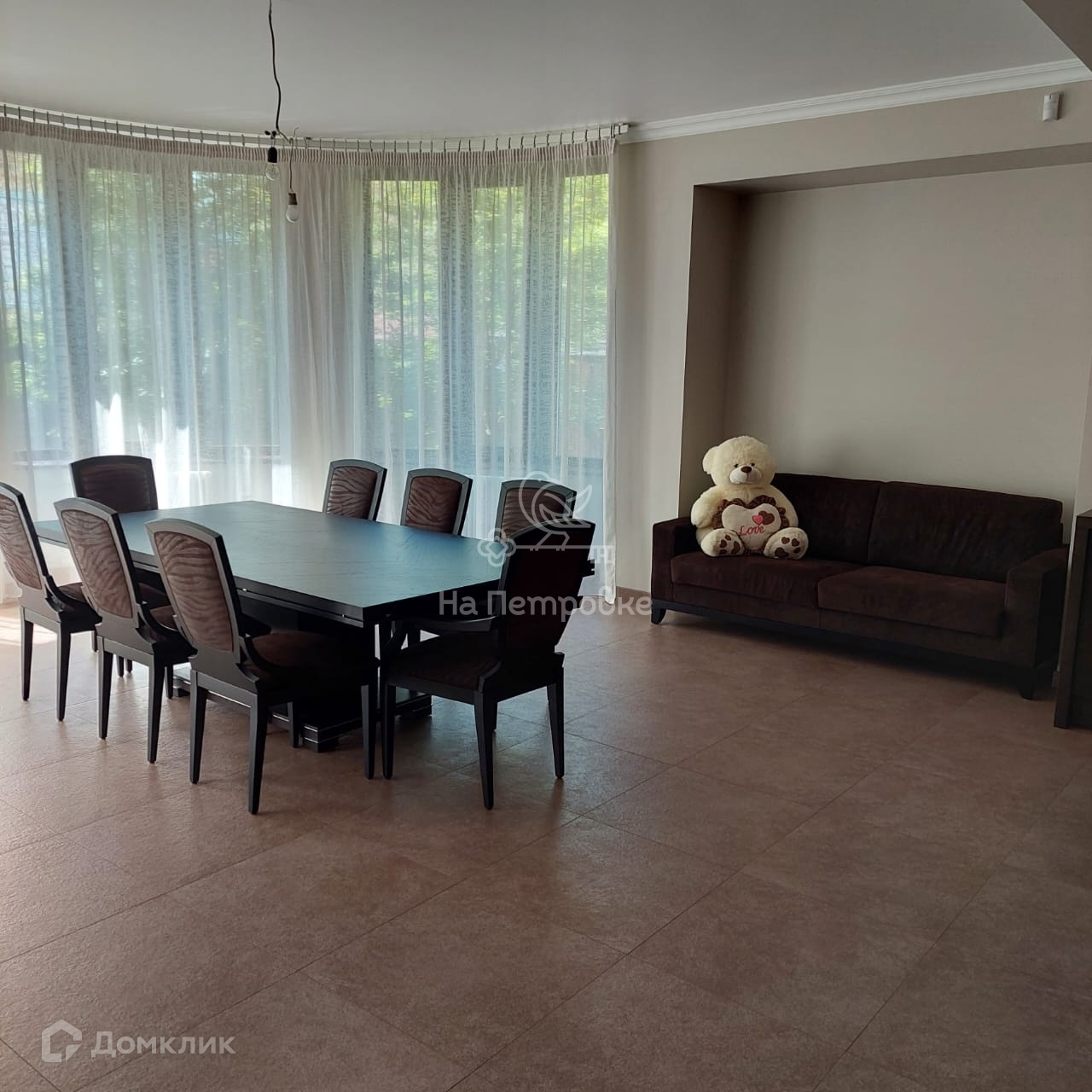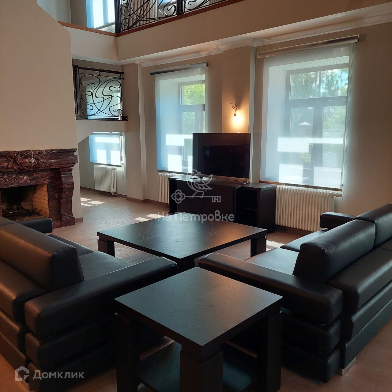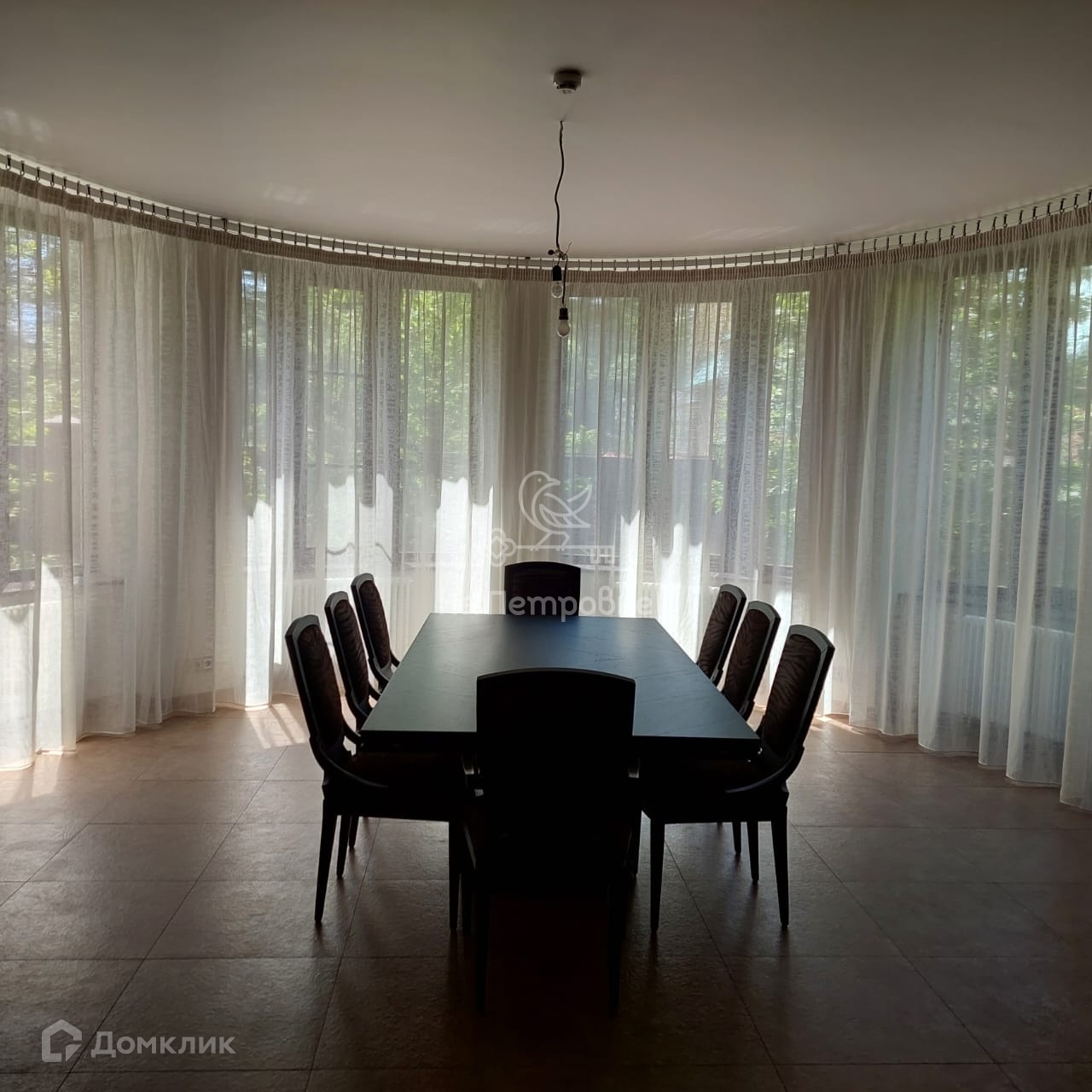 Два этажа площадью 524 кв. м. На первом этаже находятся: уютная гостиная с камином, с зоной второго света, кухня, большая солнечная столовая, две гостевые комнаты, санузел, сауна, бойлерная, щитовая, гараж. На втором этаже расположены: кабинет, библиотека, зимний сад, две комнаты, большая комната свободного назначения, спальня хозяев и два санузла, постирочная. Со второго этажа выход на отделанную деревом большую красивую мансарду 170 м2 свободной планировки. Дом частично меблирован (спальня хозяев, гостиная, кухня, столовая и прихожая, санузлы). Мебель дорогих итальянских фабрик.