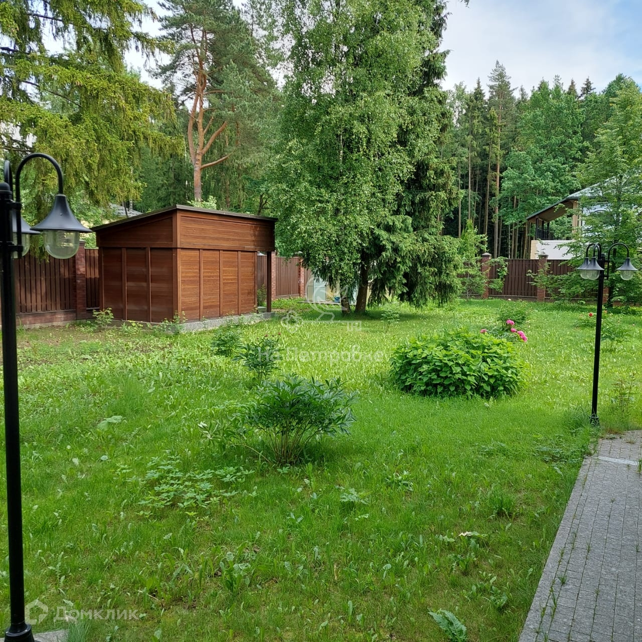 Участок огорожен со всех сторон красивым деревянным забором из сибирской лиственницы. На участке есть лесные деревья, посажен сад, декоративные кустарники и цветы, есть теплица и хозблок. Отмостка, парковочная площадка на 4 машины. Дорожки и площадка под беседку выложены брусчаткой из лабрадорита.