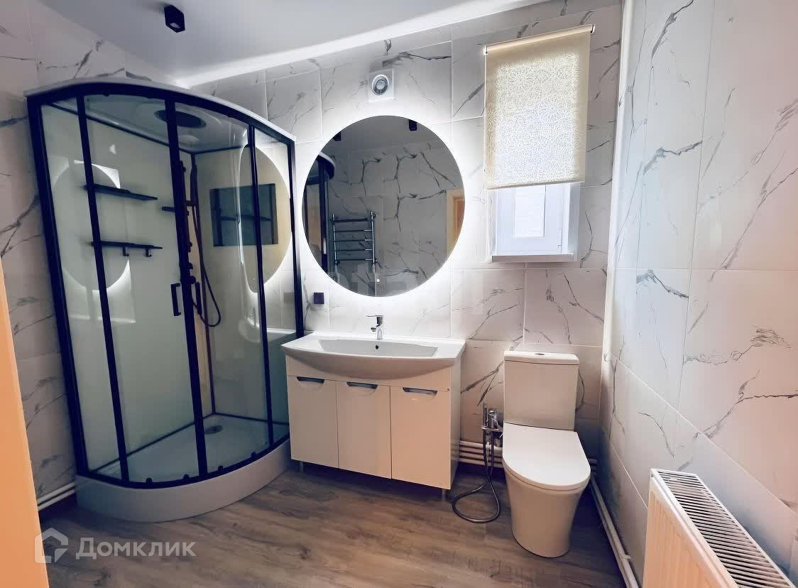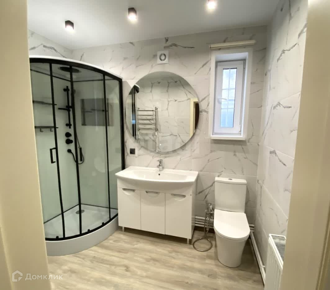 На первом этаже расположена просторная кухня-гостиная площадью 42 кв.м, спальня, гардеробная, санузел, котельная и прихожая. На втором этаже - 3 уютные спальни, гардеробная и санузел. Высота потолков 3 метра, установлены теплые полы, кондиционеры, радиаторы отопления и сантехника.