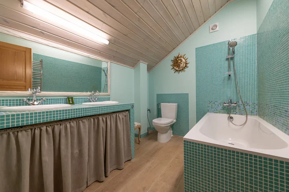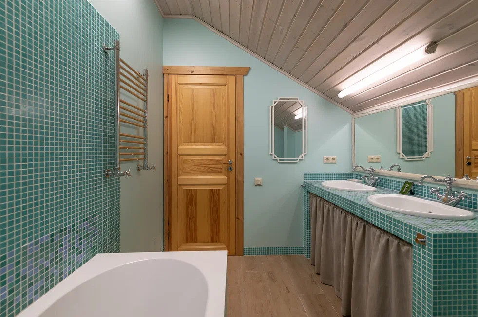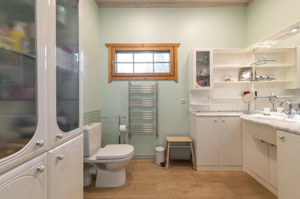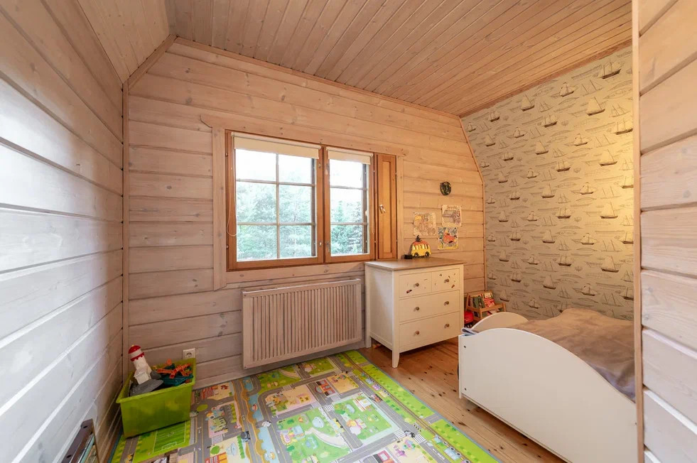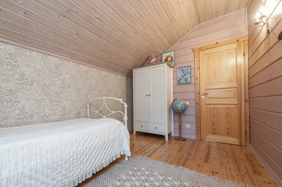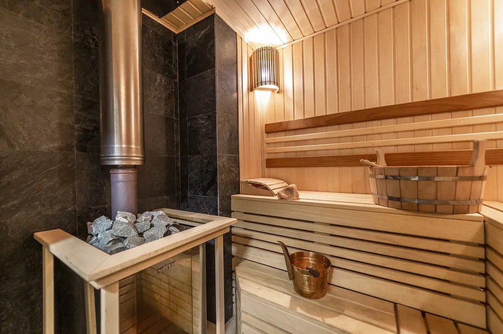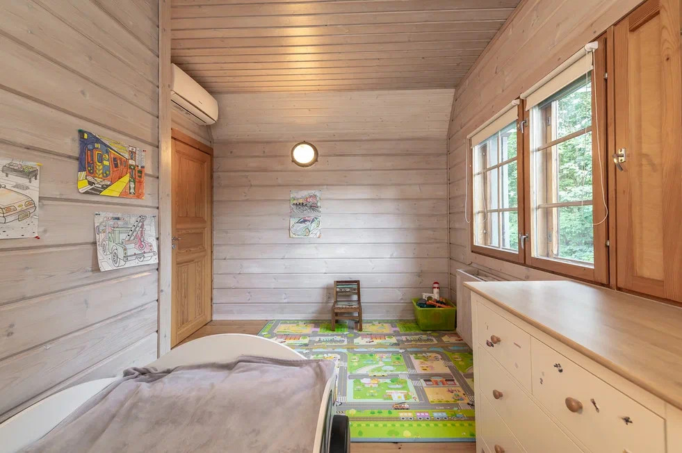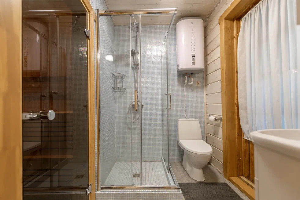Внутри бани замечательная парилка из осины, установлена печь Harvia. Гостевая комната, с/у с душевой. Баня подключена к общей системе отопления дома. С задней стороны бани есть кладовая для хранения вещей.