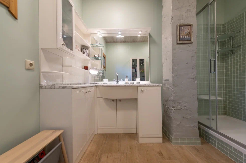 2-й этаж- гостиная с камином, который с любовью выложен старинными изразцами + современная кухня с встроенной посудомойкой и со всей необходимую технику+ столовая с большим столом для гостей+ с/у. Вход в столовую через гостиную и кухню. Большая часть мебели и предметы интерьера в доме имеют историческую ценность.