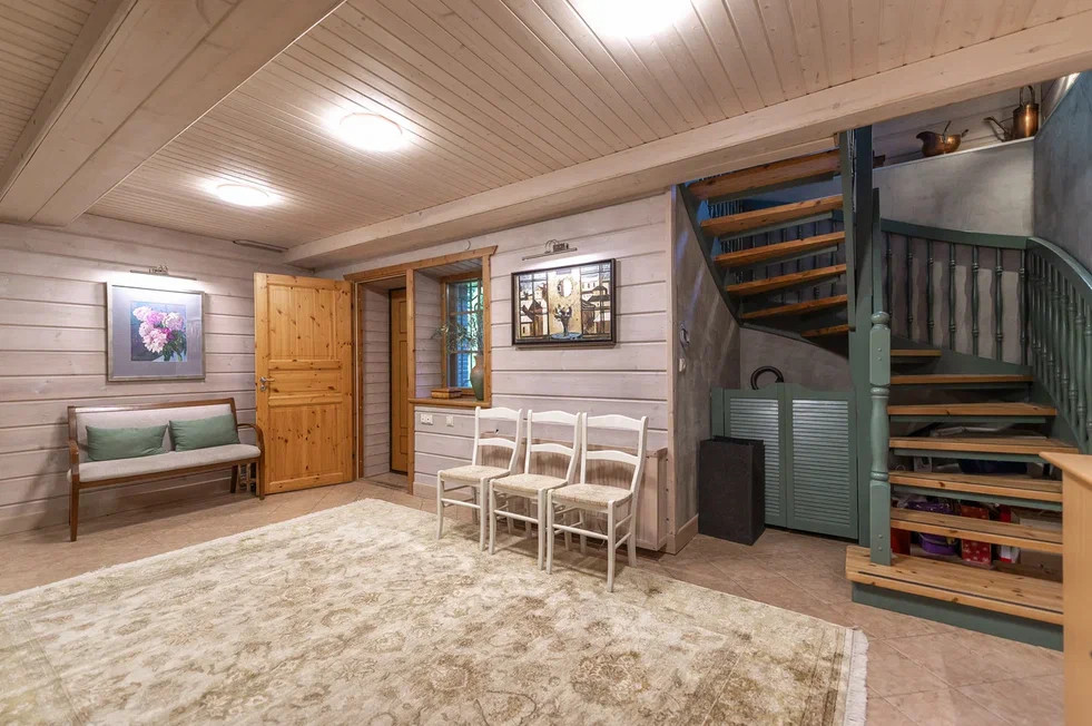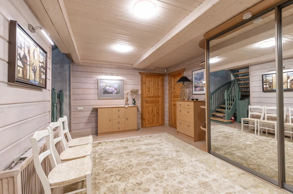 1-й этаж- прихожая большая с встроенным во всю стену шкафом + стилизованный с/у + оборудованная игровая комната для детей + гостевая комната (все можно переоборудовать под свои запросы и желания) + котельная с отдельным входом, в которой установлен котел Wissman.