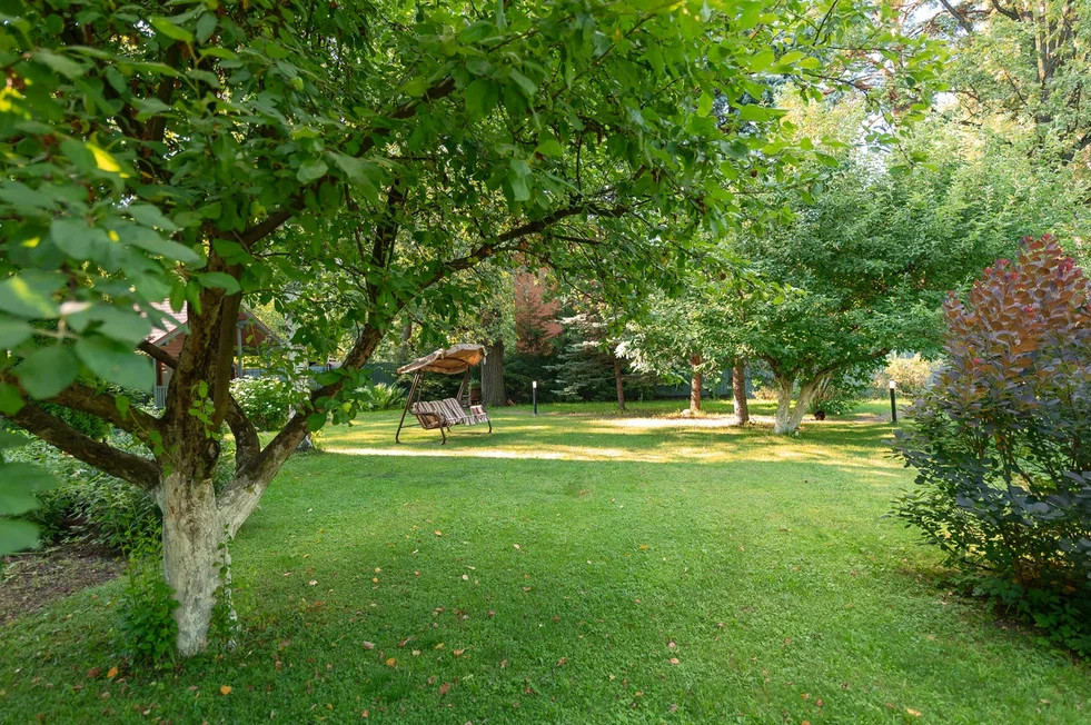 На участке 20 соток с вековыми дубами, ландшафтным дизайном: ухоженные лужайки, плодовые кустарники и деревья и многообразие цветов, продаются:
