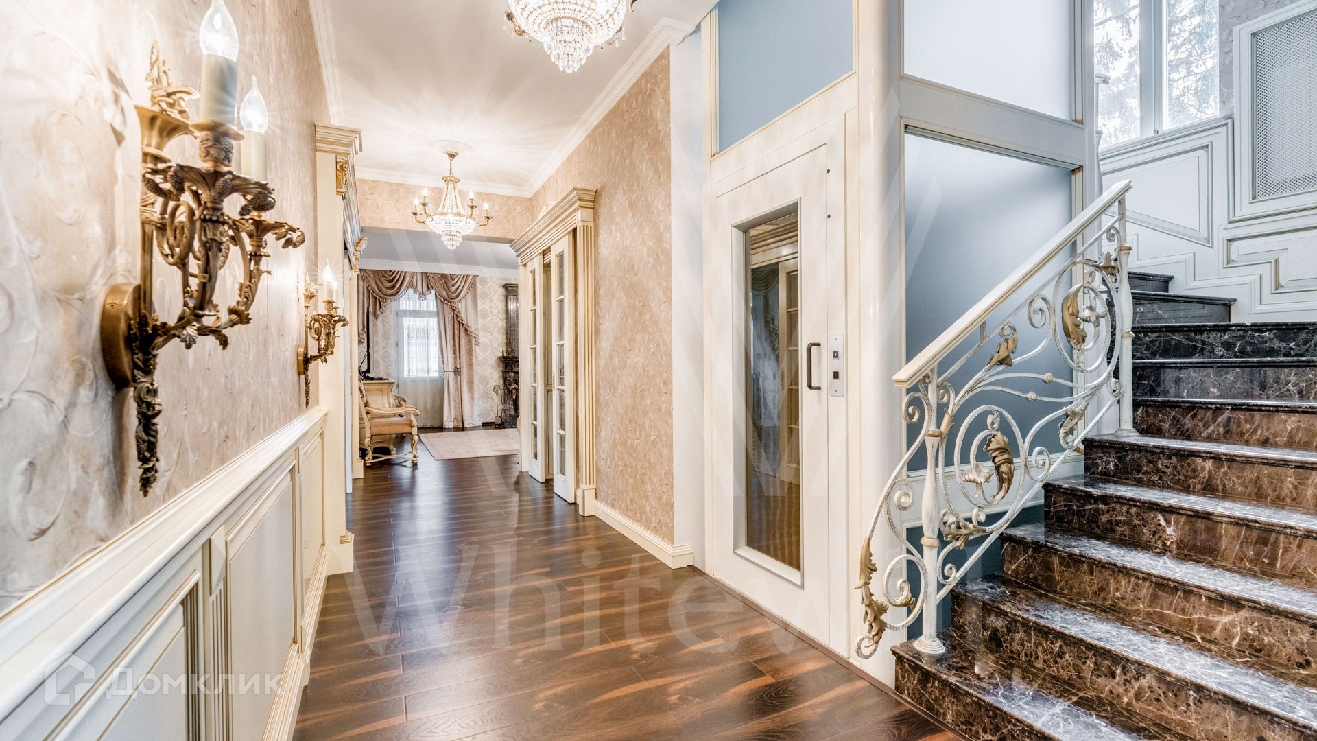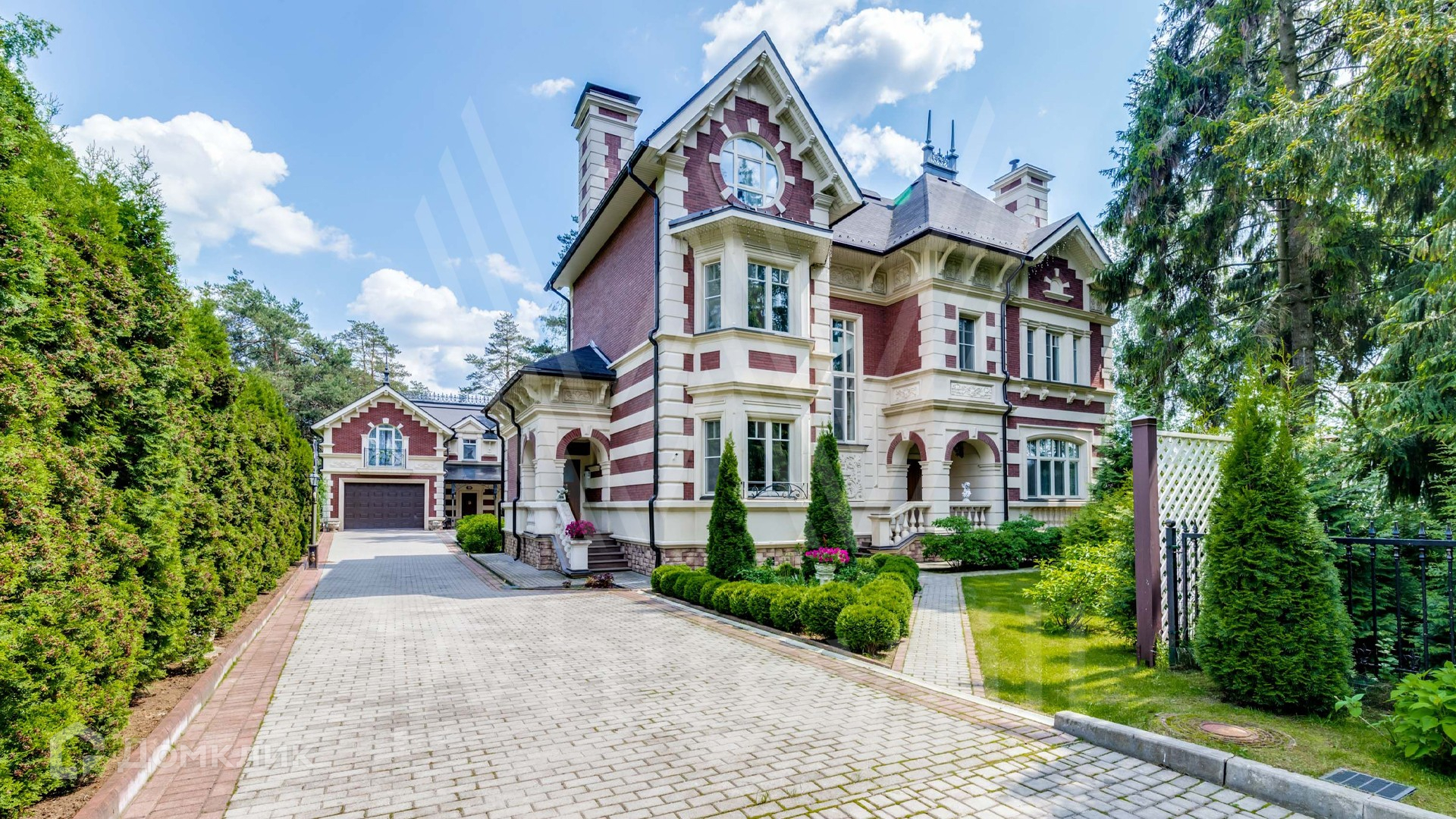 ID 8 982. Трувиль. Резиденция во фламандском стиле площадью 370 м² расположена на уютном лесном участке 14,8 сотки с соснами. Фасад главного дома выполнен по старинным образцам с большим вниманием к деталям — облицовка из красного клинкера дополнена рустовкой, резным карнизом, балюстрадой и шпилем на крыше. Интерьер резиденции выполнен в классическом стиле в светлых тонах. Парадная лестница дополнена лифтом. Кухня и санузлы оборудованы встроенной техникой.