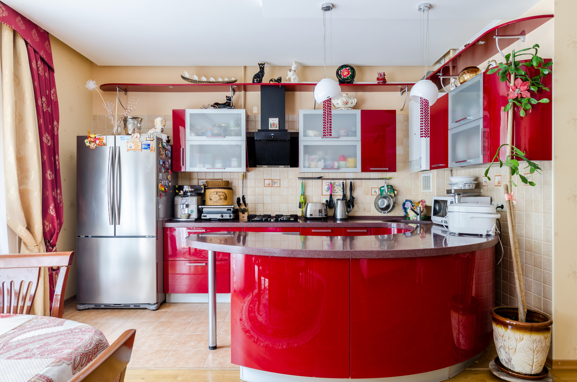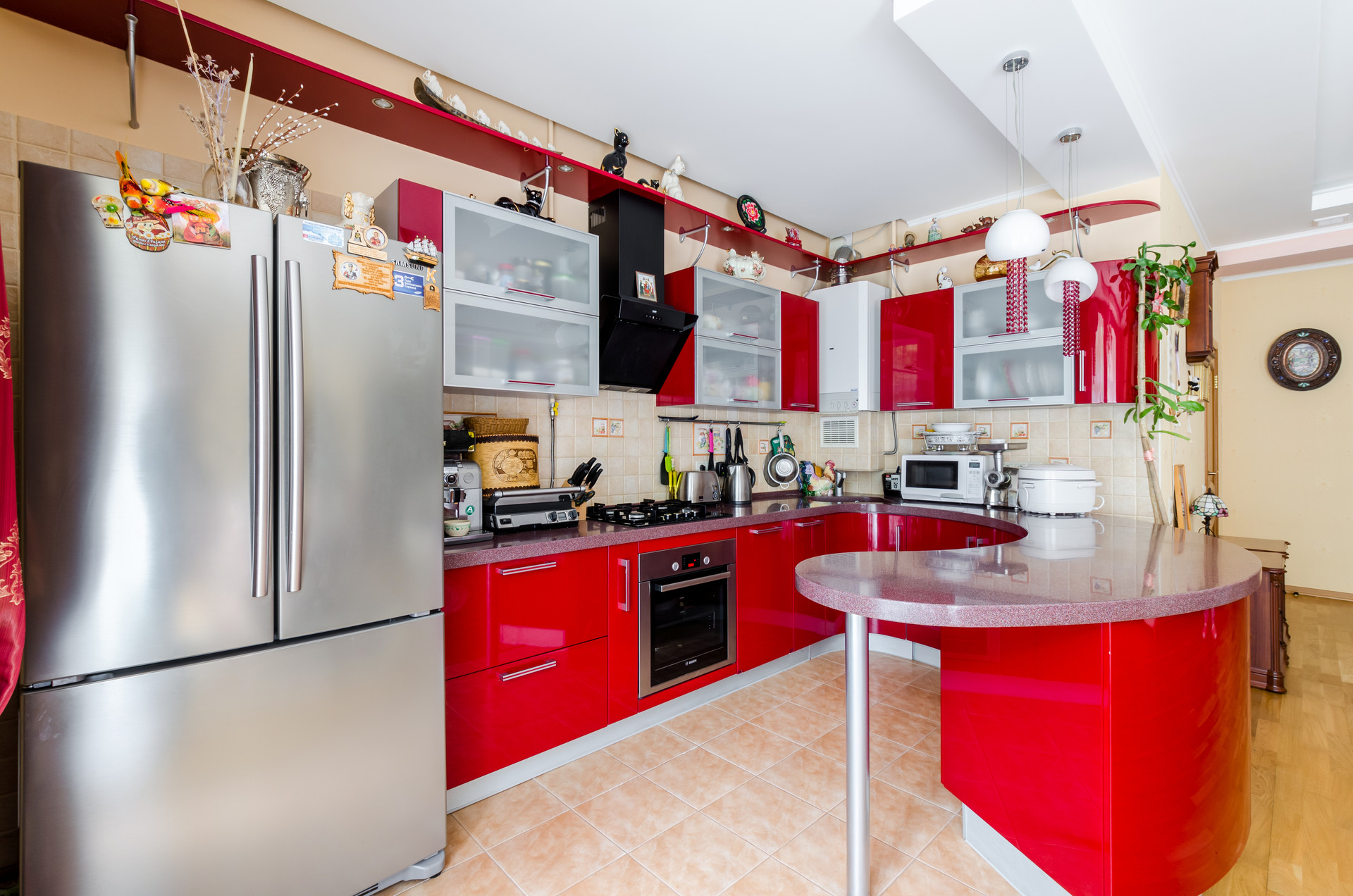 Кухня оборудованна всем необходимым, включая духовой шкаф, газ плиту, посудомоечную машину, измельчитель отходов и вытяжку.