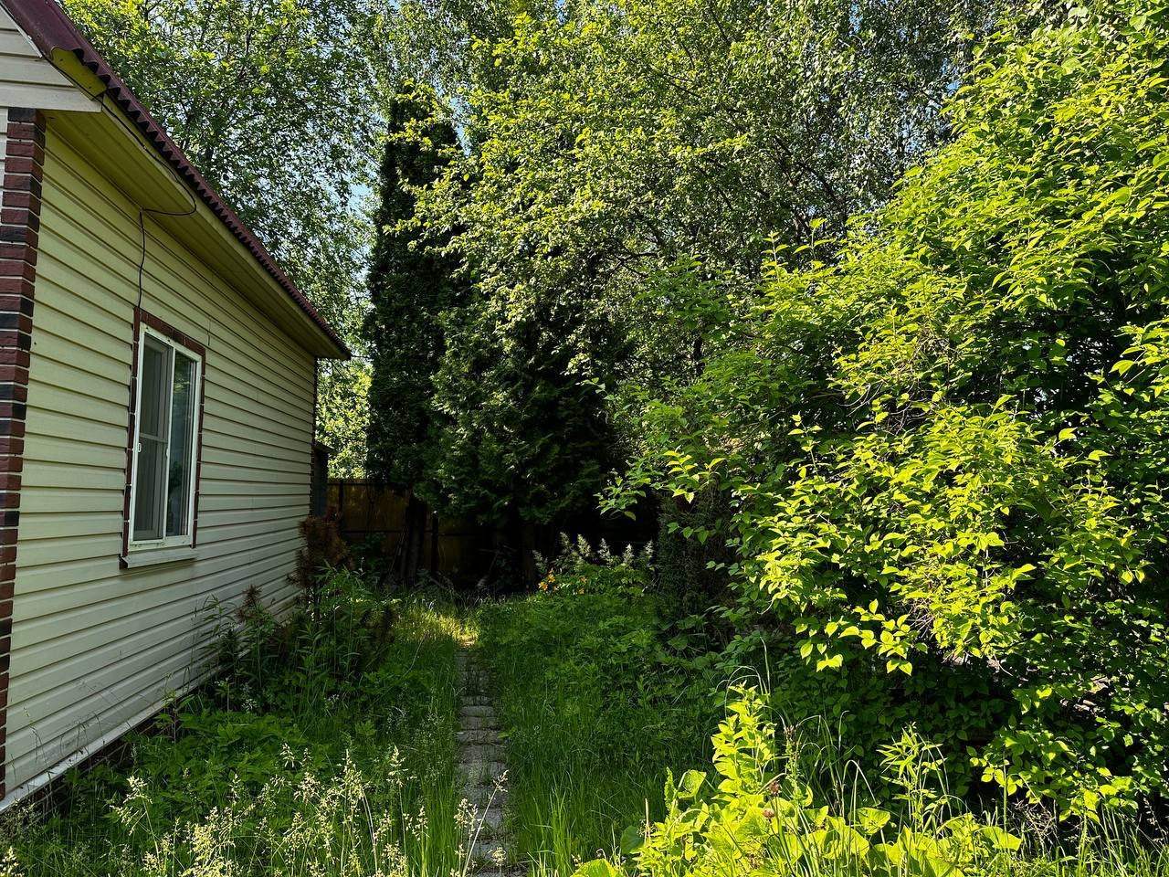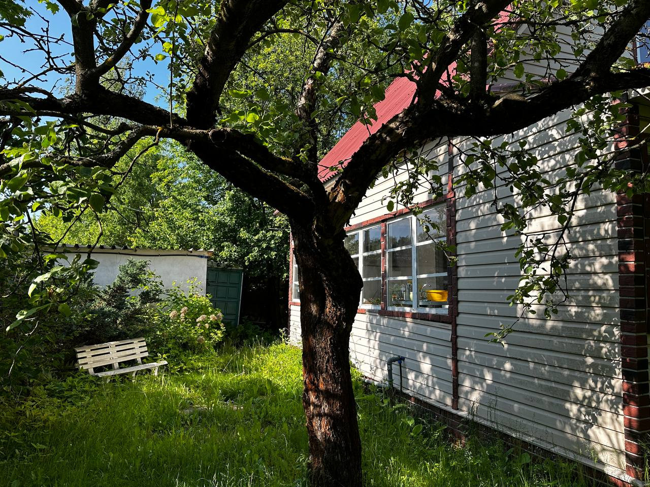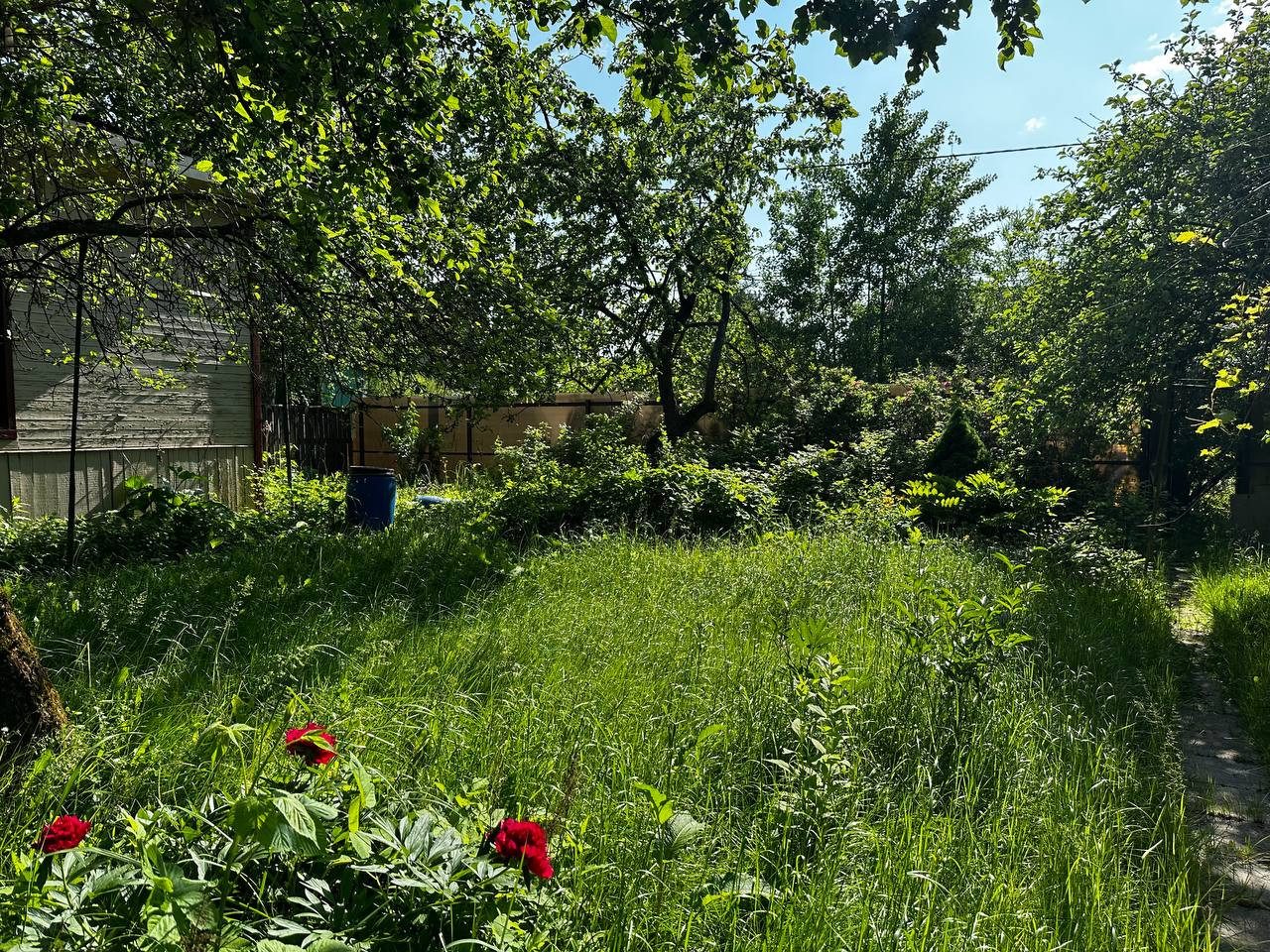 Уютный участок с небольшим дачным домиком. На участке красивые яблони, береза, черемуха, огромные туи, можжевельник, ежевика, декоративный виноград. Две приятных лужайки: одна подойдет для уличного столика с зонтиком, на второй специально высажен газон, для летних развлечений и шезлонгов.