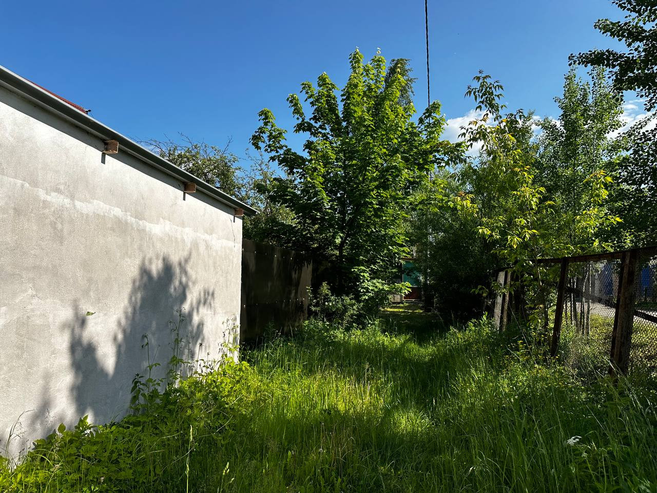 Домик старый, но пригоден для непритязательной жизни или временного проживания до постройки нового. Рядом с домом санузел: туалет, раковина, простая душевая зона. Есть кирпичный гараж.