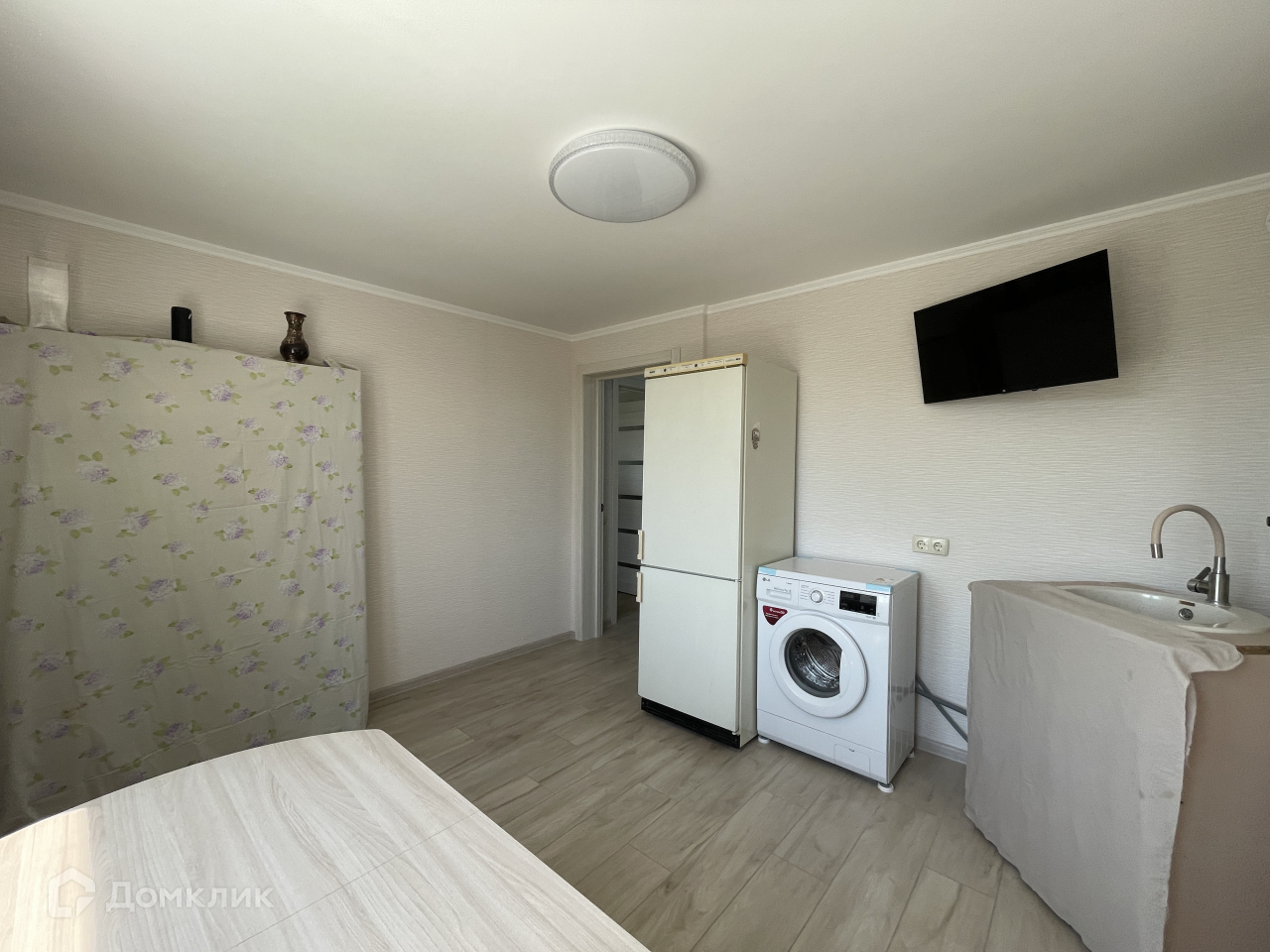 Полы в прихожей и на кухне – керамогранит, в комнате ламинат. Потолки кухня- гипсокартон, комната, прихожая и санузел-натяжные. Новые входная и межкомнатные двери.
