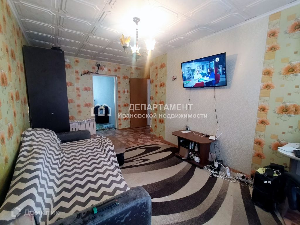 ВЗЯЛИ ЗАДАТОК! Департамент Ивановской недвижимости предлагает к покупке трехкомнатную квартиру в с. Железнодорожный (несколько километров от Кохмы и ТЭЦ-3). Две комнаты изолированы, одна проходная с выходом на застекленный балкон. В изолированных комнатах сделан косметический ремонт с полной заменой проводки, натяжные потолки с точечными светильниками, виниловые обои. Все окна заменены на ПВХ, также заменены батареи на биметалл. Сантехнические трубы - пластиковые. Окна выходят на обе стороны дома (восточная и западная стороны).   Рядом с домом медицинский пункт, три продуктовых магазина, почта, детский сад. В школу (п. Подвязновский) ходит школьный автобус. До города ходит 135-я маршрутка (каждые 10-15 минут. Вода из скважины, очень хорошая. Просмотр по предварительной договоренности, полное сопровождение сделки, помощь в получении ипотечного кредита.