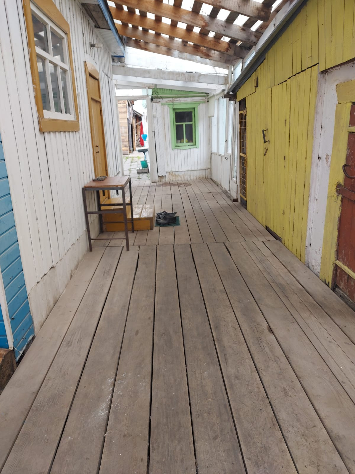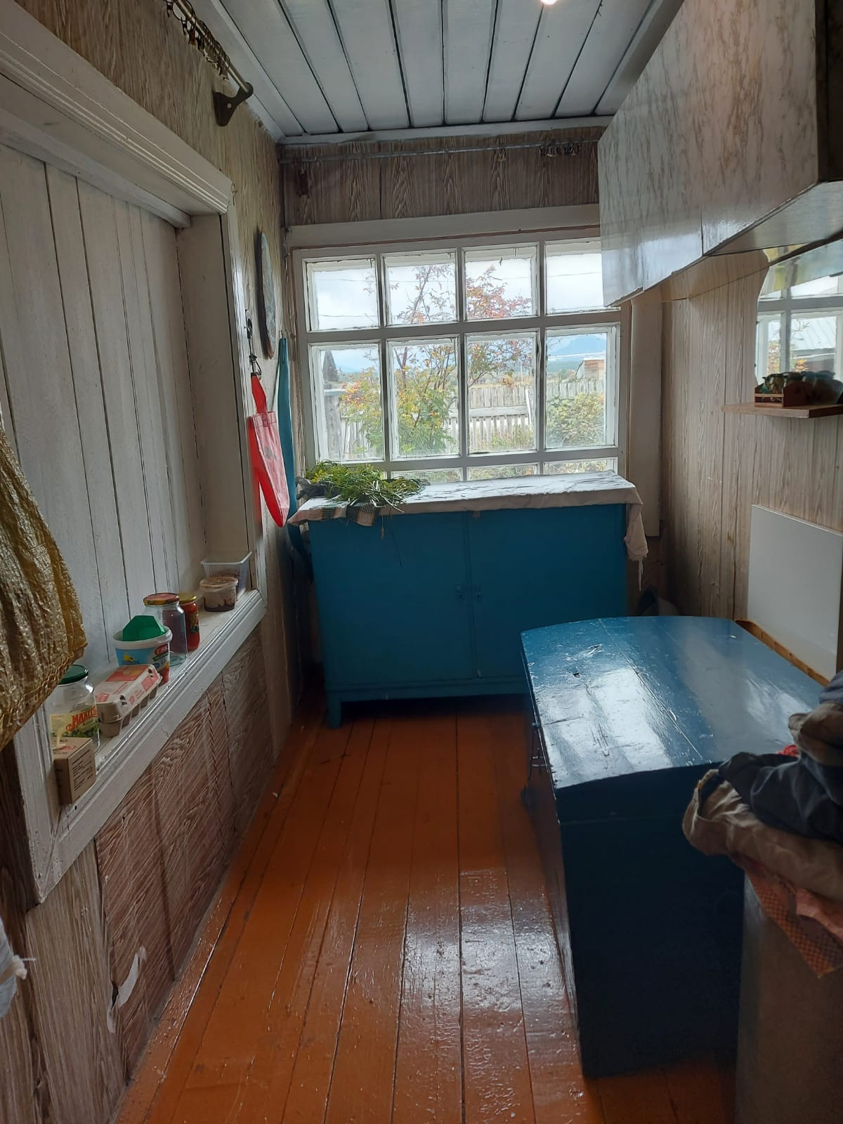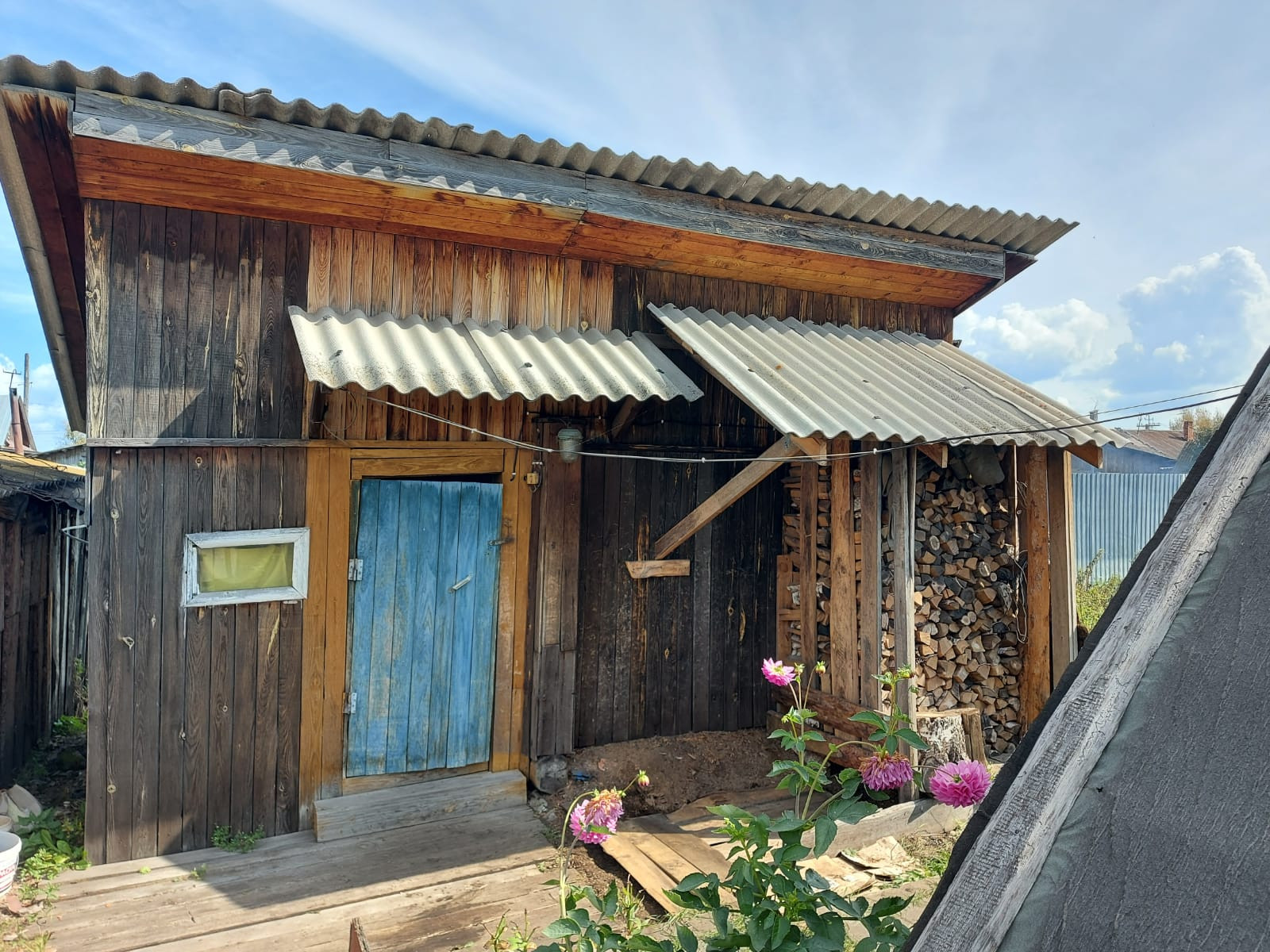 дом из бруса (лиственница), газовое отопление (очень экономичный котел), холодная и горячая вода в доме, канализация - выгреб, 2 комнаты и кухня-столовая, много мест хранения (кладовки, чуланы), капитальный гараж из блоков, крытый поликарбонатом двор, баня, летний дом из бревна с газом, отдельно стоящий погреб 3,5 метра глубиной, забетонирован, всегда сухой, под всем домом подпол, яблони, груши, чернослив, слива, вишни, смородины несколько кустов, жимослости, клубника, цветник