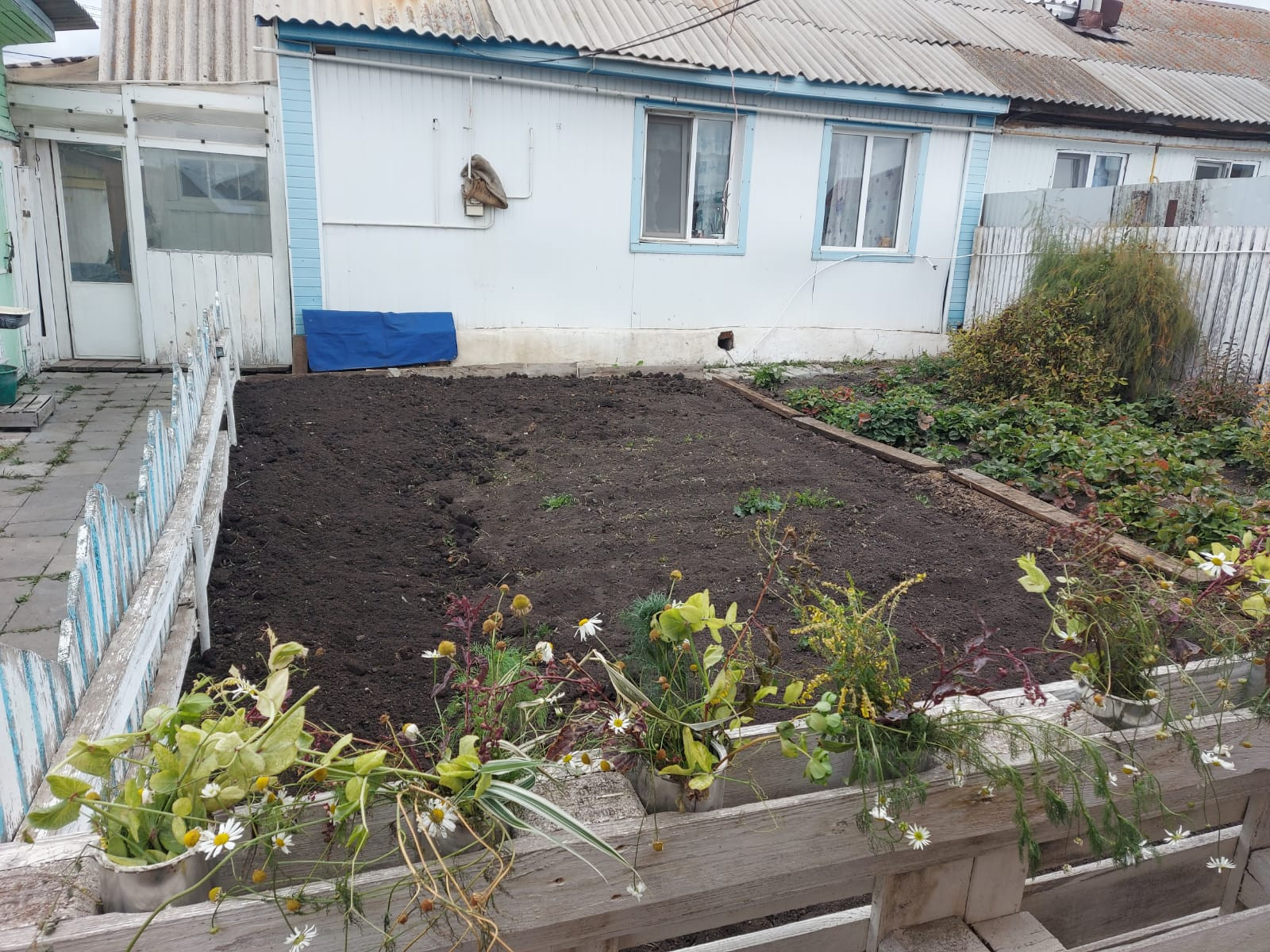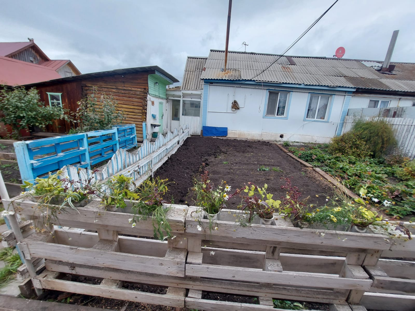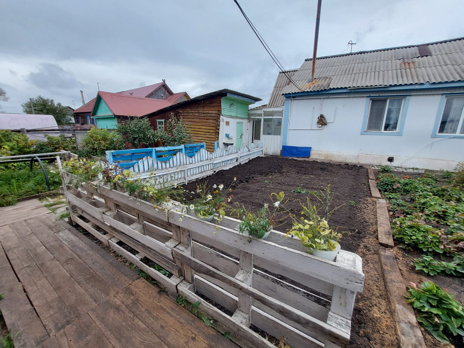 дом из бруса (лиственница), газовое отопление (очень экономичный котел), холодная и горячая вода в доме, канализация - выгреб, 2 комнаты и кухня-столовая, много мест хранения (кладовки, чуланы), капитальный гараж из блоков, крытый поликарбонатом двор, баня, летний дом из бревна с газом, отдельно стоящий погреб 3,5 метра глубиной, забетонирован, всегда сухой, под всем домом подпол, яблони, груши, чернослив, слива, вишни, смородины несколько кустов, жимослости, клубника, цветник