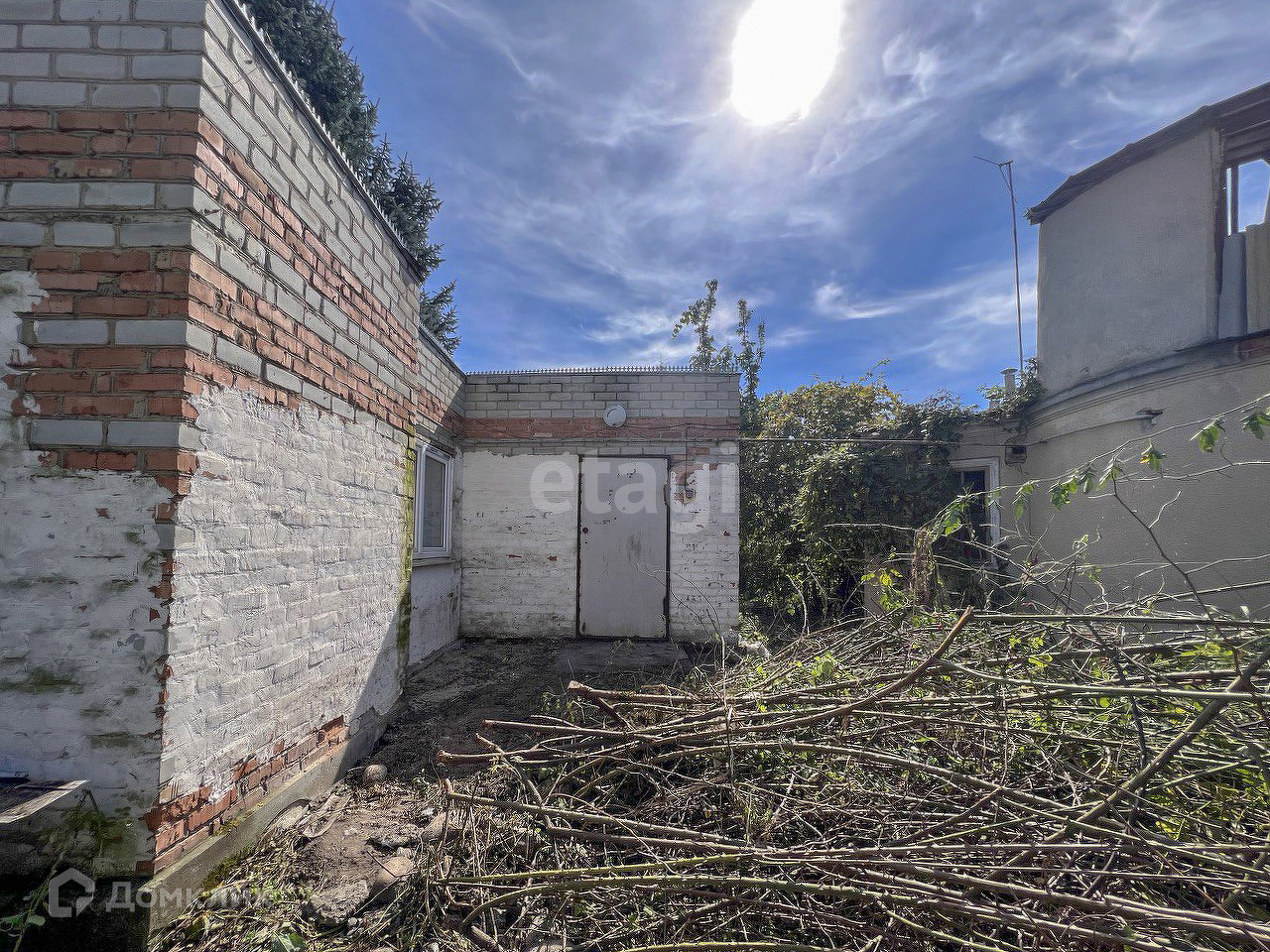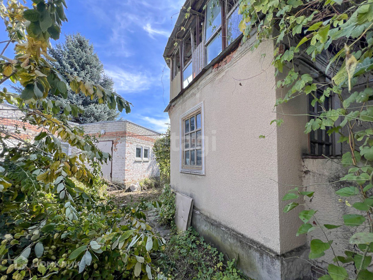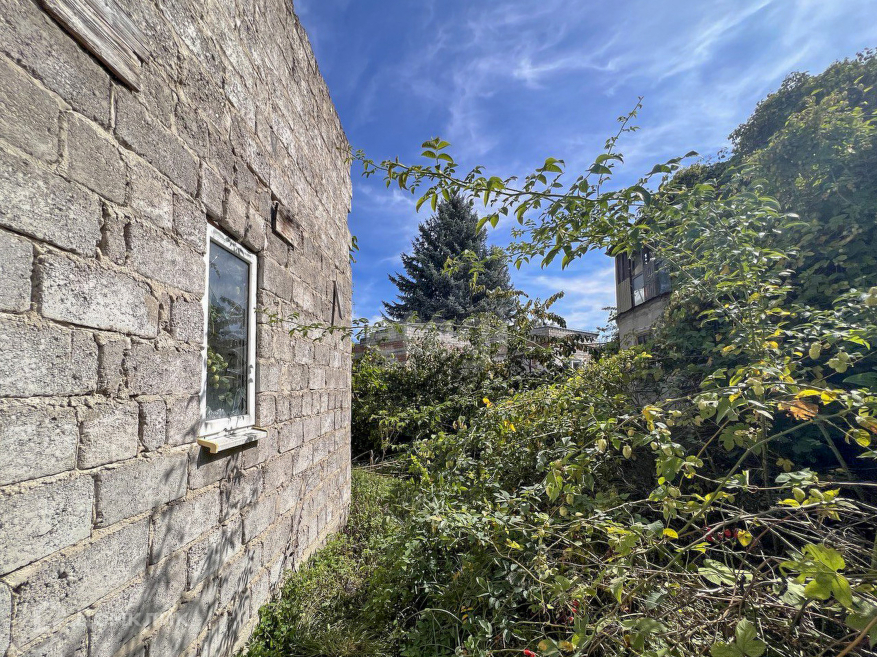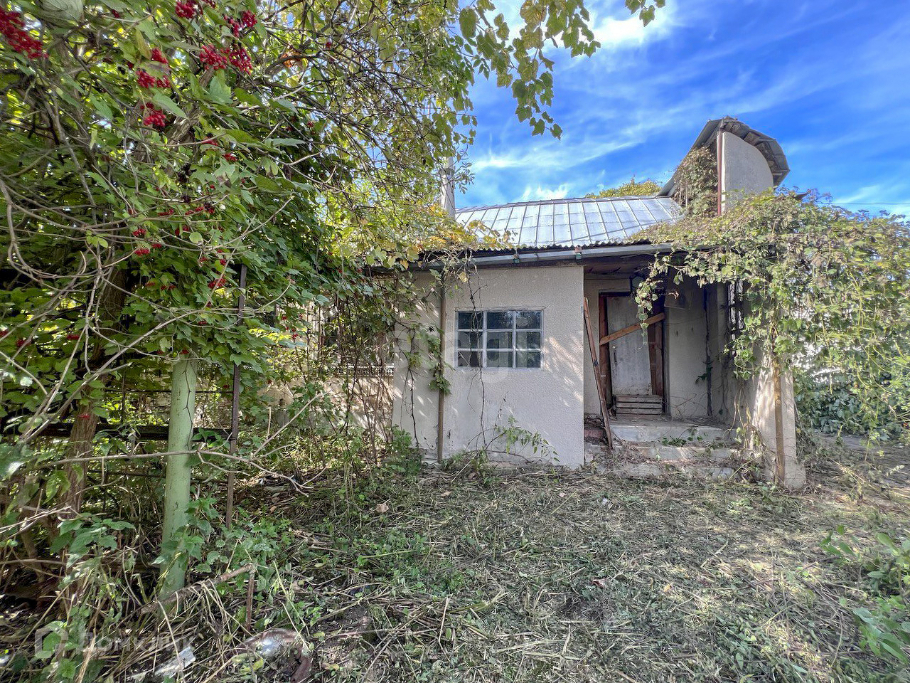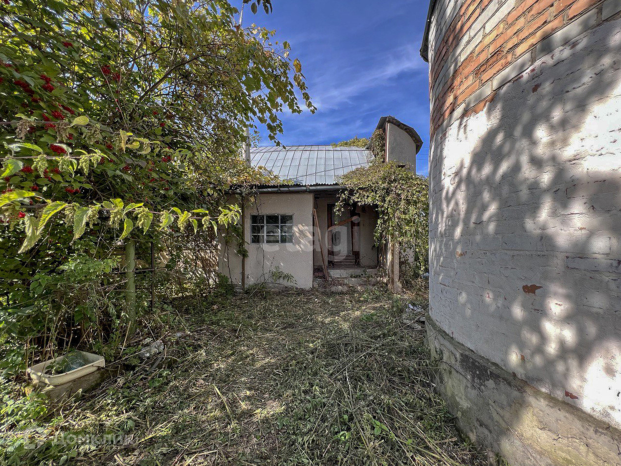 Дом, требующих ремонта, летняя кухня, требующая ухода, новый дом с башней, требующий завершения строительства. Плодоносящий сад с фруктовыми деревьями, кустарниками.