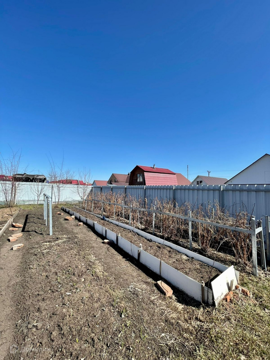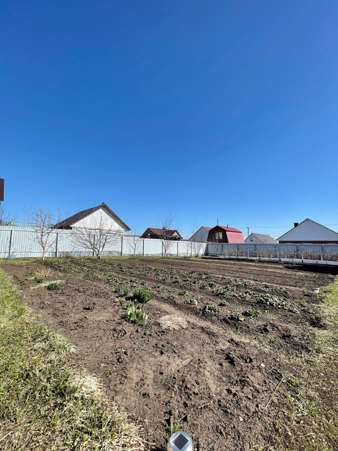 Участок правильной формы 10 соток. Земля чернозем. Есть насаждения: По периметру посажены: малина, черешня, слива, смородина, виноград.