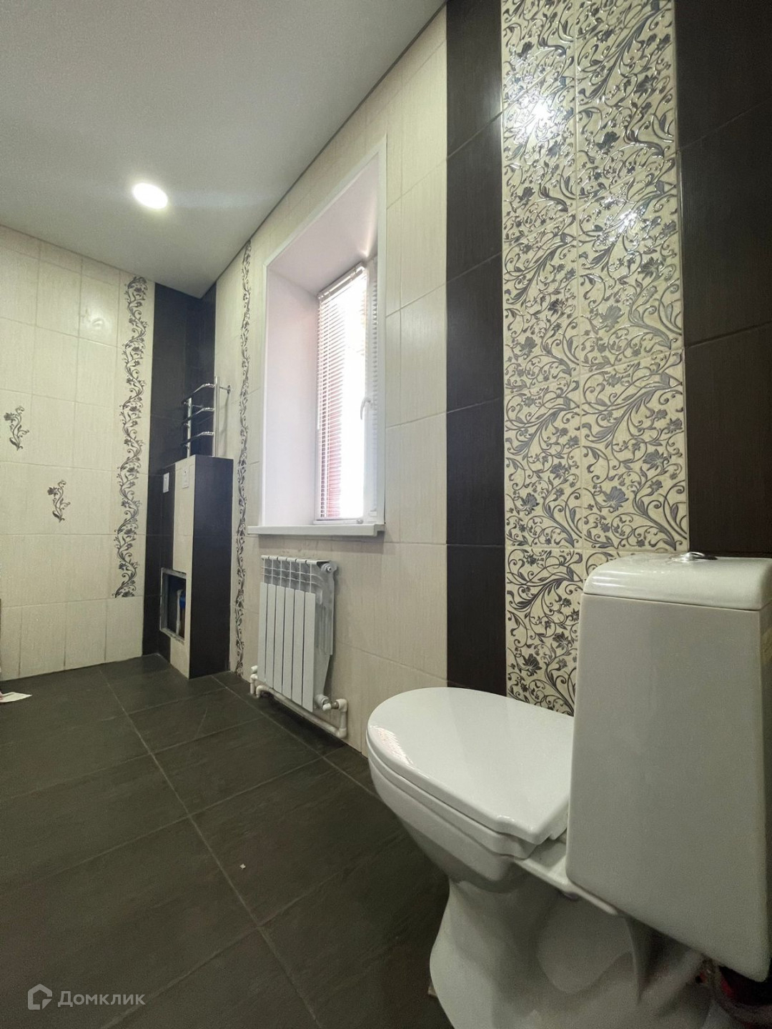 В санузле - плитка, установлен унитаз, фильтры для очистки воды, подведены коммуникации для водоснабжения и канализации.