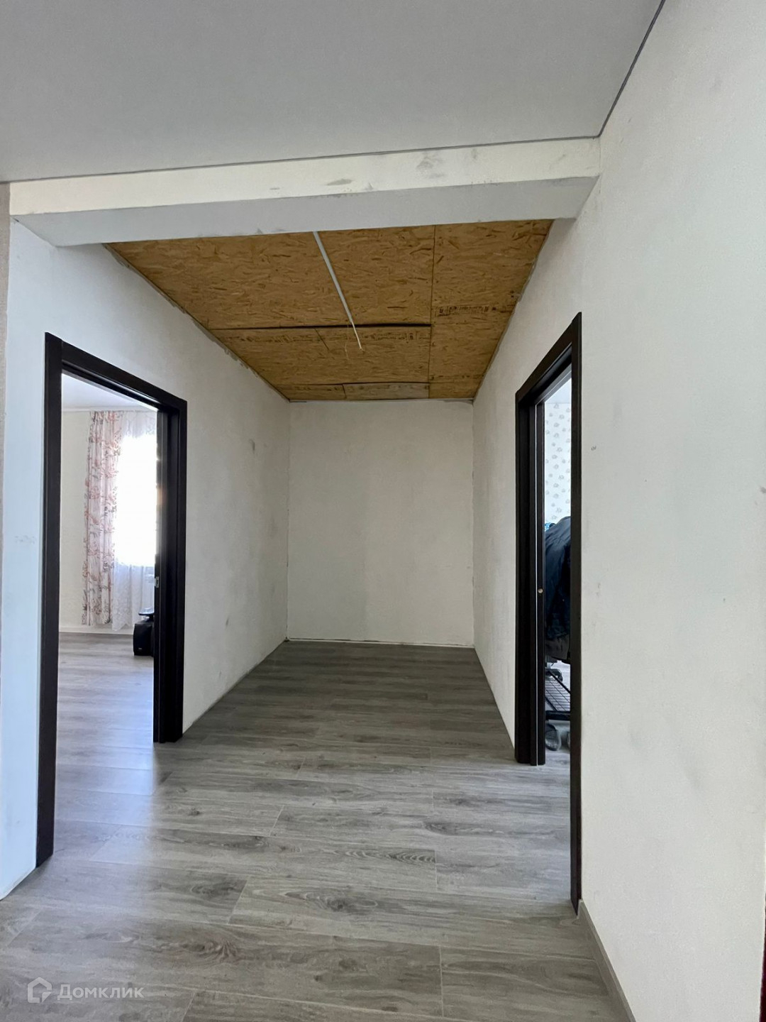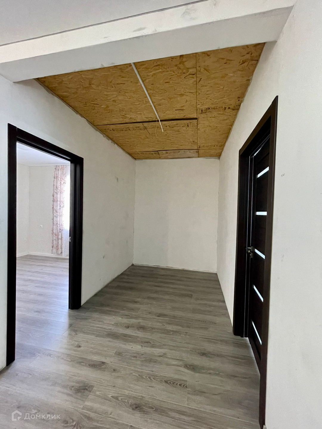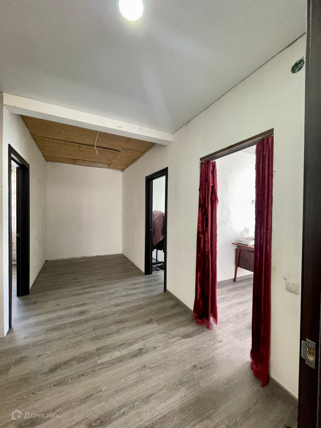 В доме полы-ламинат, потолки-натяжные, в двух спальнях и на кухне поклеены обои.