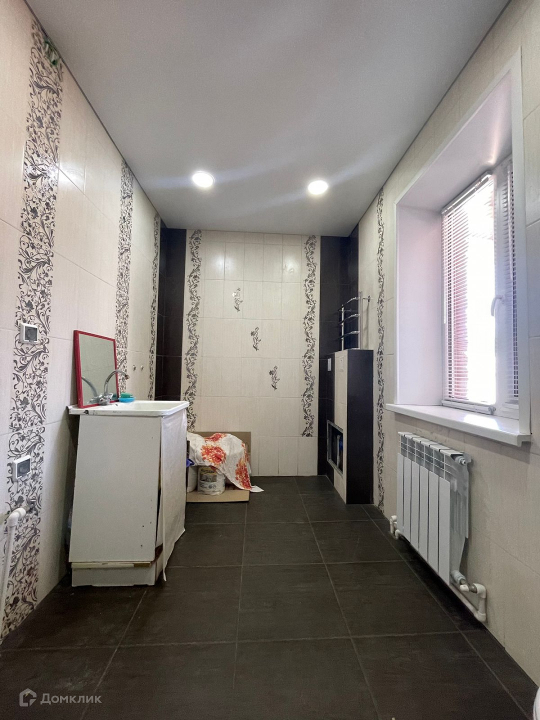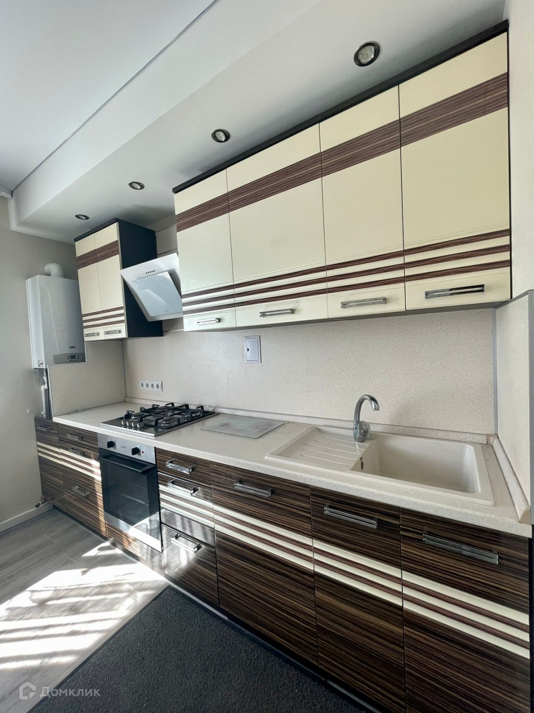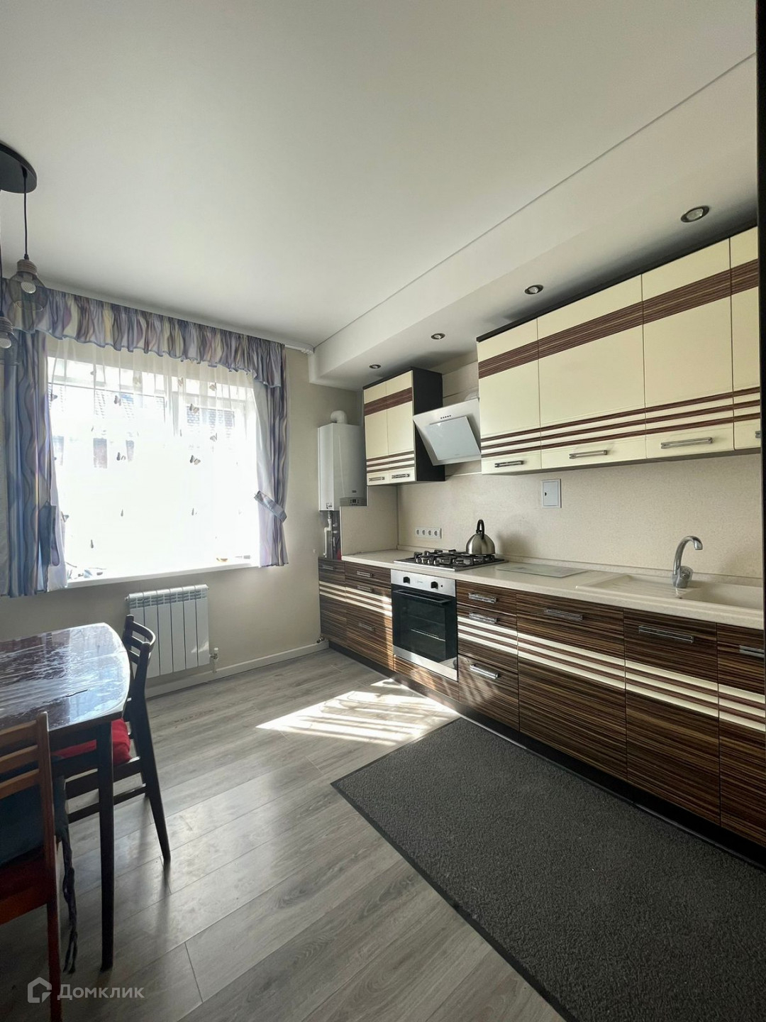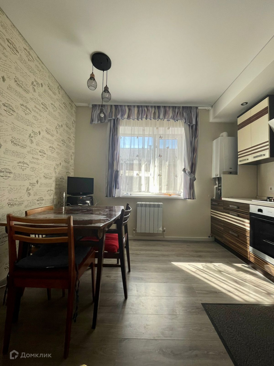 В доме полы-ламинат, потолки-натяжные, в двух спальнях и на кухне поклеены обои.