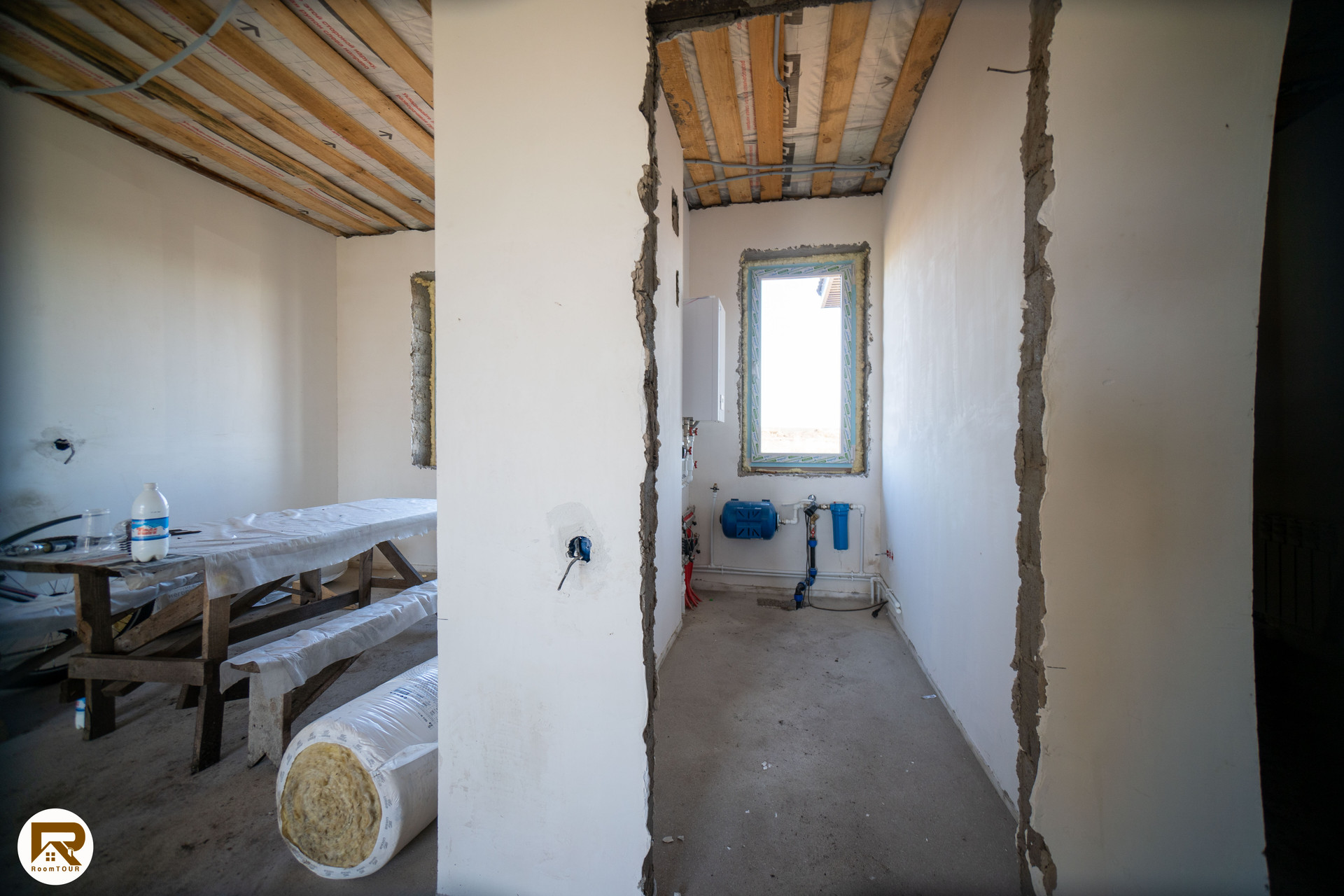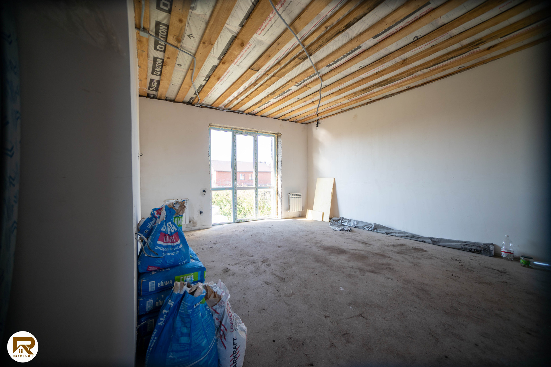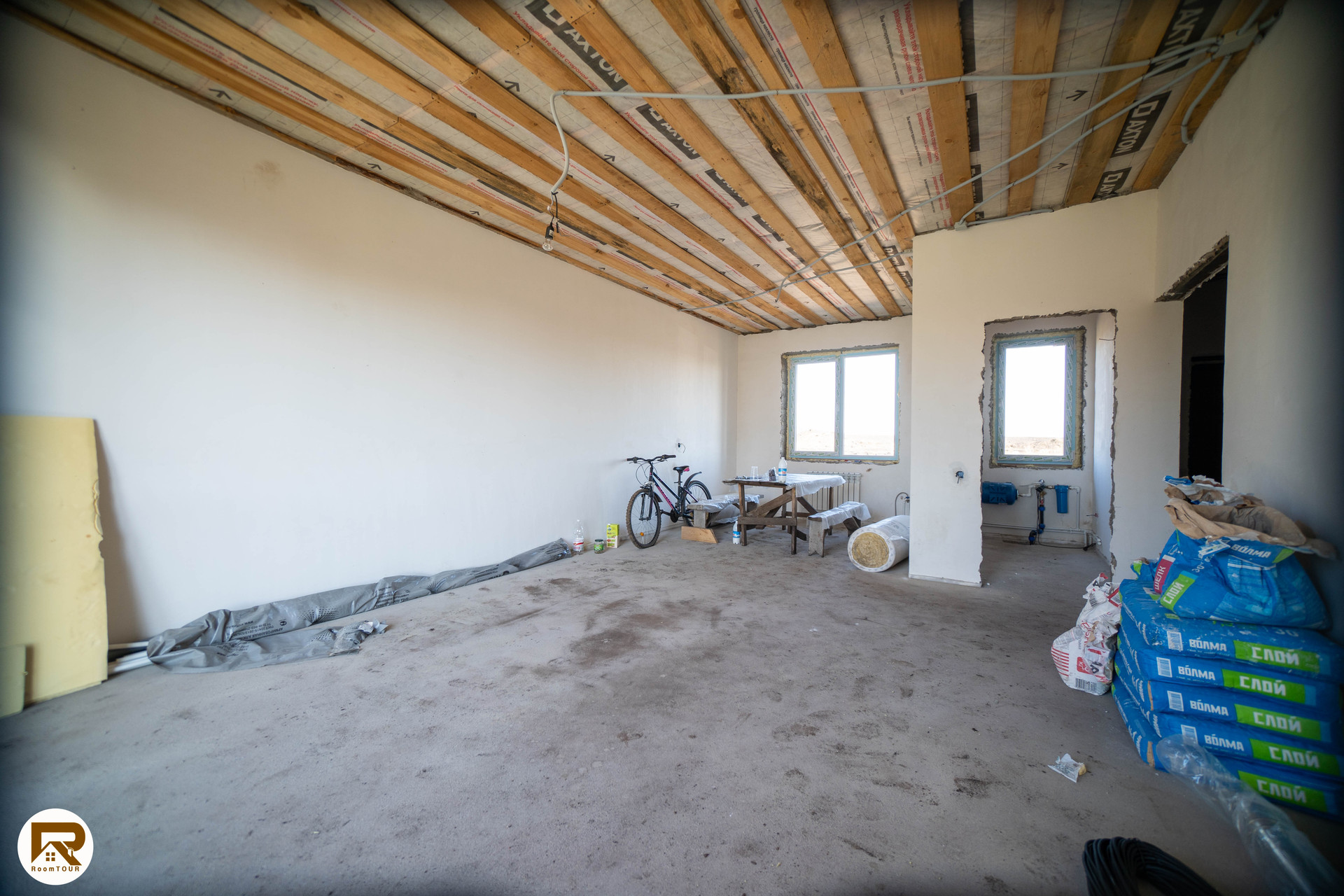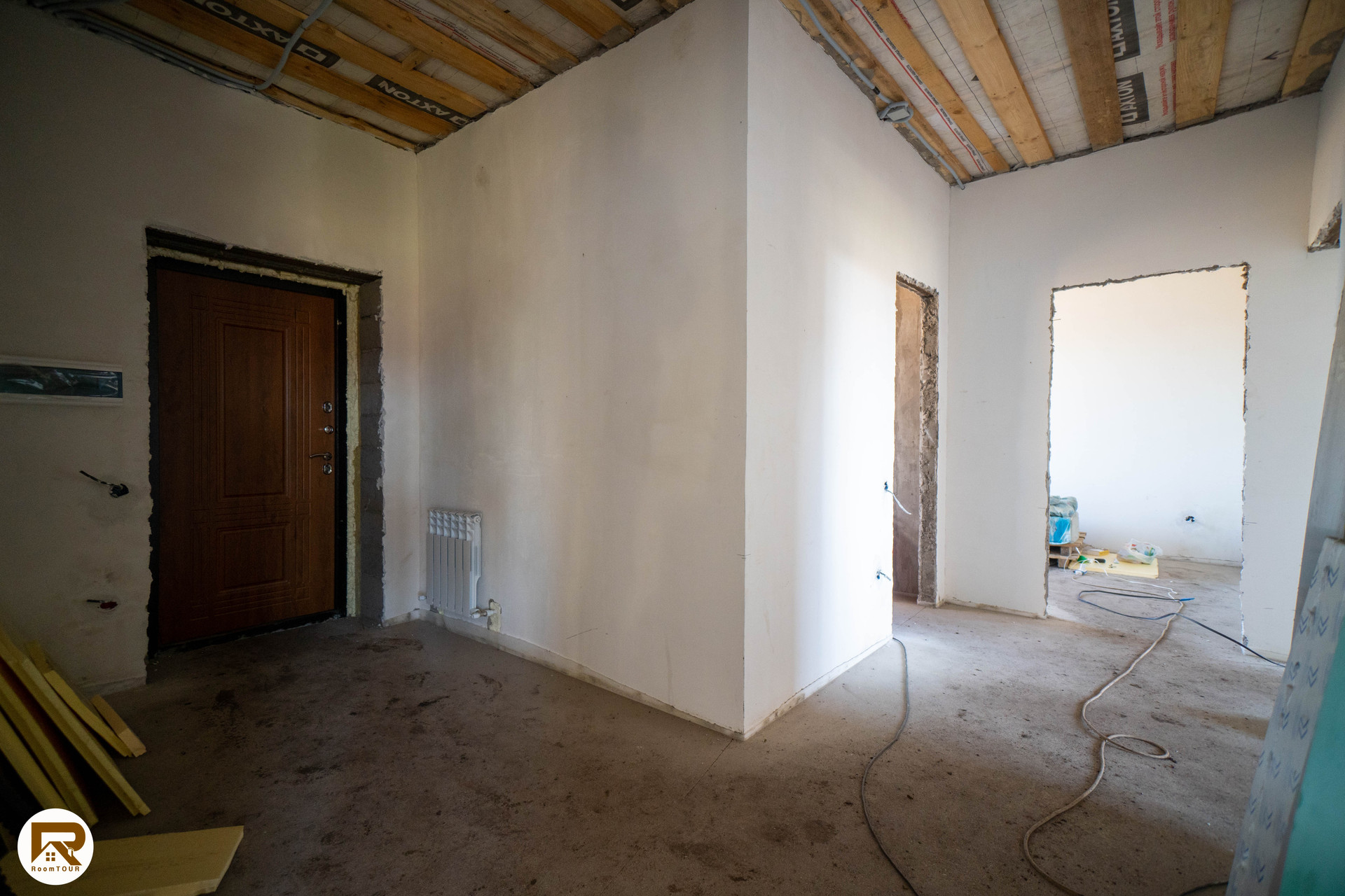 - пол выровнен полусухой стяжкой, готовый под укладку напольного покрытия