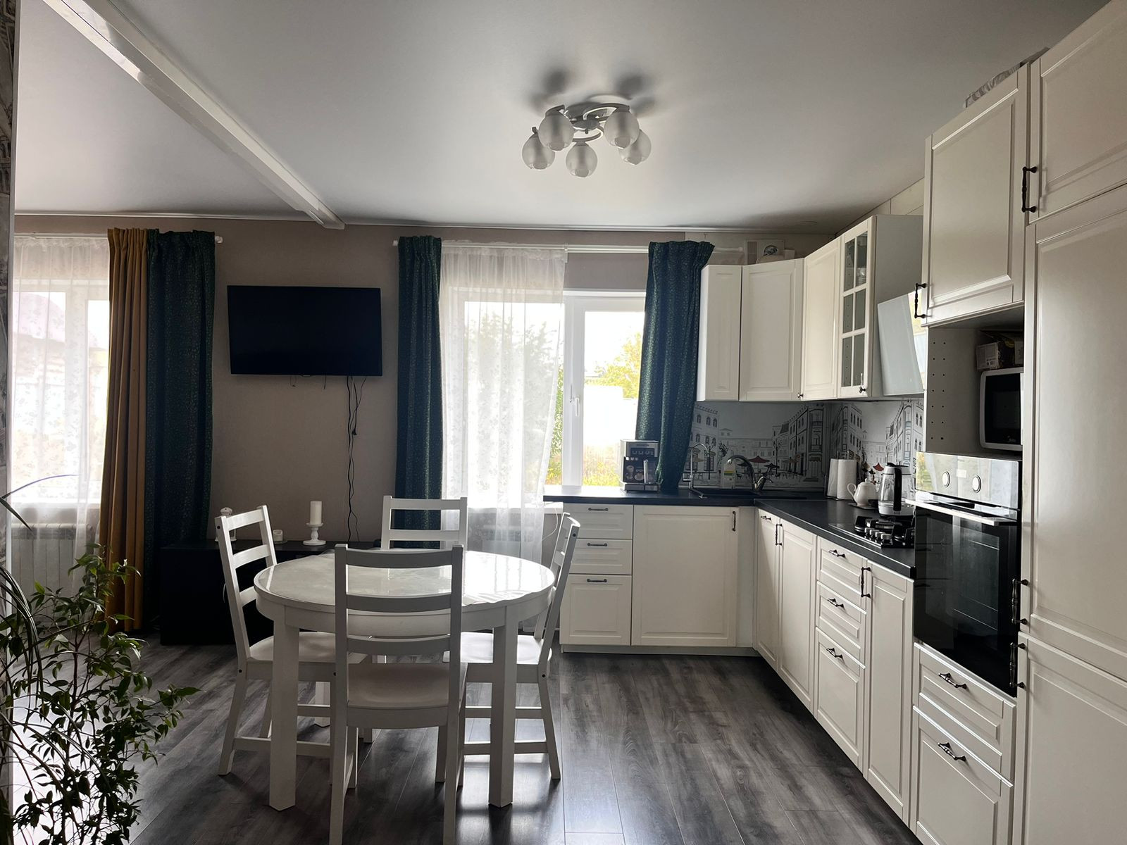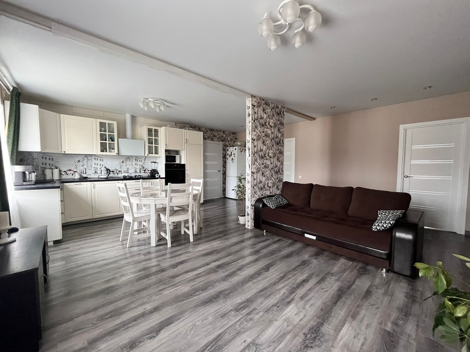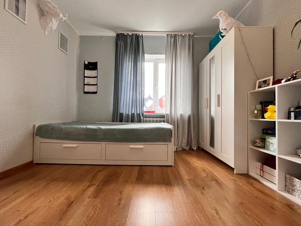 Продается с мебелью и бытовой техникой: кухонный гарнитур, духовой шкаф Hansa, варочная панель Hansa, вытяжка, кондиционер Haier, новый газовый котел Baxi, водонагреватель Electrolux на 80 л, посудомоечная машина Electrolux. В спальне остается двухспальная кровать, прикроватные тумбочки, в хозяйственной комнате гардеробная система.