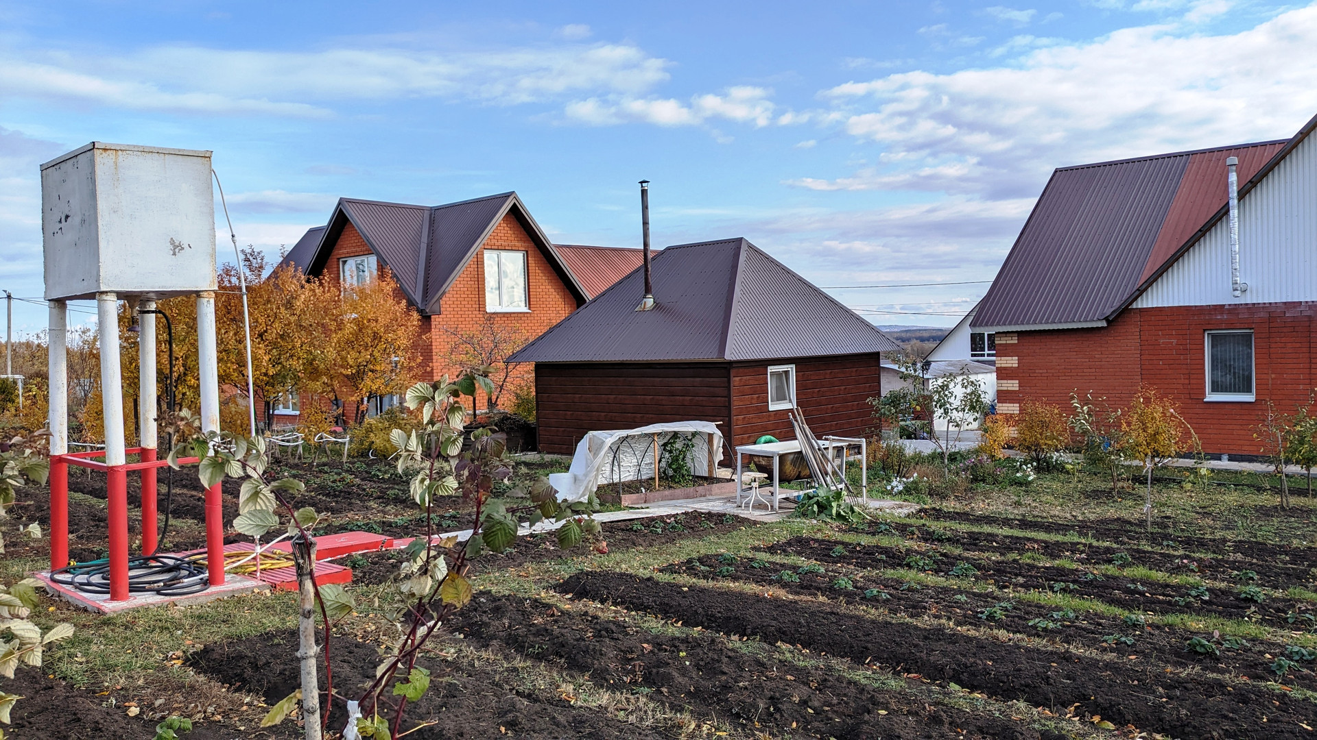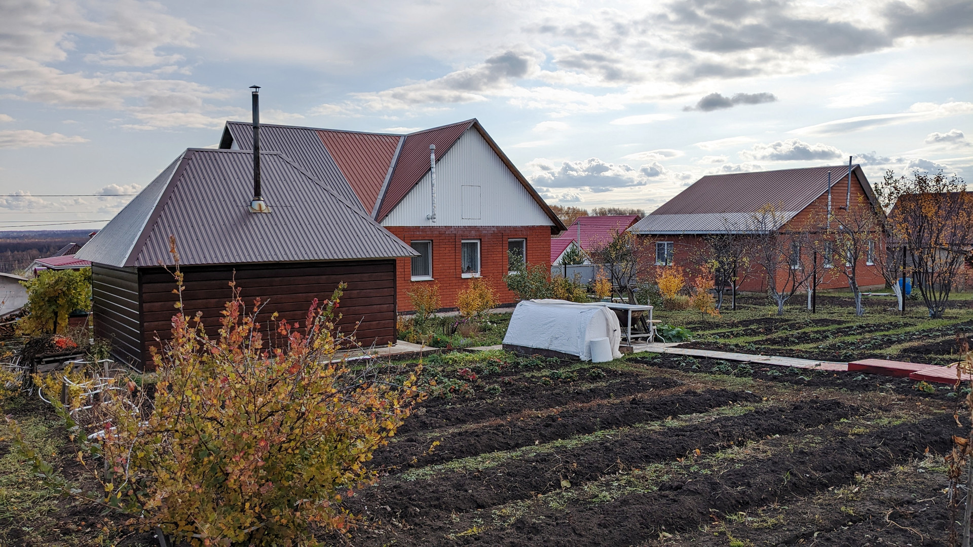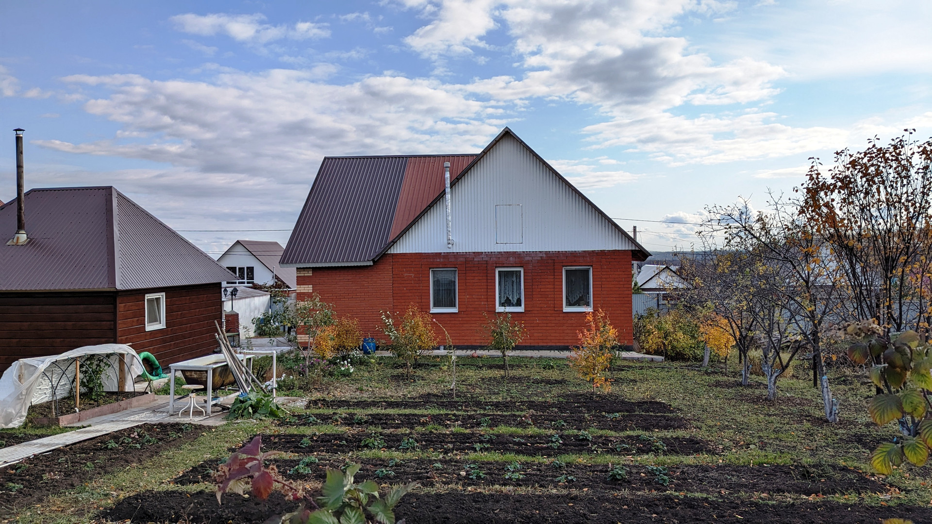 На ровном ухоженном участке также имеются: баня, металлический гараж, плодово-ягодные насаждения (яблони, груши, вишня, слива, черешня, виноград, облепиха и т.д.).