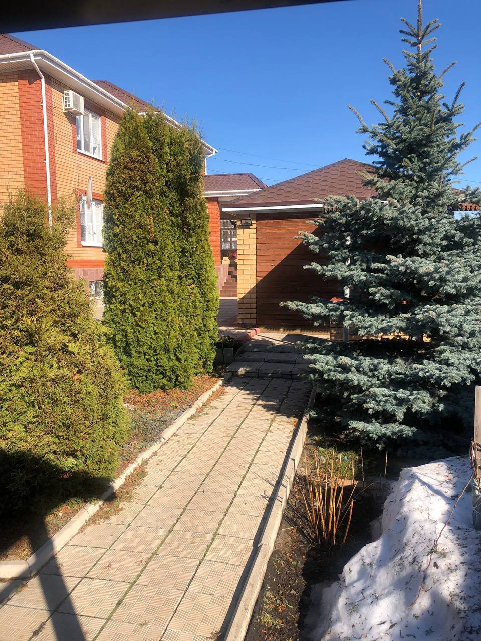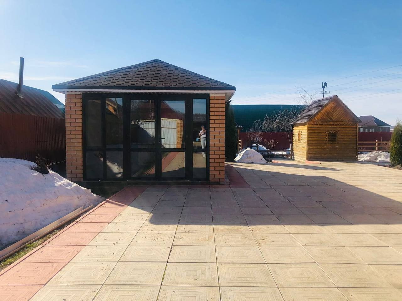Внутренний дворик облагорожен. Из дополнительных построек есть гараж, беседка, баня.