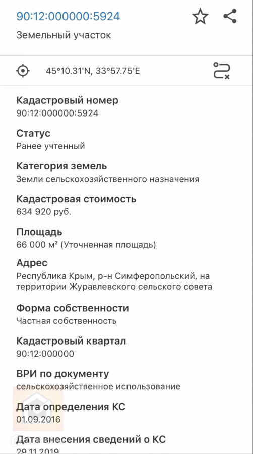 Кадастровый номер участка 90:12:000000:5924 .