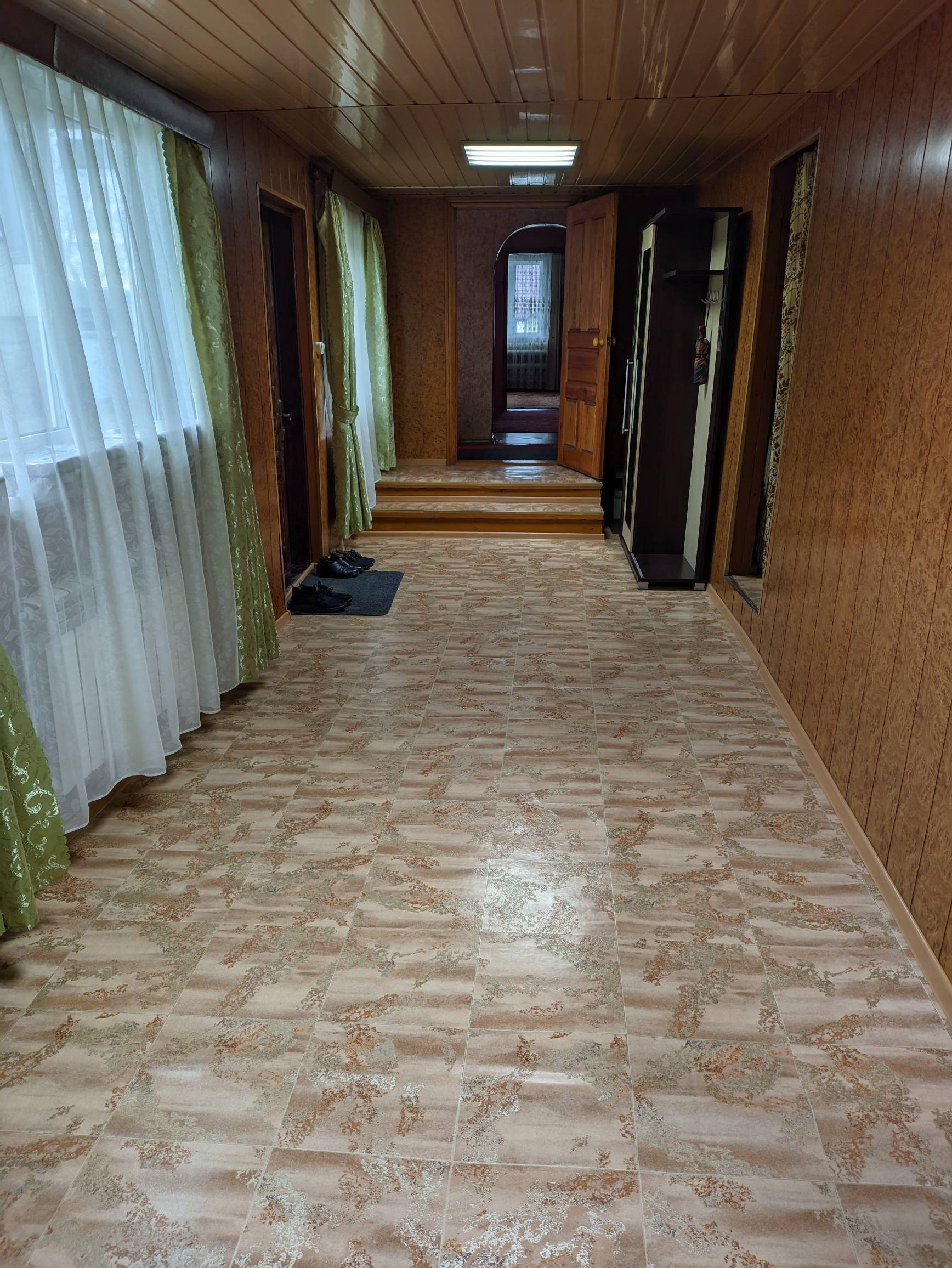 В доме 4 уютные комнаты, большая прихожая, кухня, санузел, все удобства. Комнаты светлые и просторные. В доме центральное водоснабжение, горячая вода постоянно через водонагреватель 100 литров, отопление водяное, выполнен косметический ремонт. Есть баня, в которой можно попариться не выходя на улицу. Ухоженный двор с газоном, зоной отдыха и мангалом для шашлыка. Большой участок для любителей выращивания и заготовок овощей. Во дворе много места для отдыха и занятий спортом.