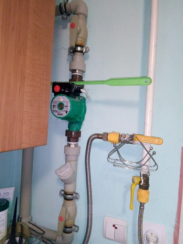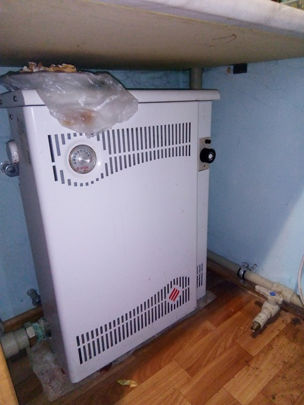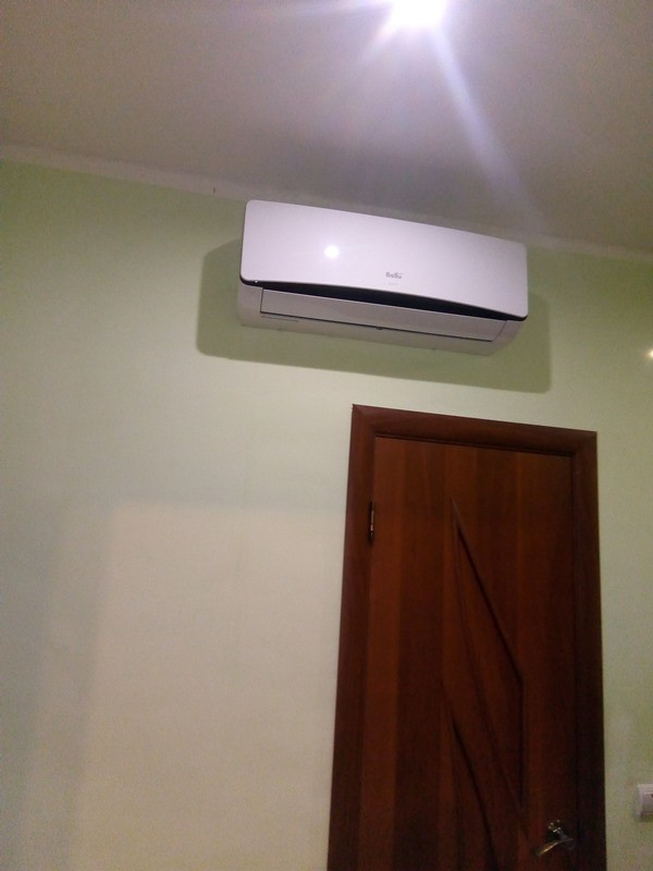 Паровое отопление, электрический бойлер на 80 л, кондиционер.