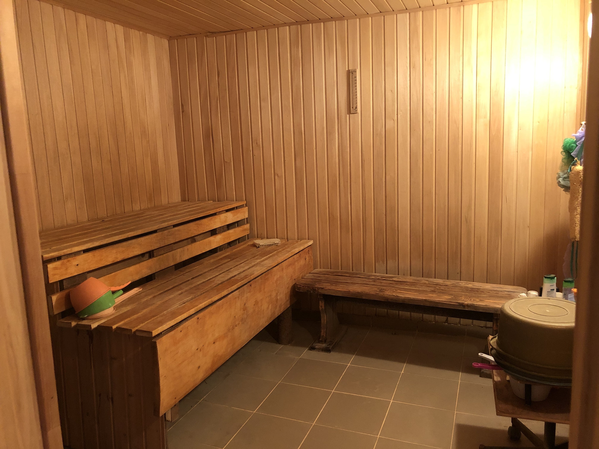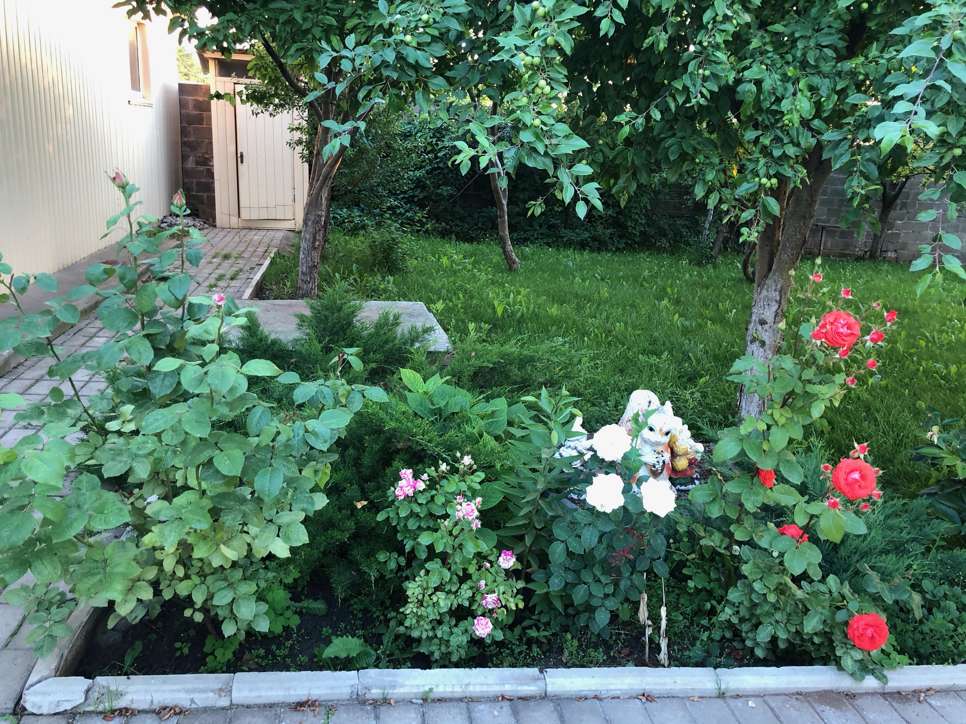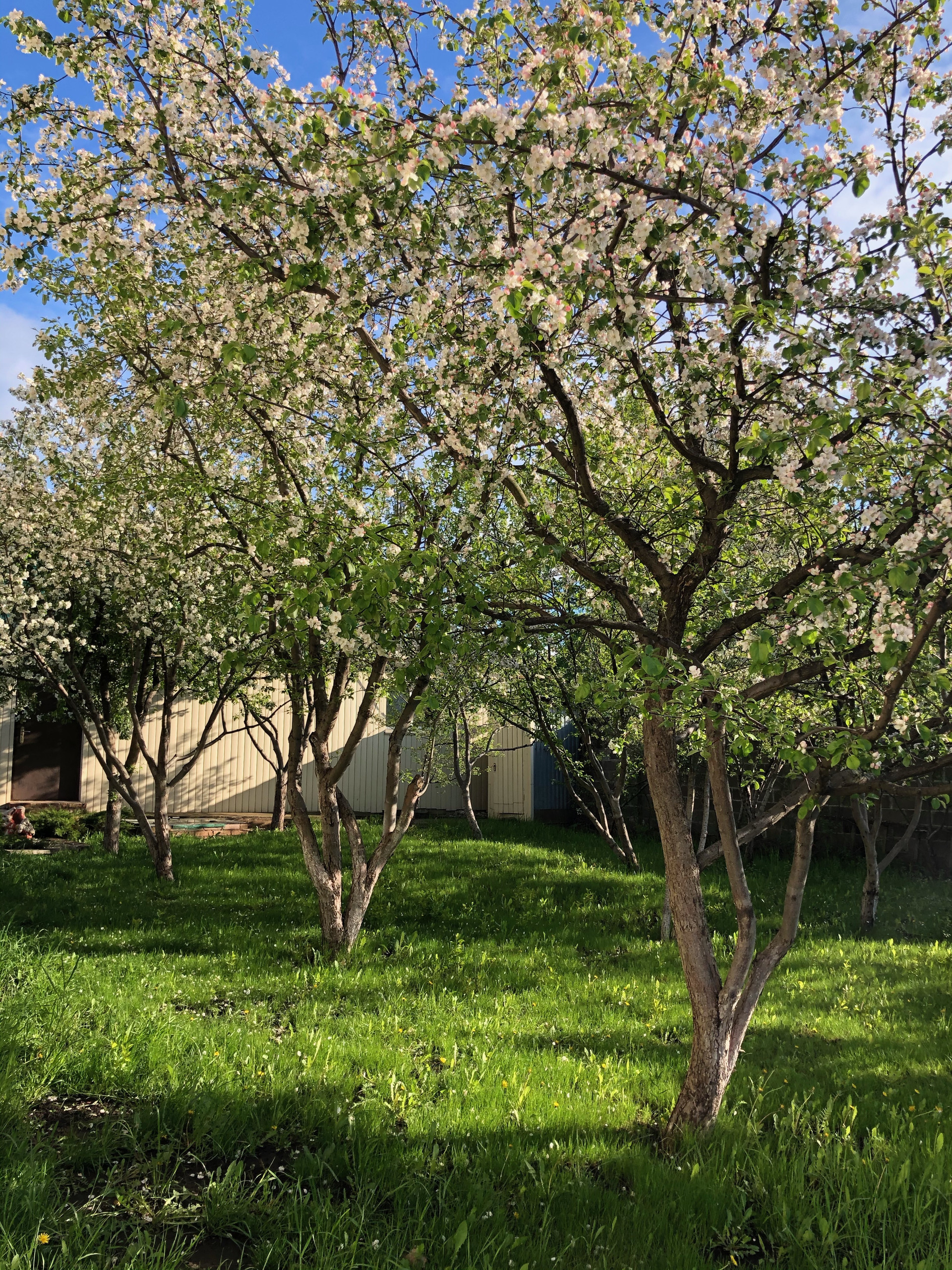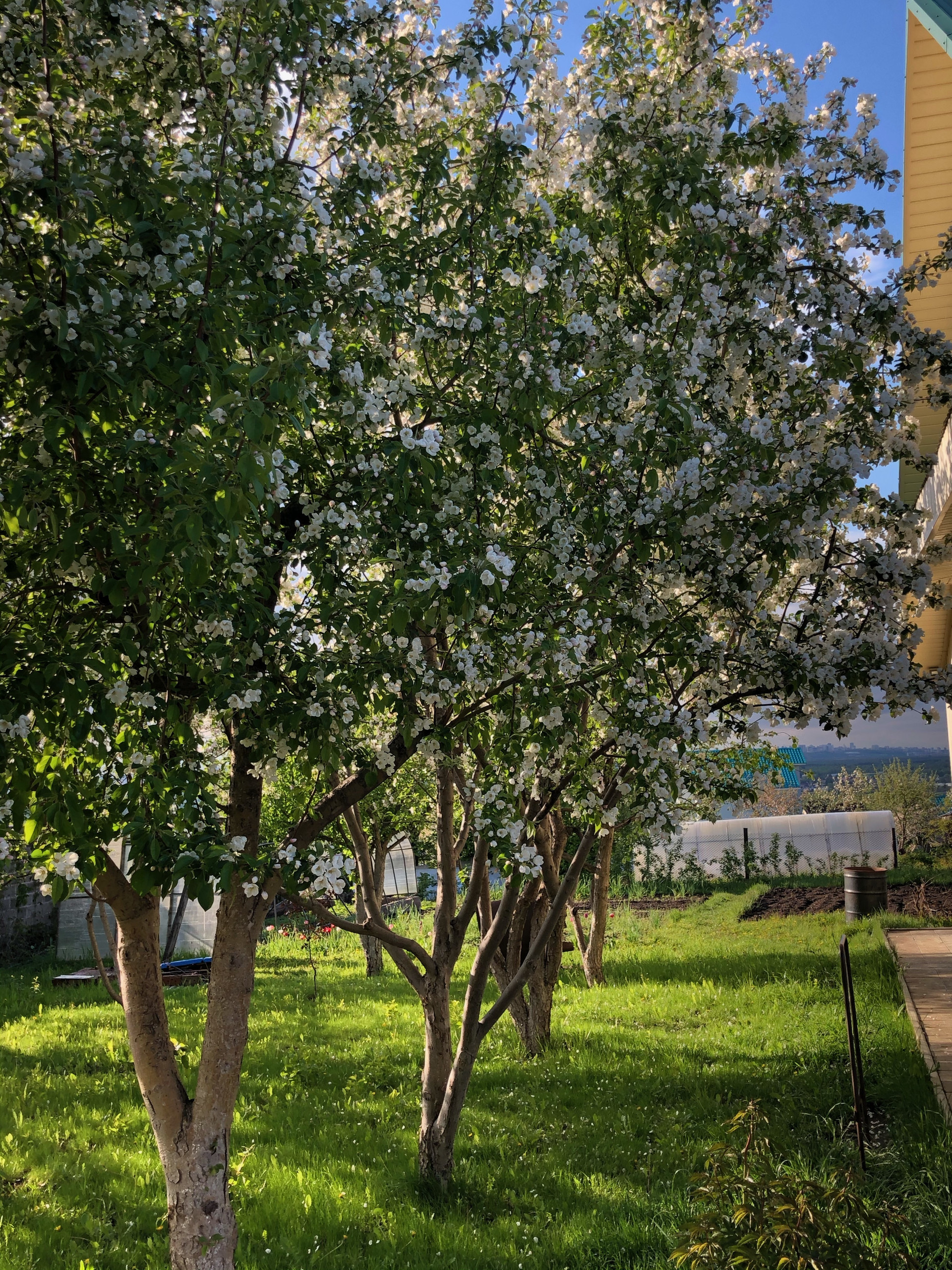 На участке построены под одной крышей гараж 5 х 6,5 (ворота с электроприводом); баня 6 х 5 с финской печью Harvia, водопроводом и теплым полом (в бане и предбаннике); хозблок 8 х 5. Имеется фундамент под теплицу размером 9 х 3. На участке растут плодоносящие деревья: яблони, груши, вишня. сливы черная и желтая, калина, малина, смородина, крыжовник, жимолость, виноград, йошта и декоративные кустарники, и многолетние цветы: розы, пионы, нарциссы, тюльпаны и др..