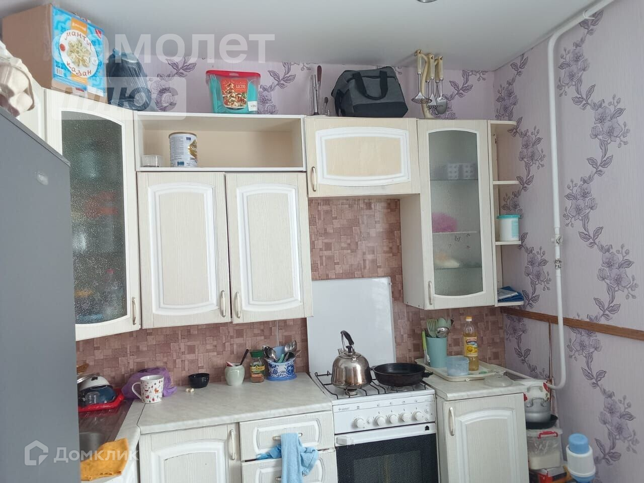 В подарок остается кухонный гарнитур, шкафы, диван.